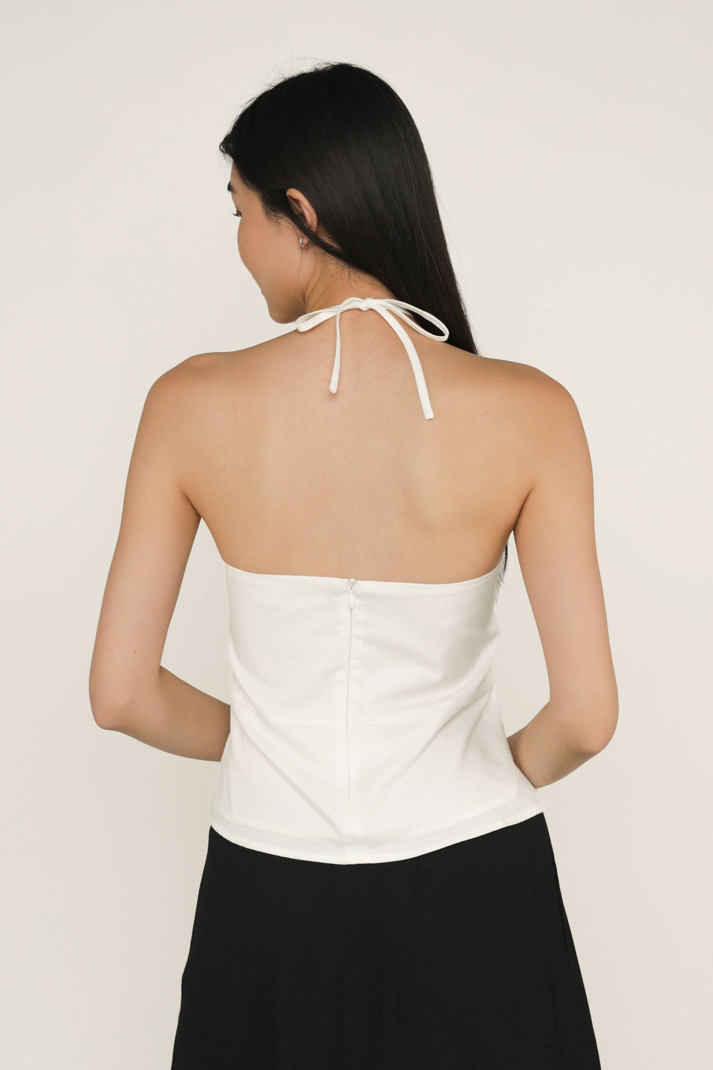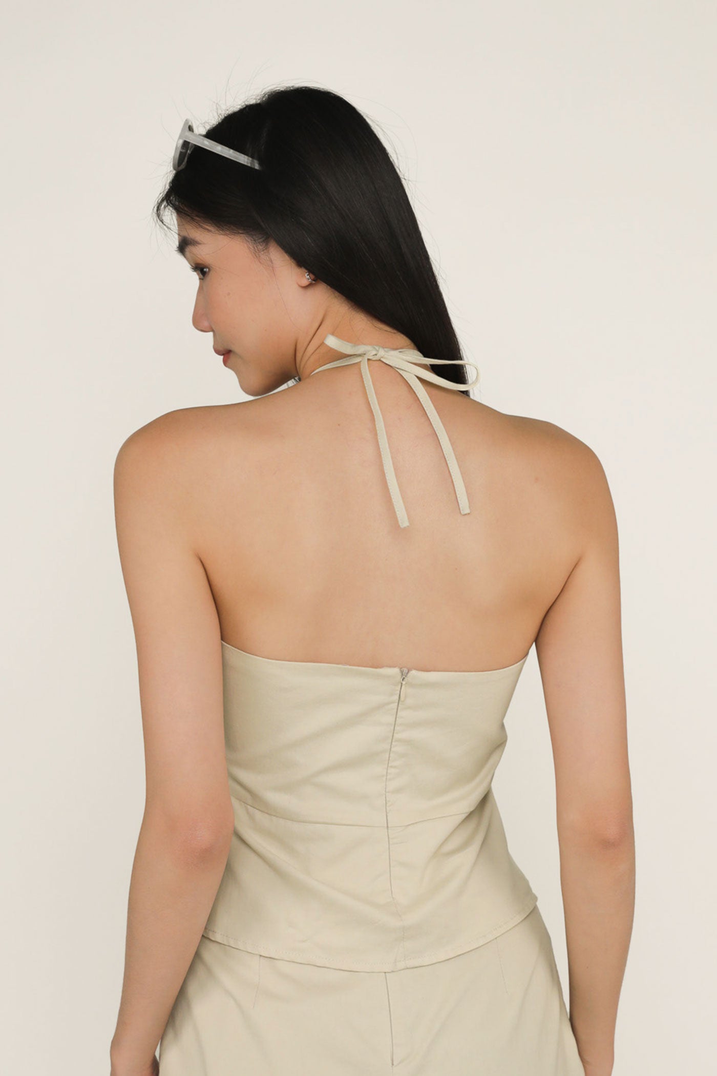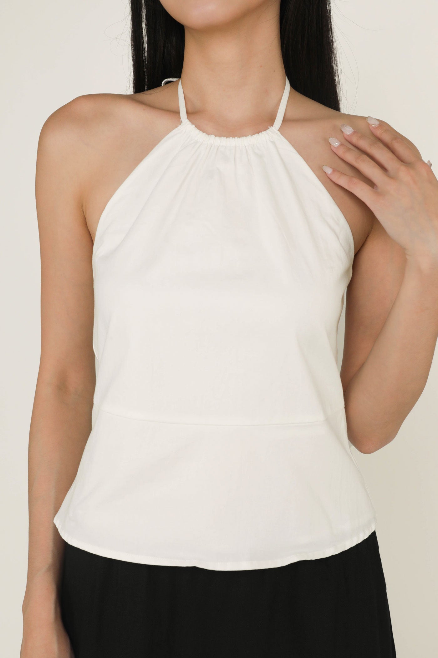 Let's get classy with Tiffany. For minimalistic style enthusiasts, Tiffany Halter Top is a chic piece that belongs in your weekly rotation. This top flaunts a sleek halter neckline, elegant backless design, and timeless flared silhouette. Available in your favourite neutral colours, Tiffany is your gateway to achieve easy elegance.