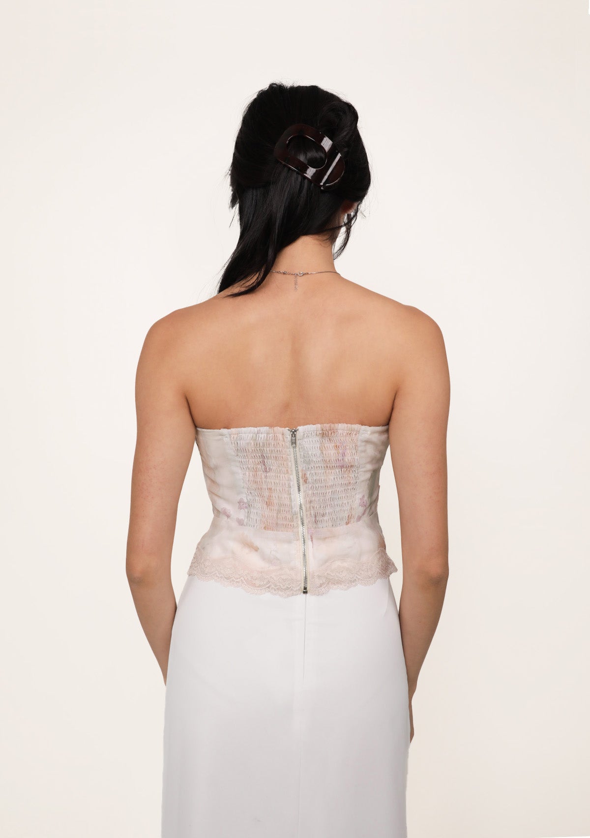 Aretha is made to be worn with confidence. Designed as a feminine tube top staple, it features a delicate lace hem that adds soft texture and charm to the silhouette. The padded bodice offers easy, fuss-free wear, while the anti-slip band and smocked back ensure a secure and comfortable fit. Finished with an exposed back zip for a modern edge, Aretha pairs effortlessly with both casual and dressed-up looks.