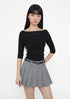 With its distinct boat neckline formed by overlapped front and back panels, this padded top highlights the collarbone with effortless grace. Mid-length sleeves offer balanced coverage, while the soft, stretchy fabric hugs comfortably for a sleek silhouette.