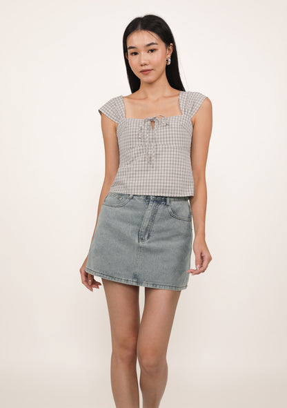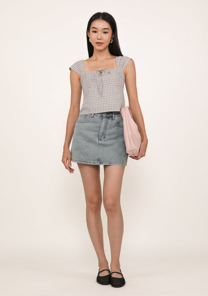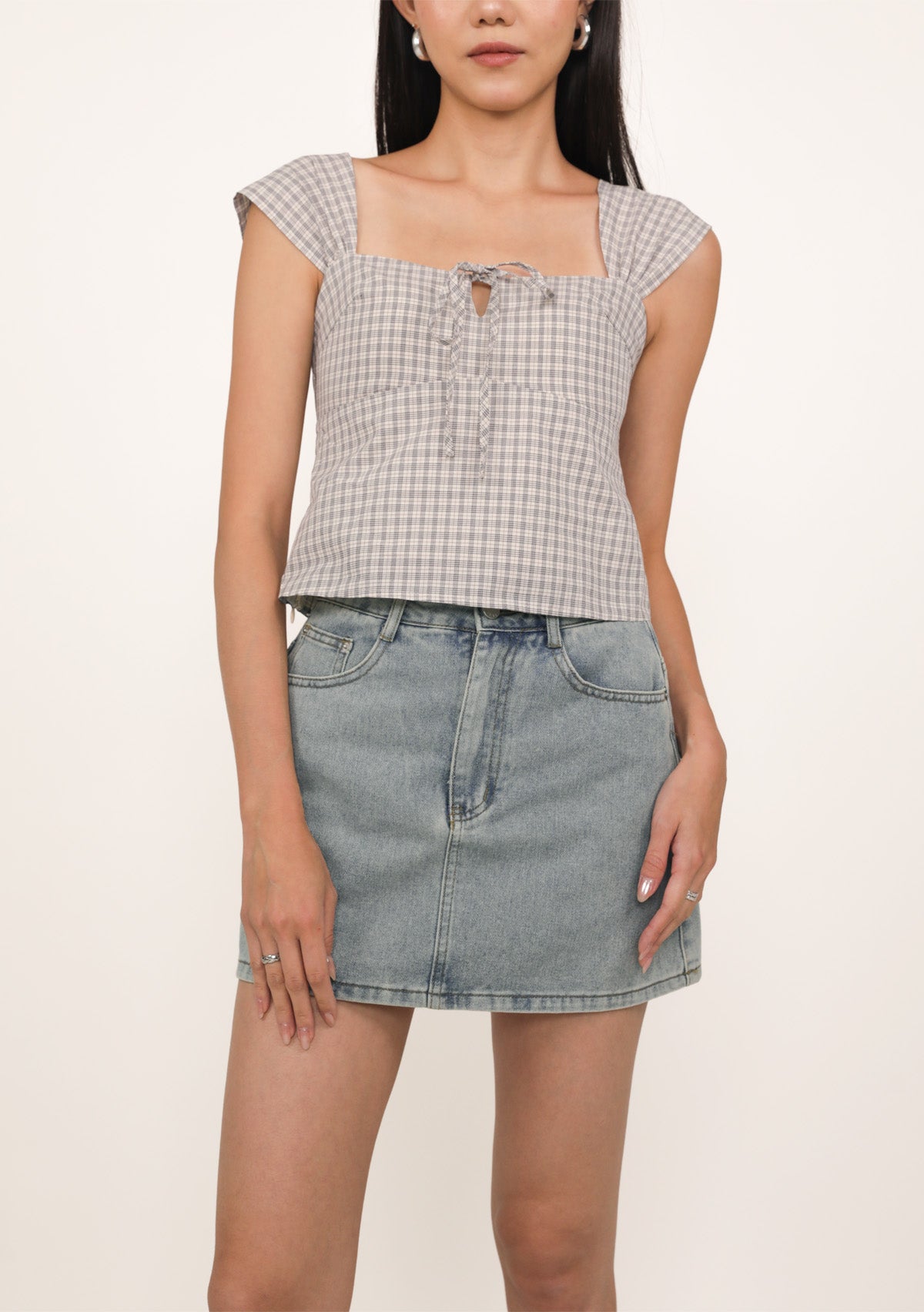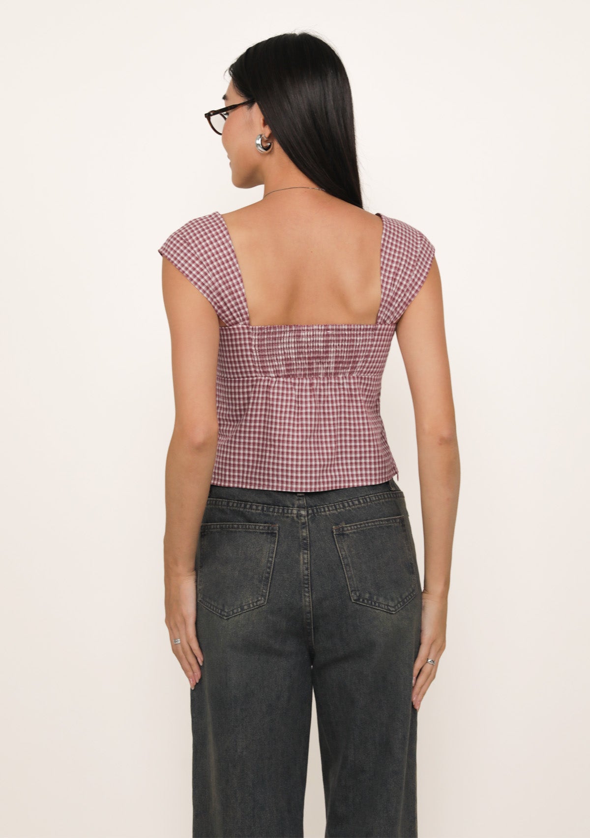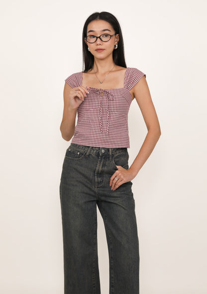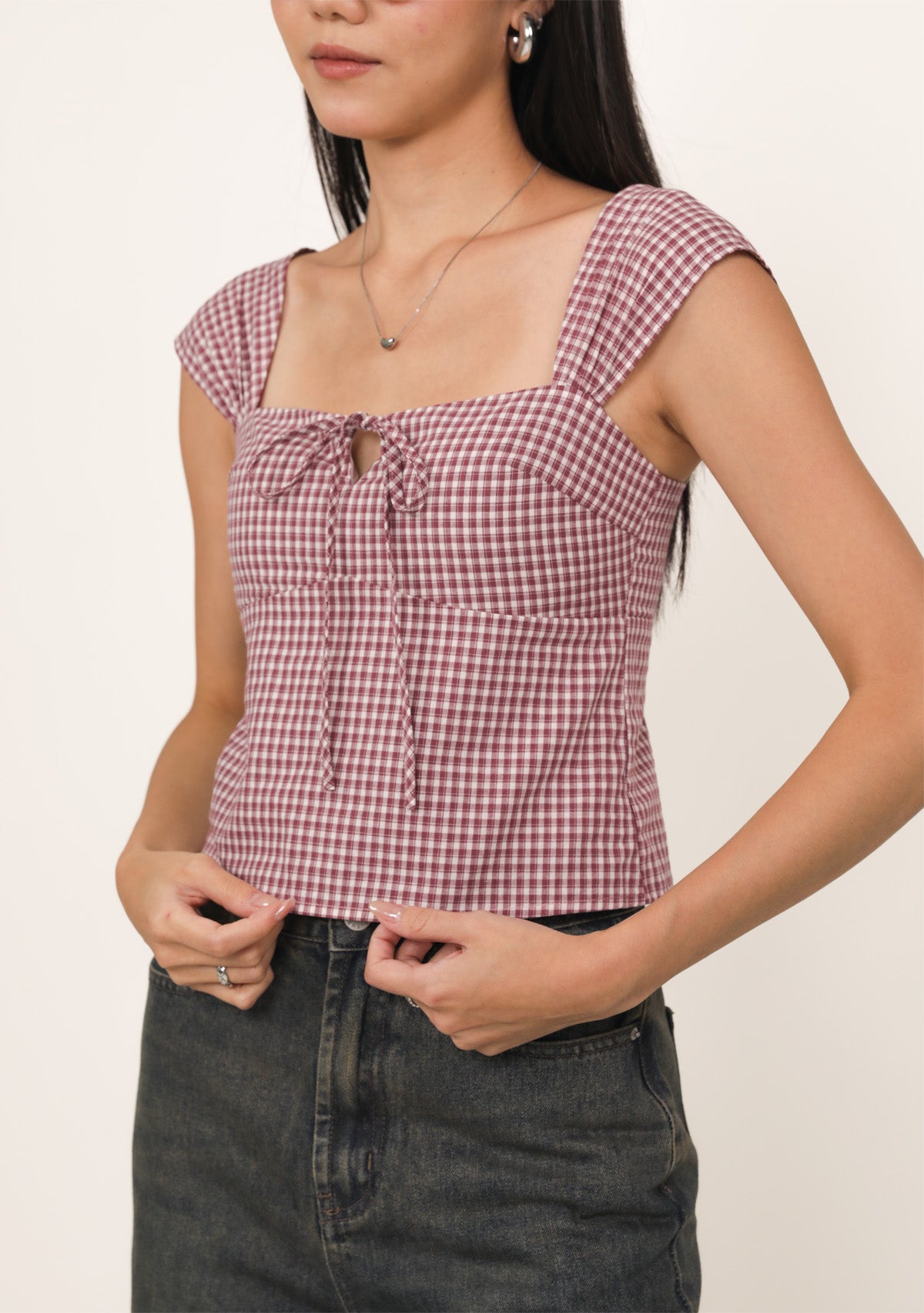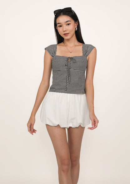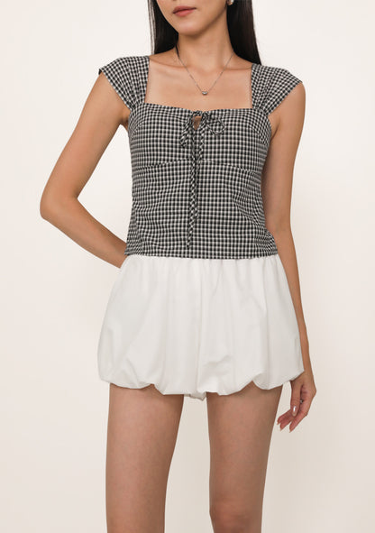 Nyu Ribbon Padded Top (Plaid) is a soft, playful top made from breathable cotton – perfect for casual, everyday wear with a feminine touch.