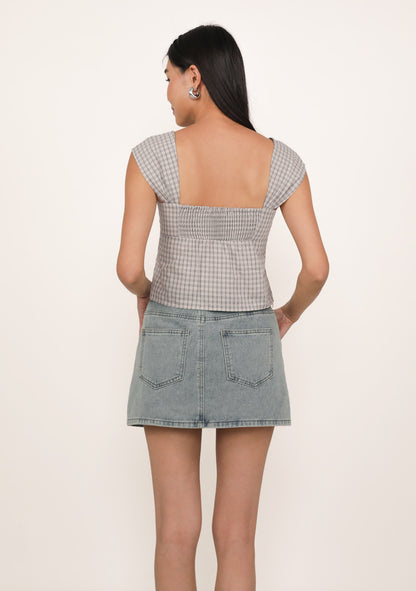 Nyu is designed to bring charm to your everyday wardrobe with thoughtful details. Featuring a flattering fitted bodice with a smocked back for stretch and comfort, it’s finished with a delicate self-tie front that adds a subtle, stylish accent. The removable paddings offer versatility, while the concealed side zip ensures a seamless fit. Its classic plaid pattern and easy silhouette make it ideal for pairing with skirts, trousers, or denim for a chic, effortless look.