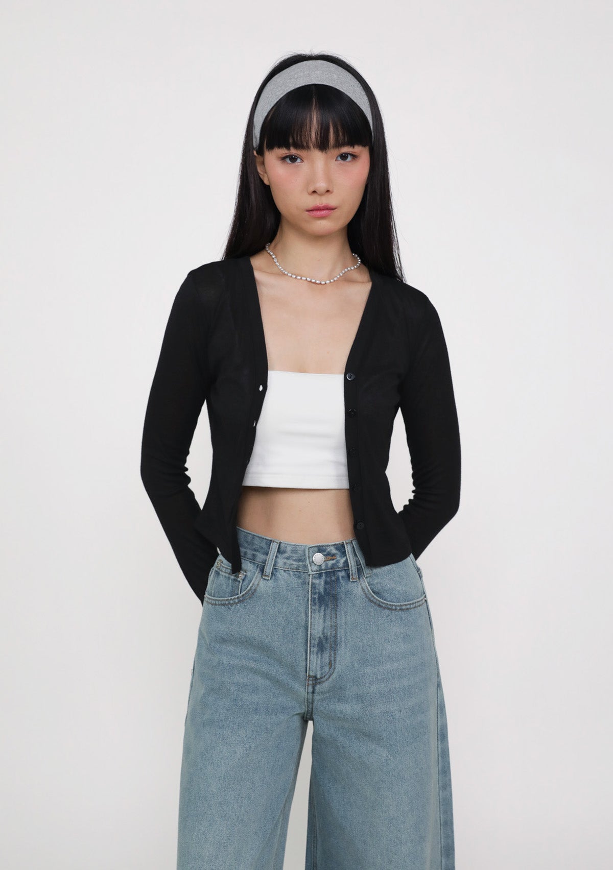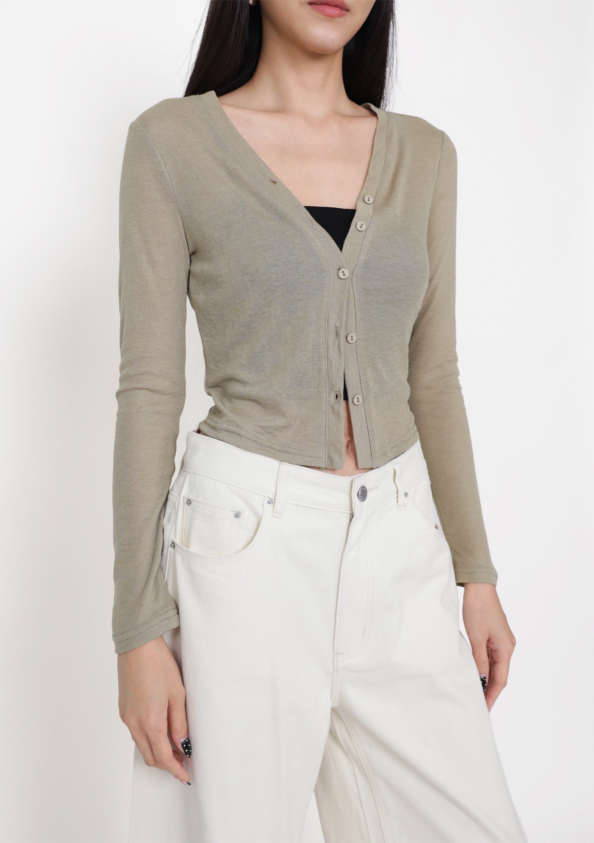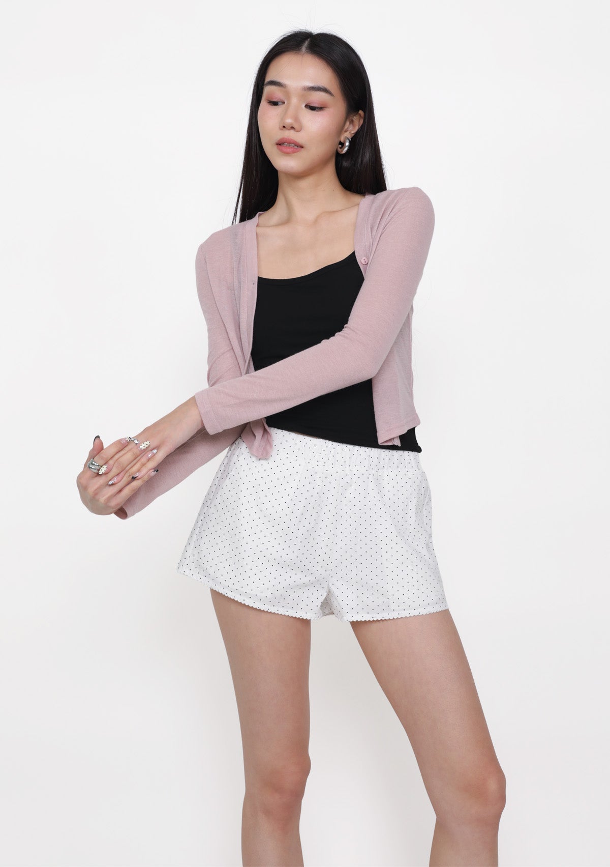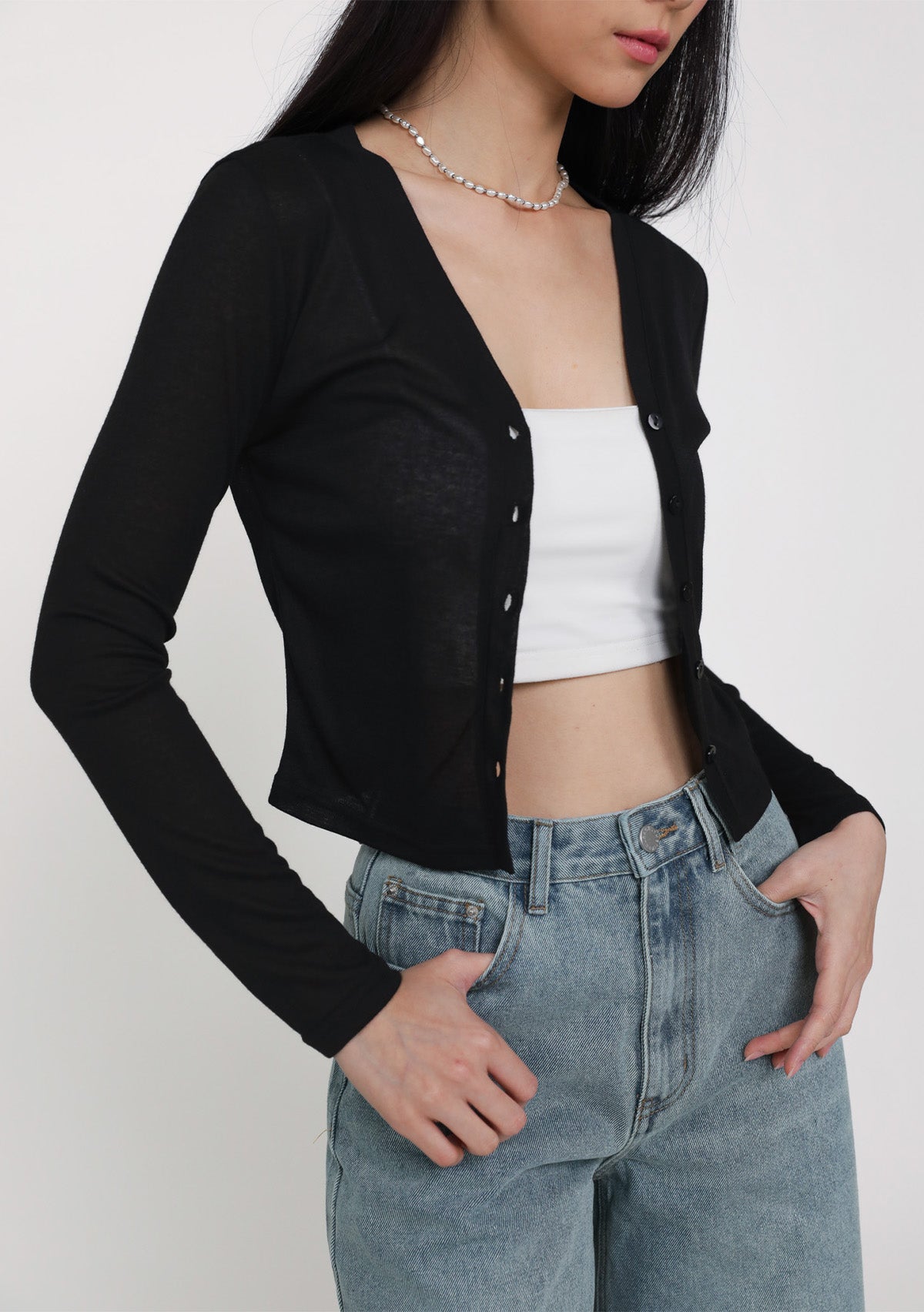 This cardigan is made of polyester rayon material and includes functional front buttons and a matching pouch.