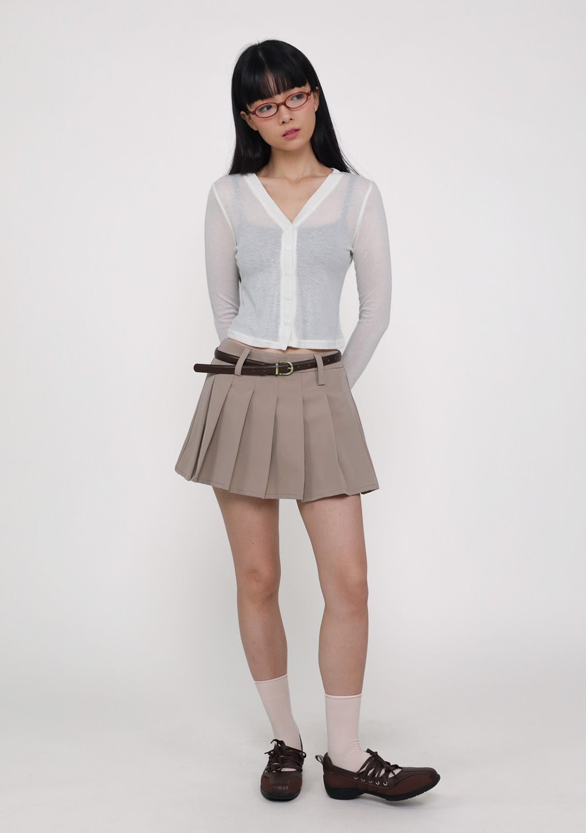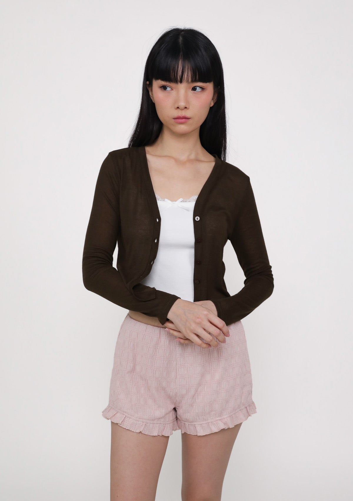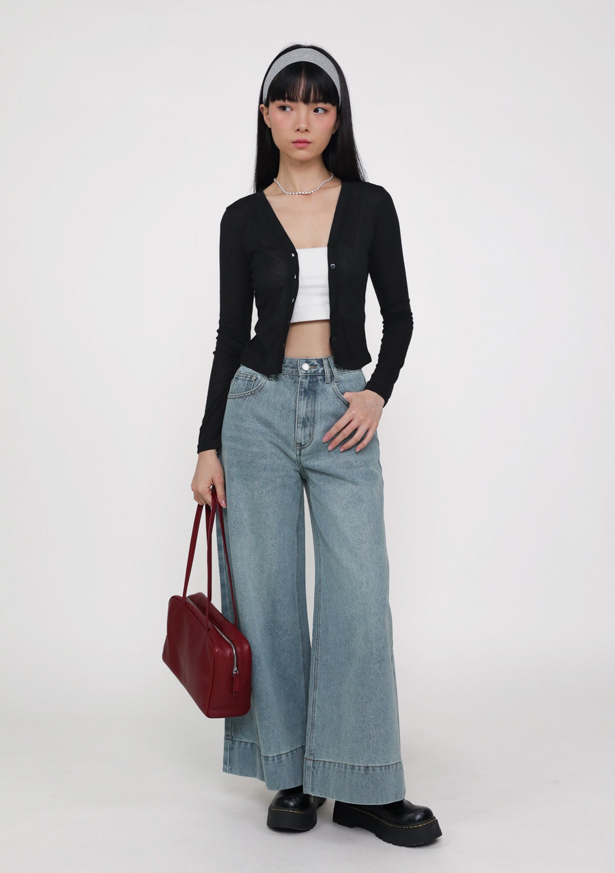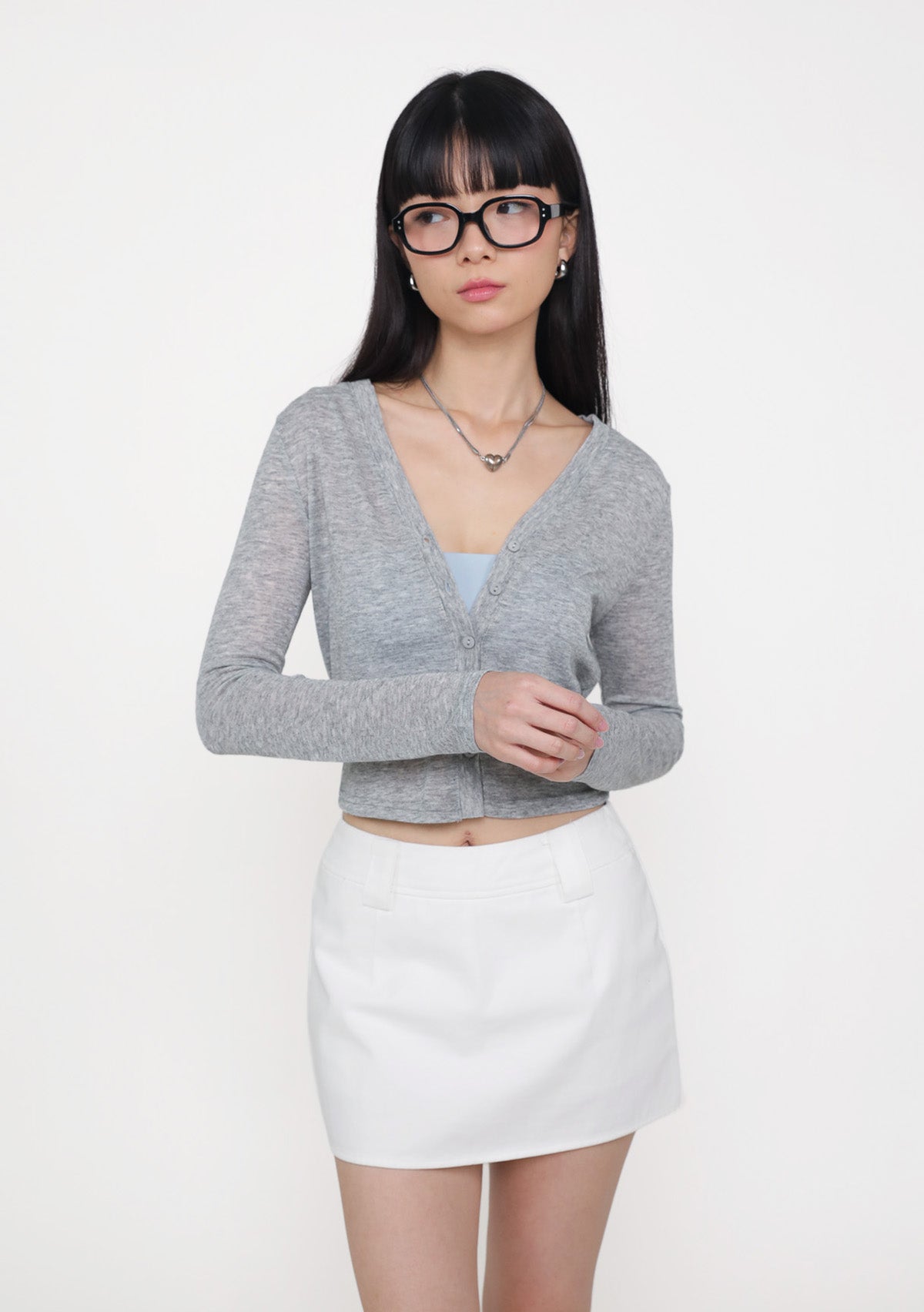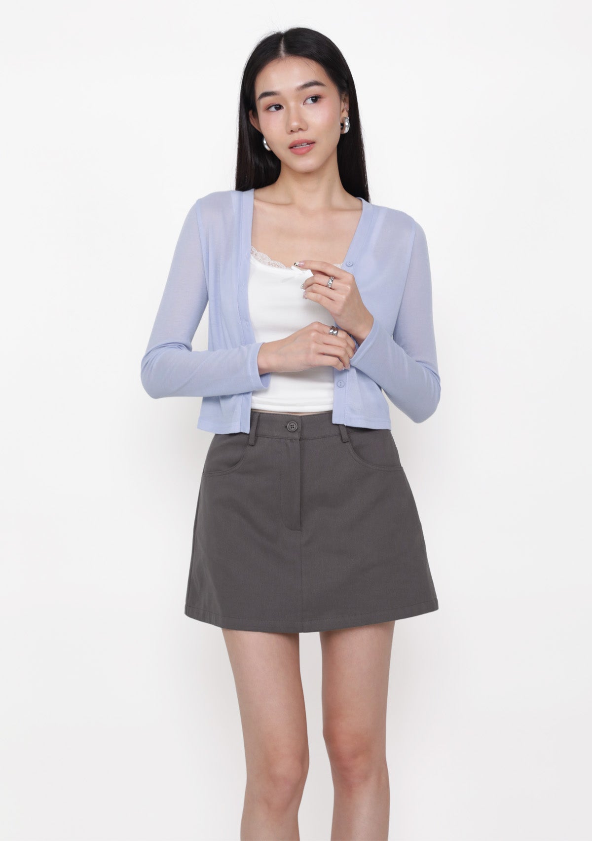 This cardigan is made of polyester rayon material and includes functional front buttons and a matching pouch.