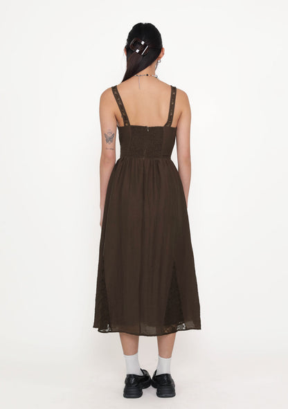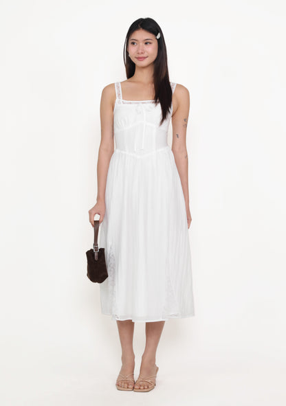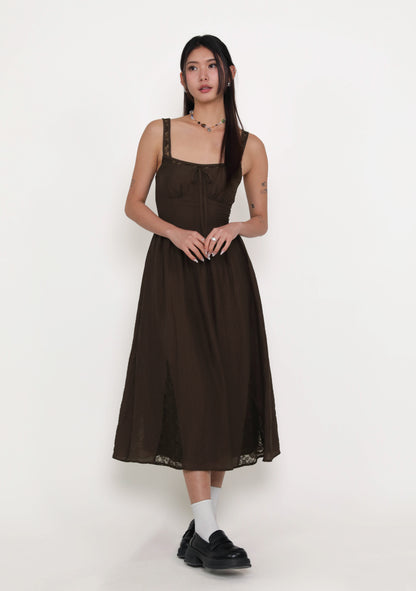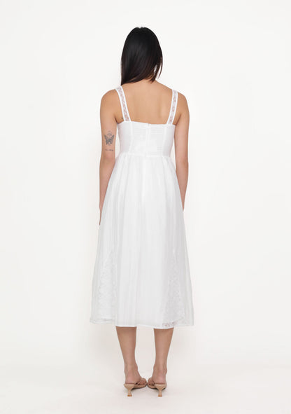 Valeria is romantic elegance with a flattering silhouette. Designed with delicate lace detailing and a flowing maxi length, this dress offers a soft yet structured look that’s perfect for special moments and elevated everyday wear. The self-tie front ribbon adds a feminine, adjustable touch, while the smocked back ensures a comfortable, flexible fit. Fully inner lined and finished with removable paddings and a concealed back zip, Valeria moves effortlessly with you from day to night.