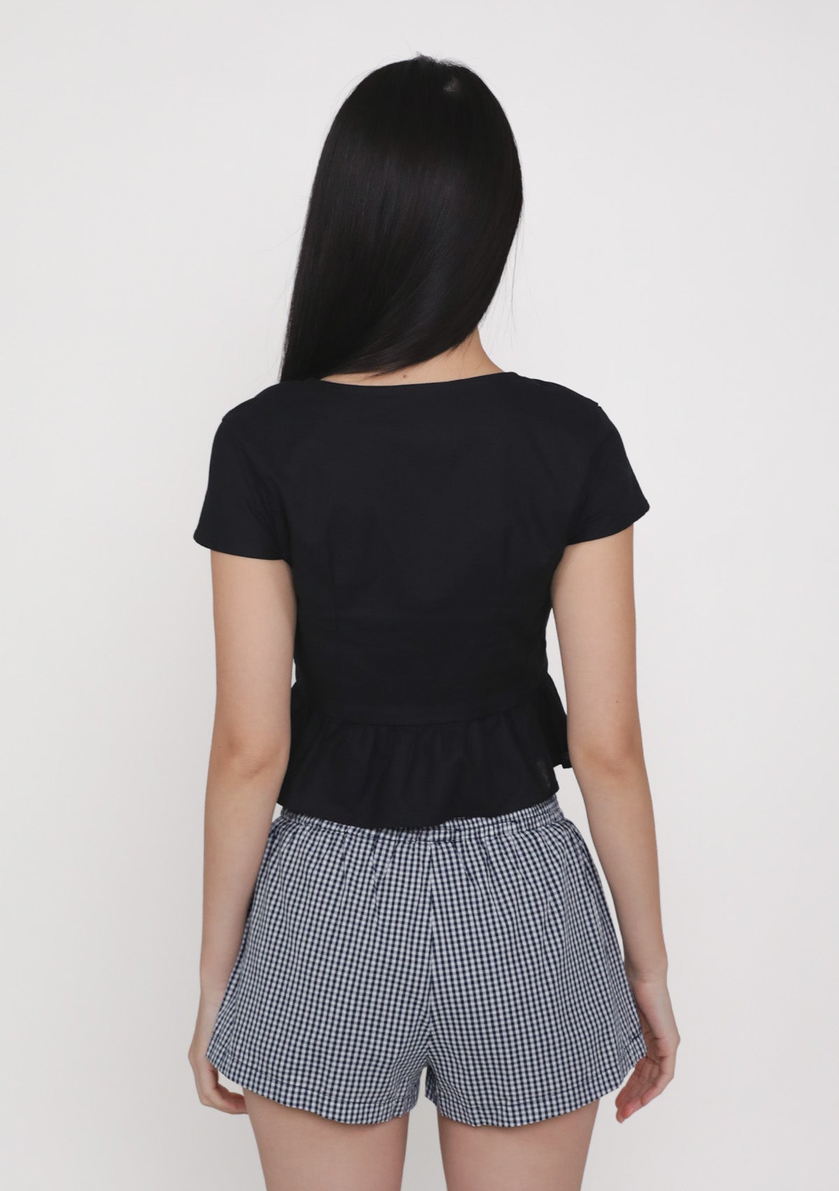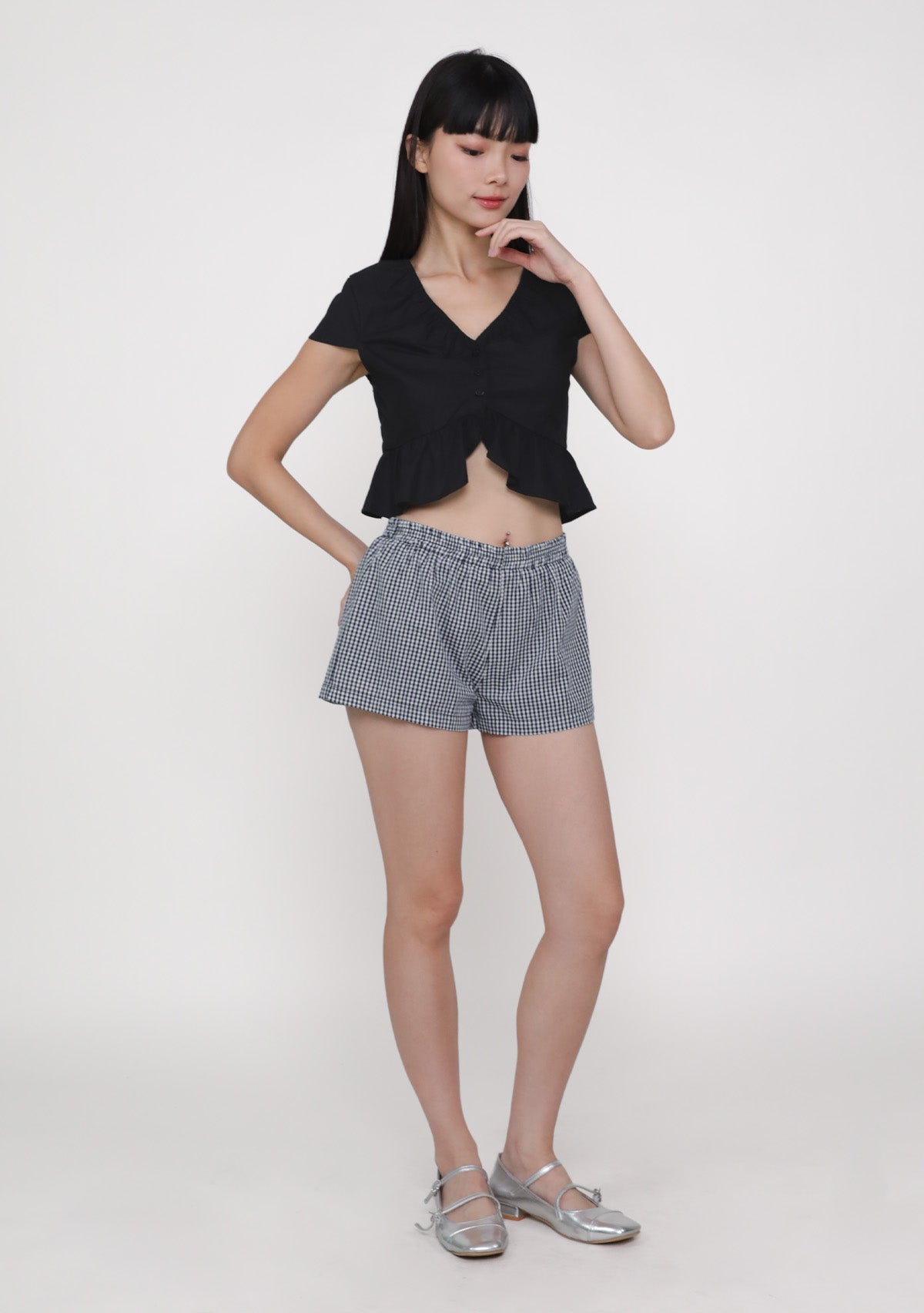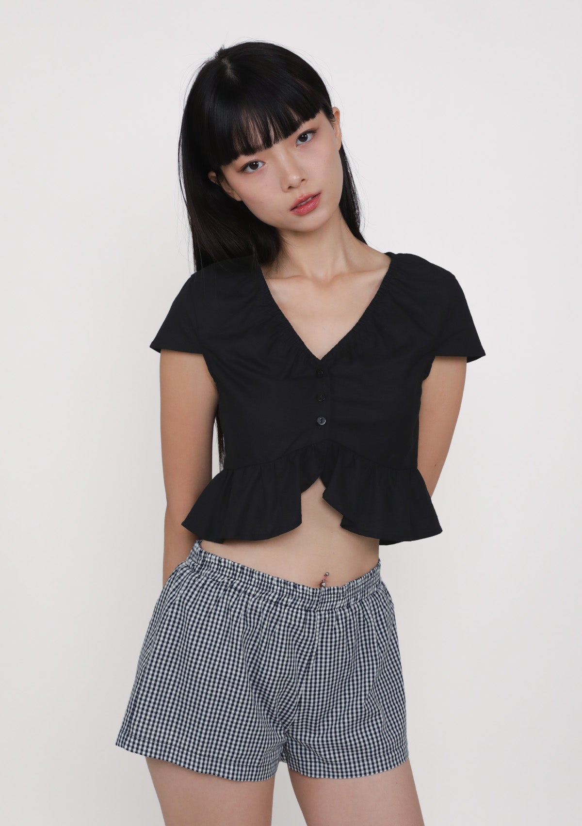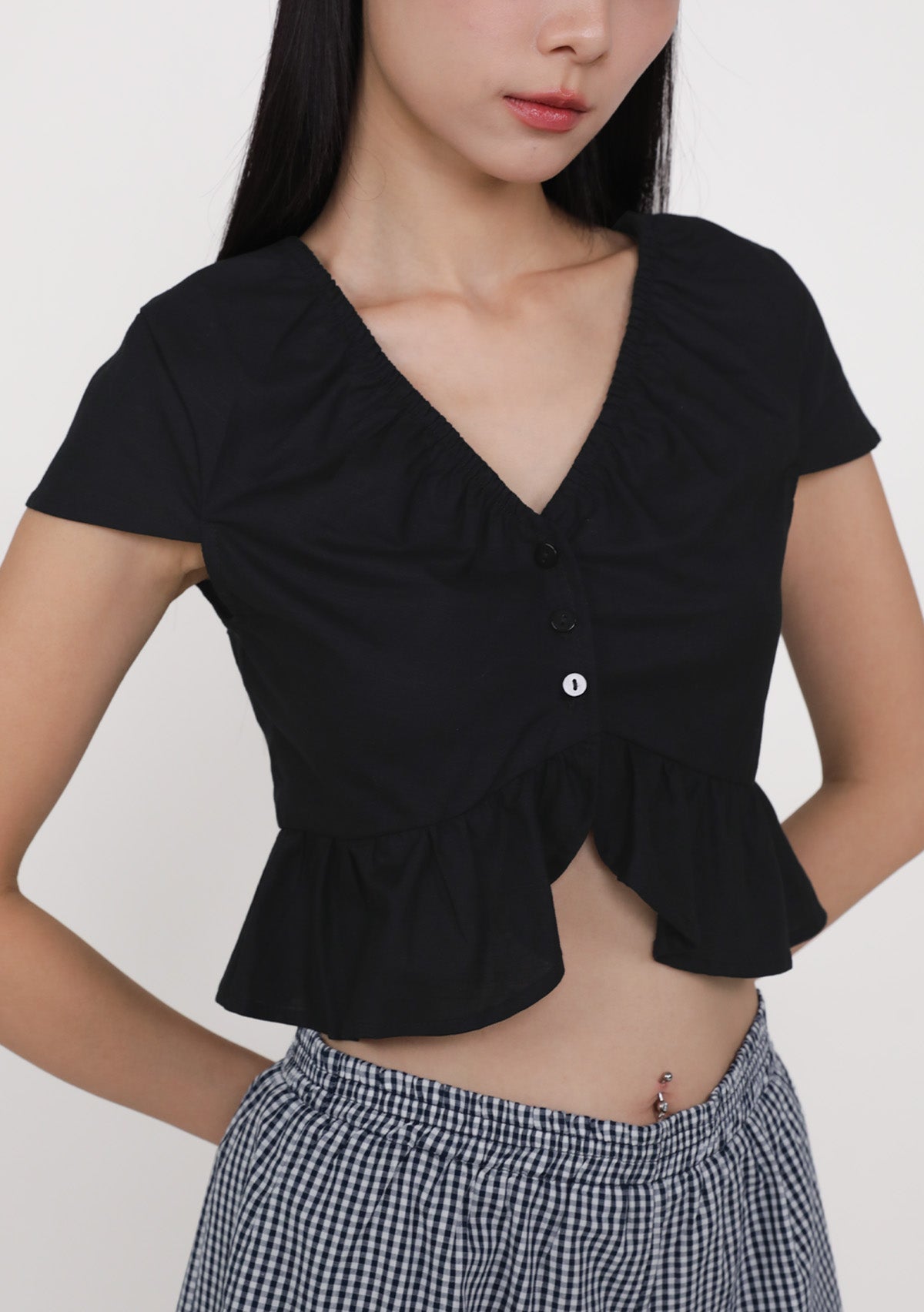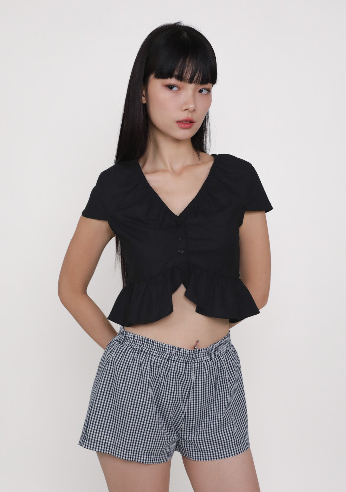 Sweet with a touch of structure, Hanni Button Babydoll Top is your answer to effortless charm. Featuring a ruffled babydoll hem and dainty buttons down the front, it flatters the waist while adding a soft, flared silhouette.