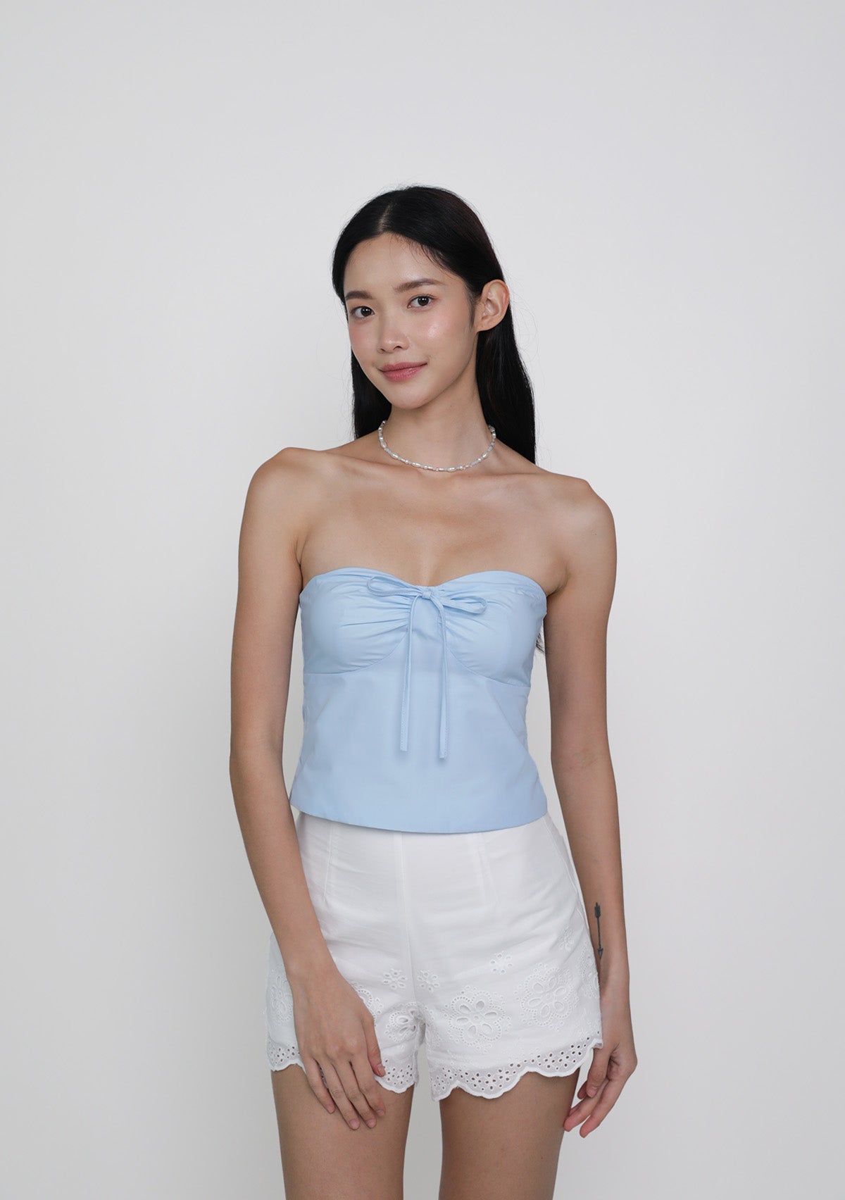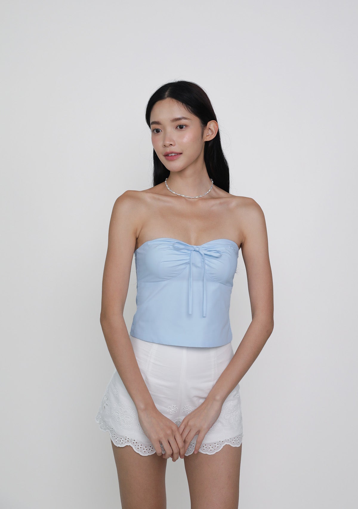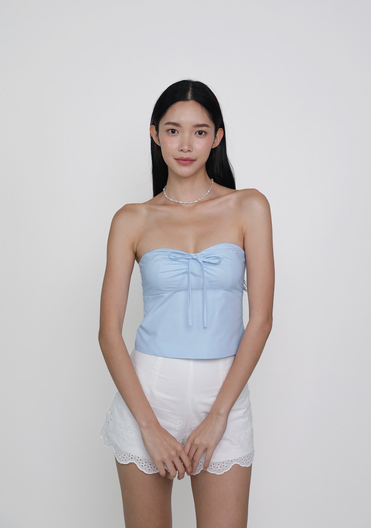 Soft girl charm, made effortless. Kerine Ruched Front Tube Padded Top features a delicate self-tie bow and a flattering ruched bust that adds just the right amount of femininity. Perfect for spring days and casual outings, it’s a dreamy staple that pairs seamlessly with anything from flowy skirts to relaxed denim.