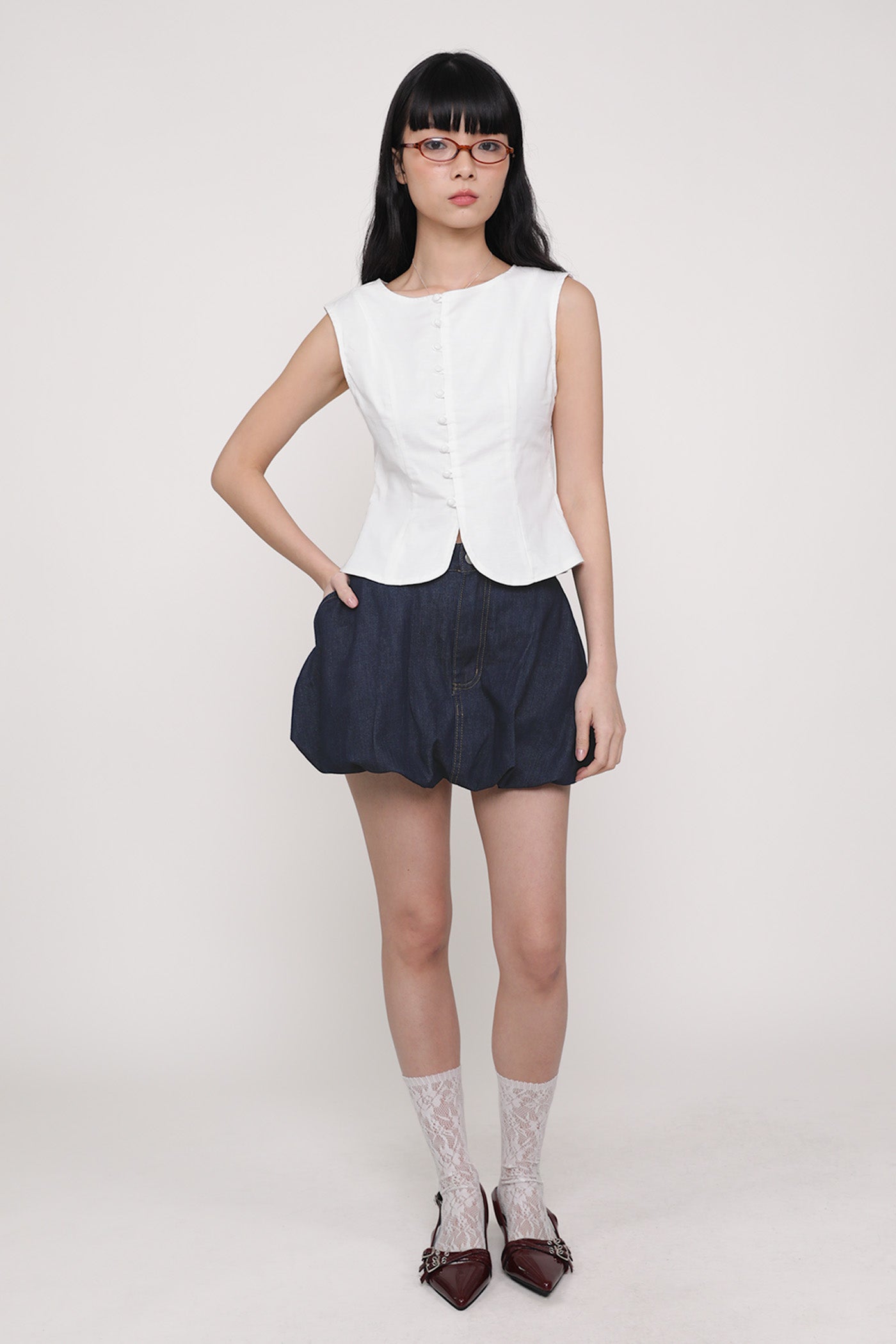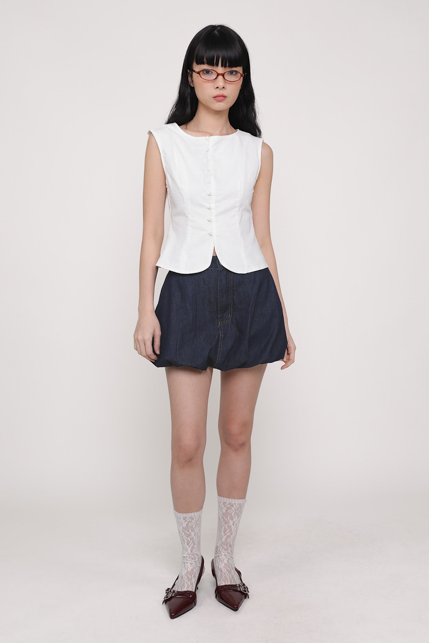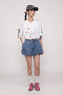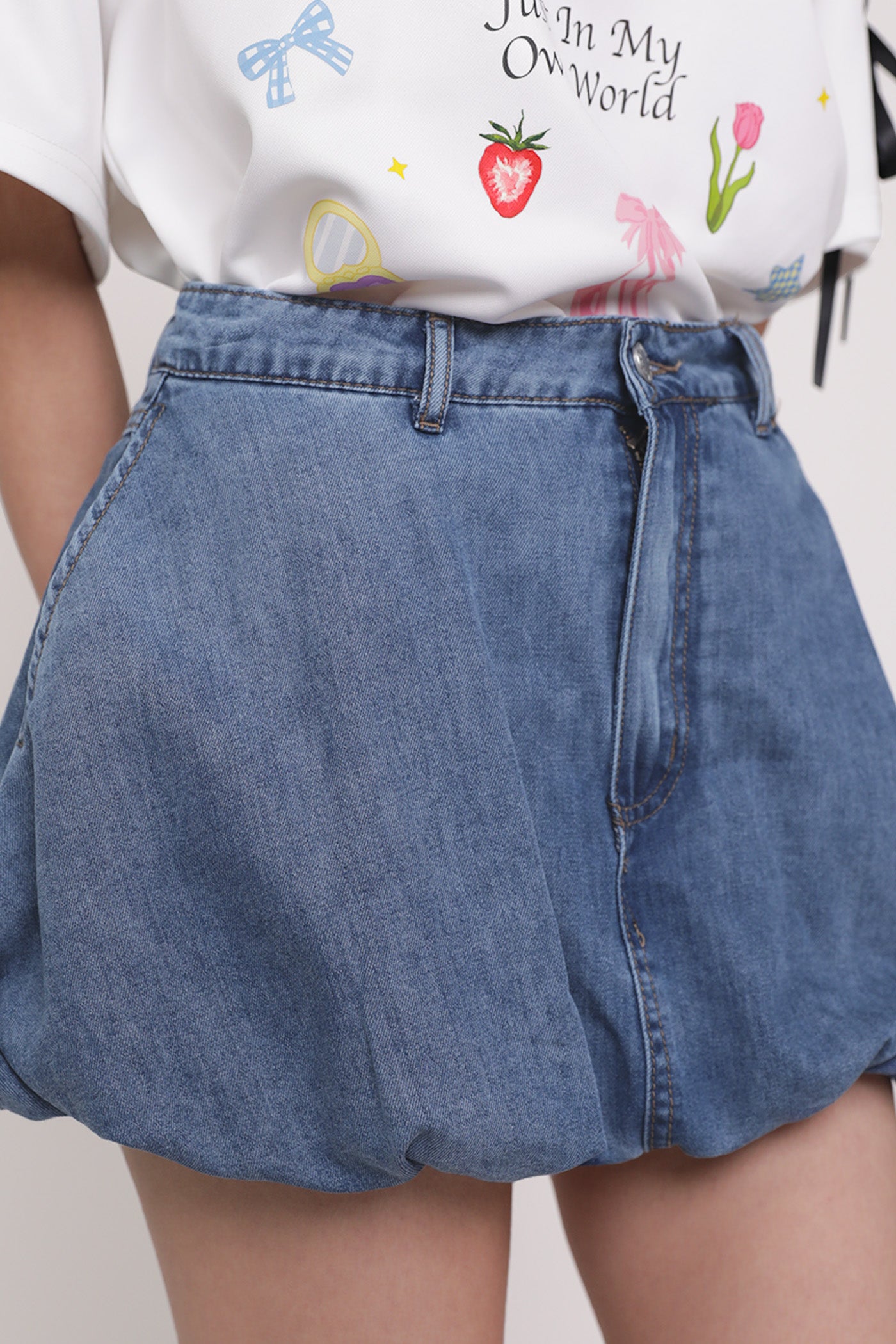 Add a little bounce to your style with the Sabrina Denim Bubble Skorts. Featuring a playful balloon hem for a statement silhouette, these skorts effortlessly blend fashion with function. Hidden side pockets offer a practical touch, making it the perfect go-to for casual days with a trendy twist.