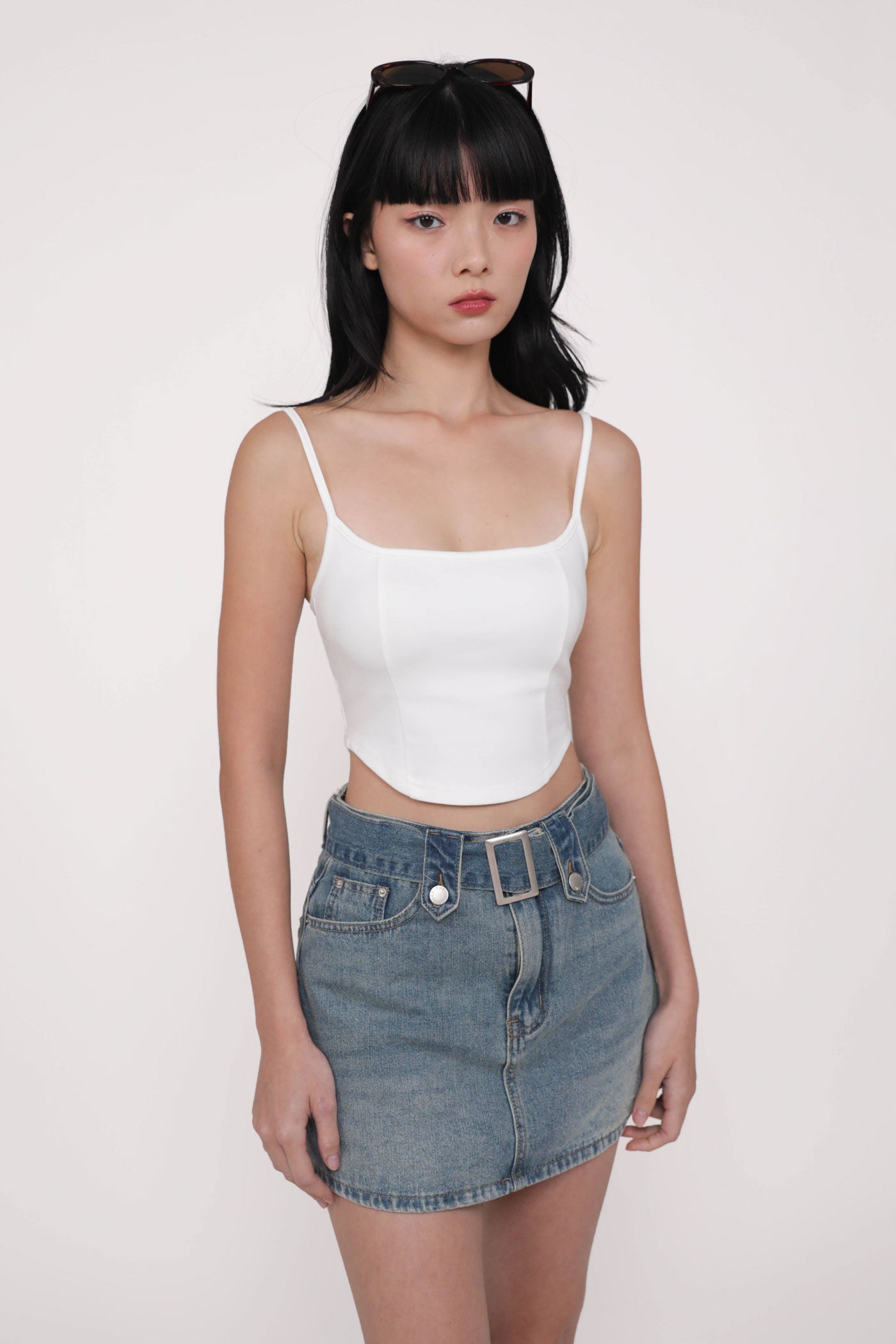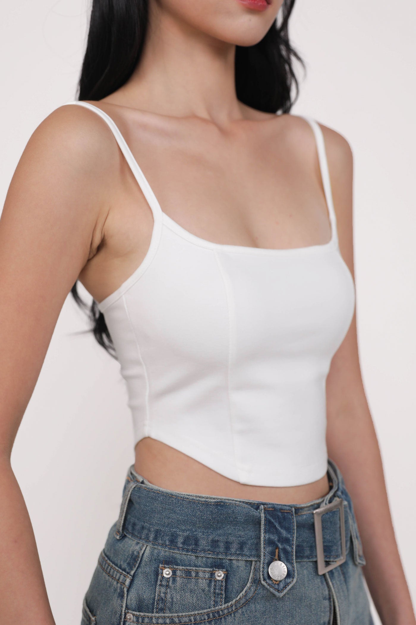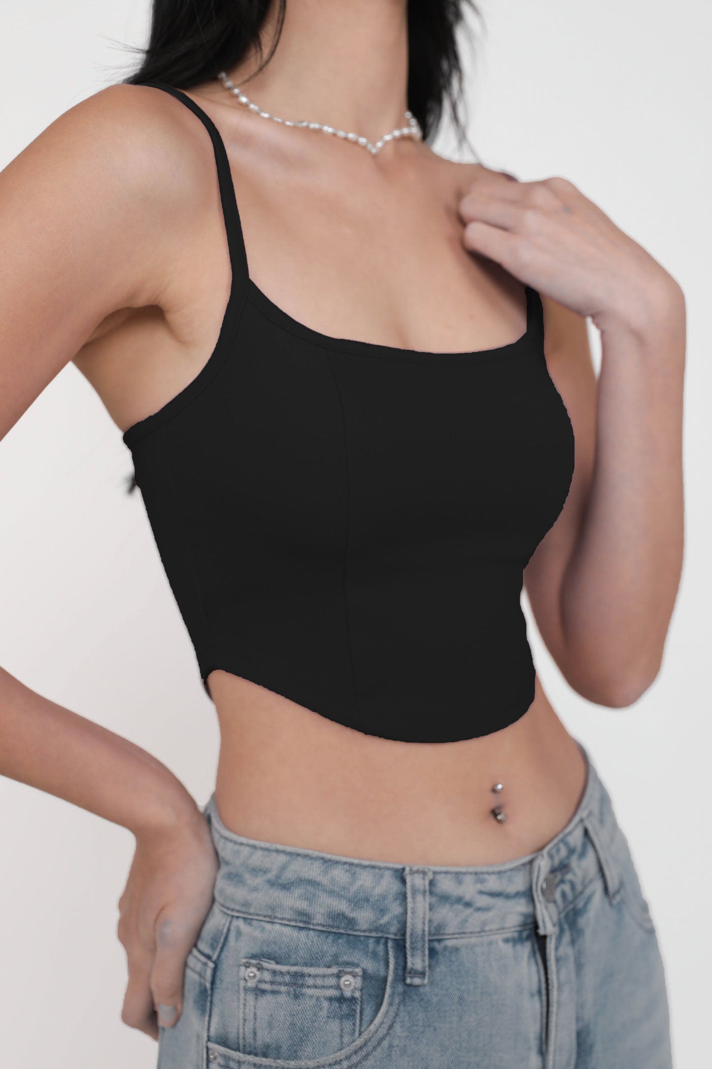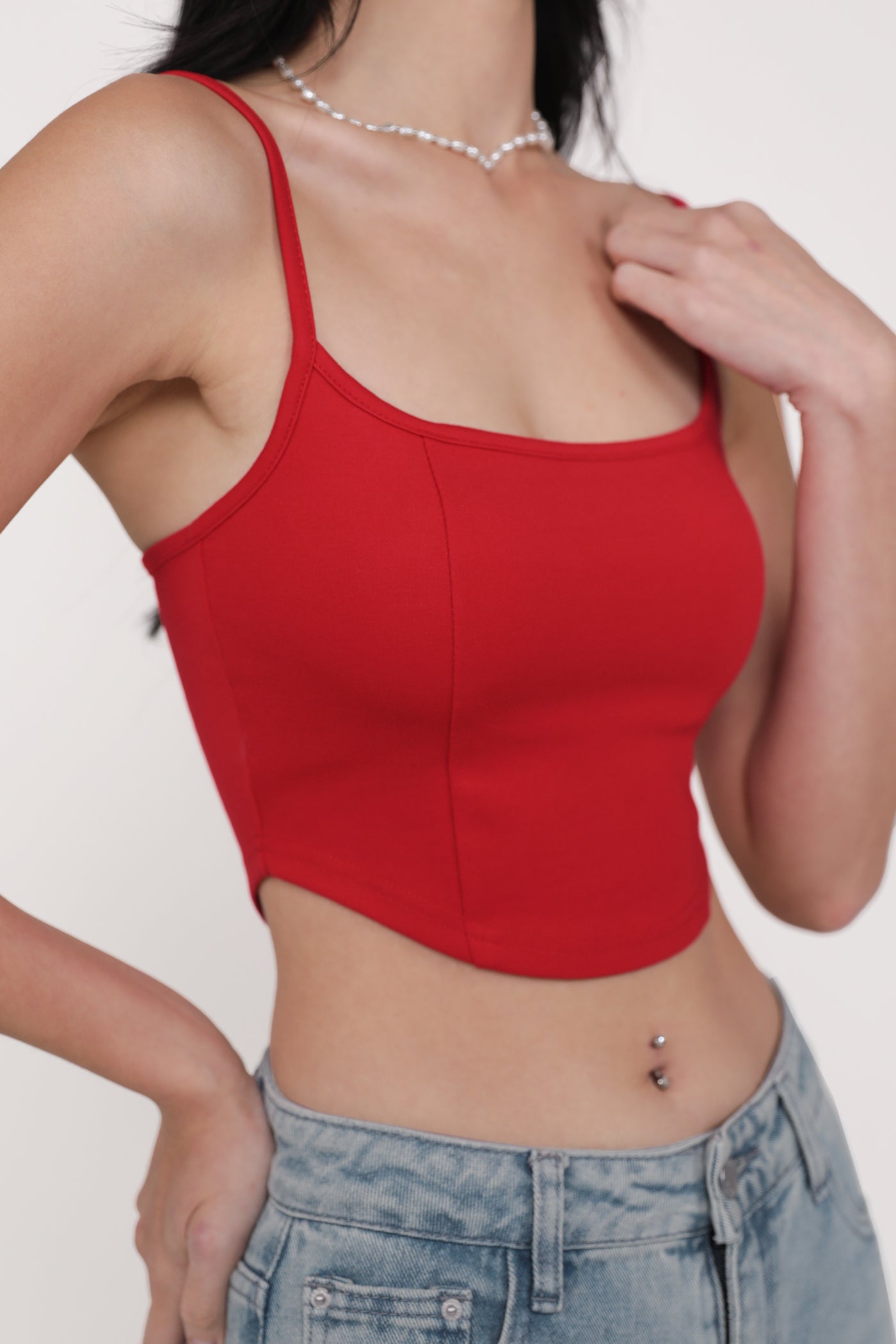 Hit refresh on your warm-weather looks with Adela. Adela Curved Hem Padded Top flaunts a chic fitted silhouette with a sleek curved hemline for a confident attitude. This top is a timeless piece to style with your favourite bottoms, elevating any outfit with ease. Strike up your best summer looks with Adela.