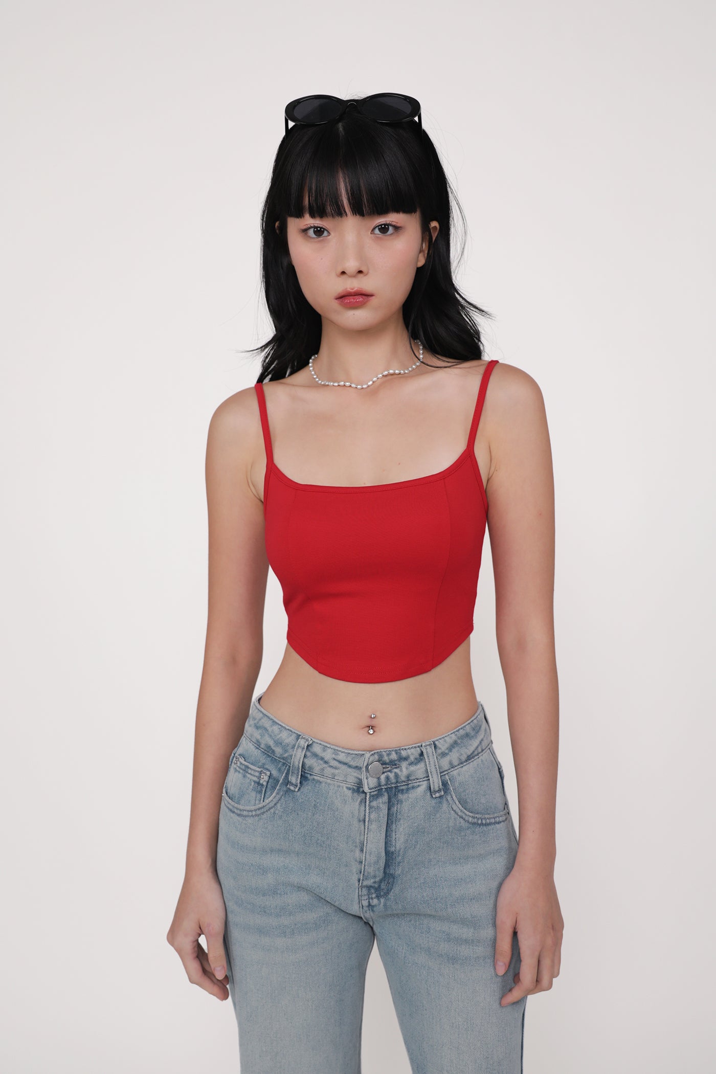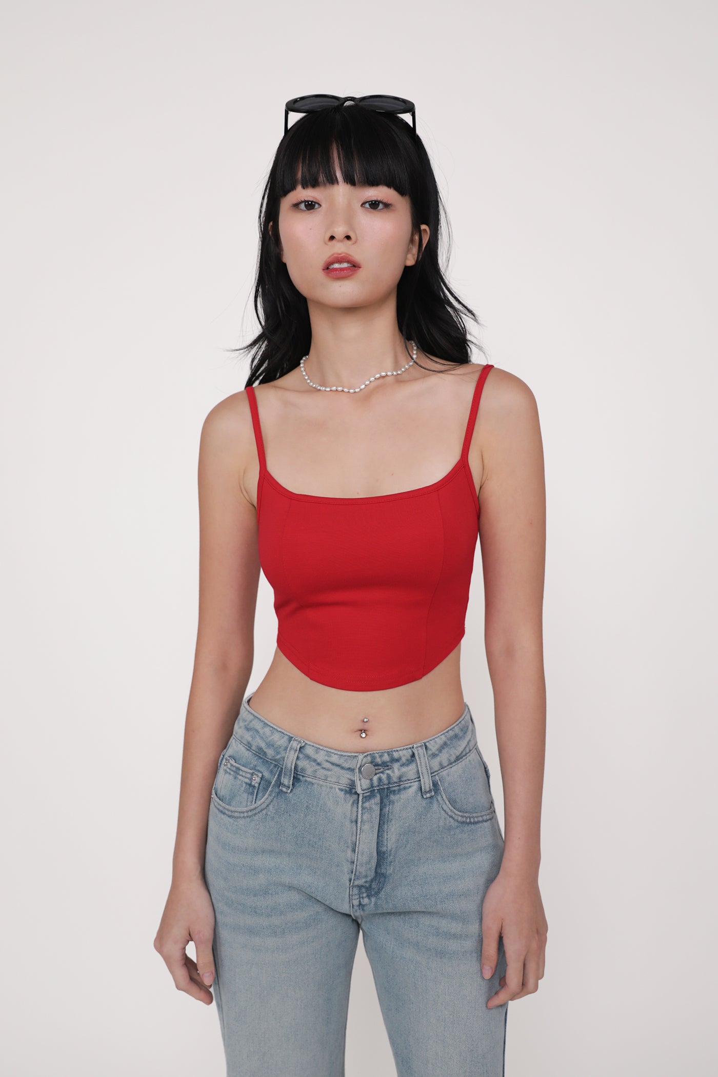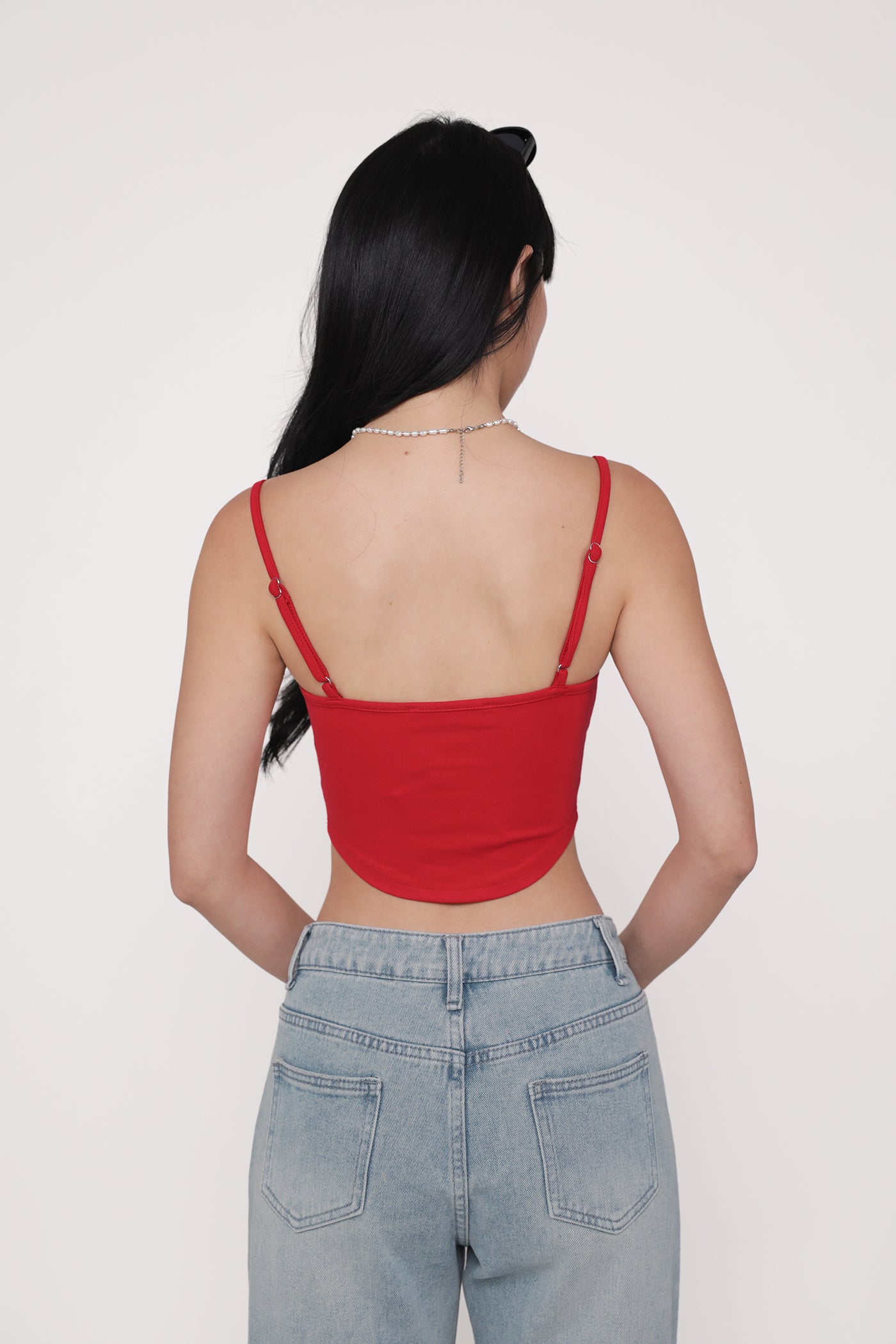 Hit refresh on your warm-weather looks with Adela. Adela Curved Hem Padded Top flaunts a chic fitted silhouette with a sleek curved hemline for a confident attitude. This top is a timeless piece to style with your favourite bottoms, elevating any outfit with ease. Strike up your best summer looks with Adela.
