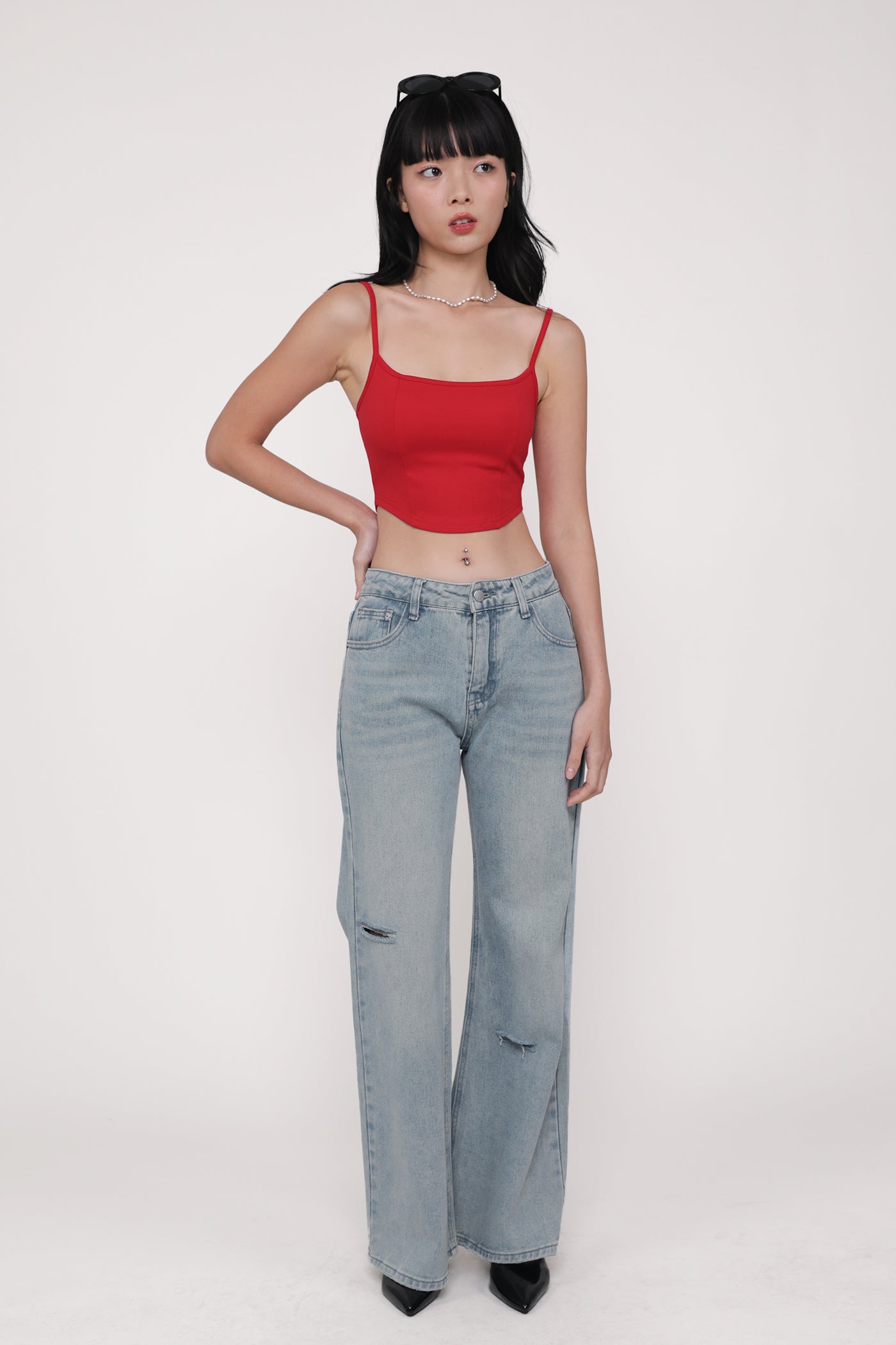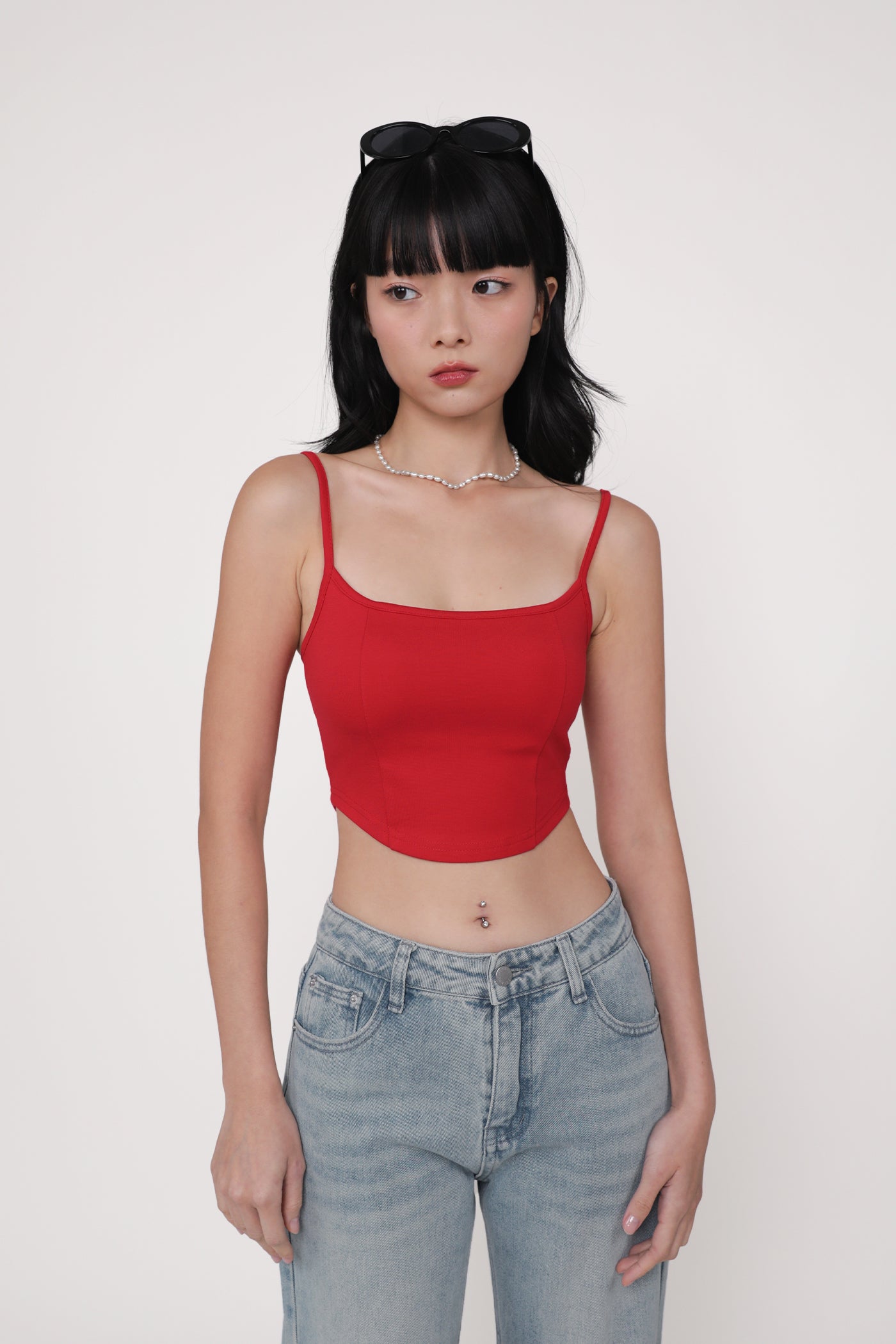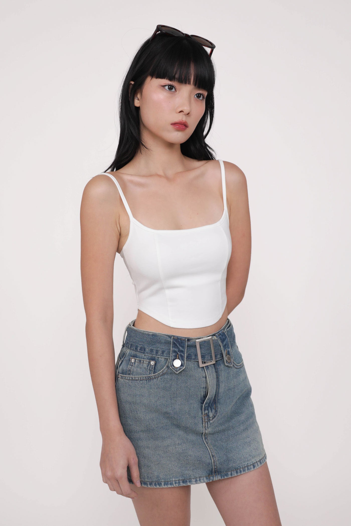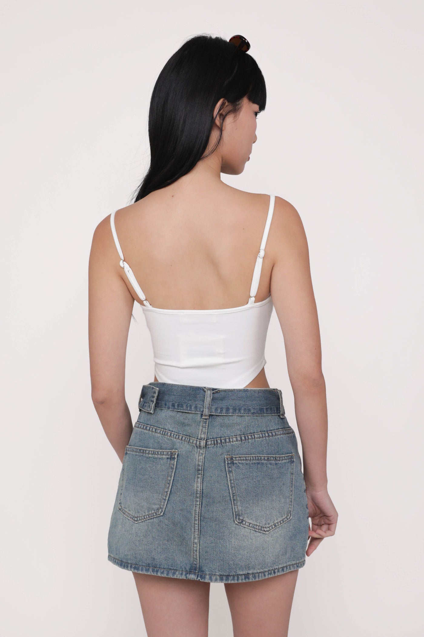 Hit refresh on your warm-weather looks with Adela. Adela Curved Hem Padded Top flaunts a chic fitted silhouette with a sleek curved hemline for a confident attitude. This top is a timeless piece to style with your favourite bottoms, elevating any outfit with ease. Strike up your best summer looks with Adela.