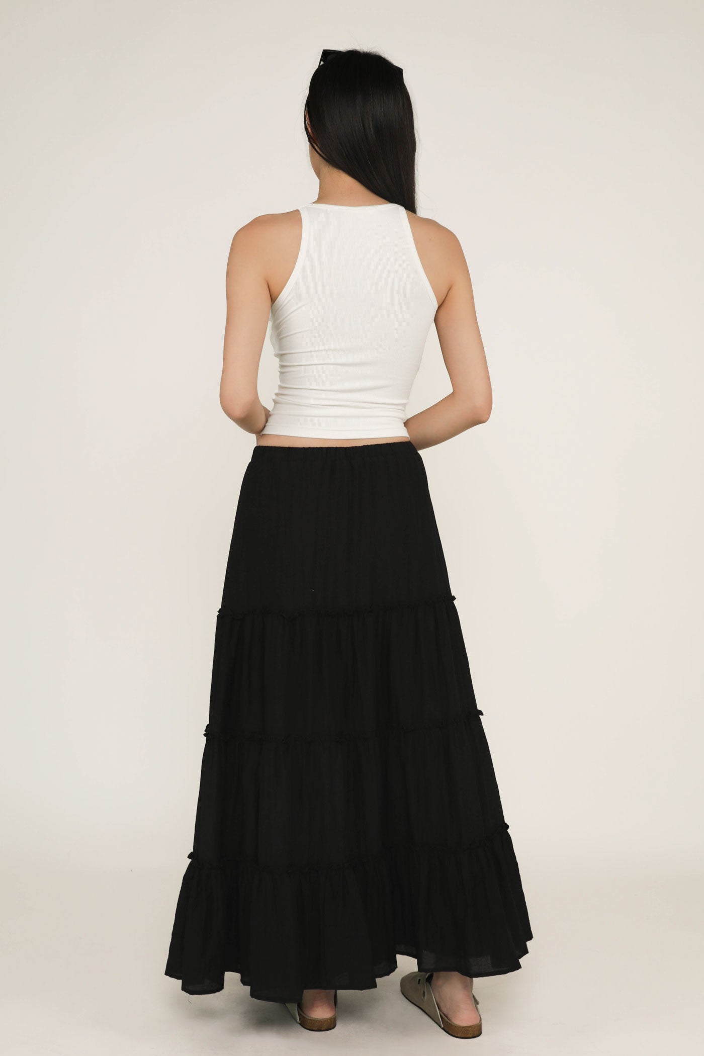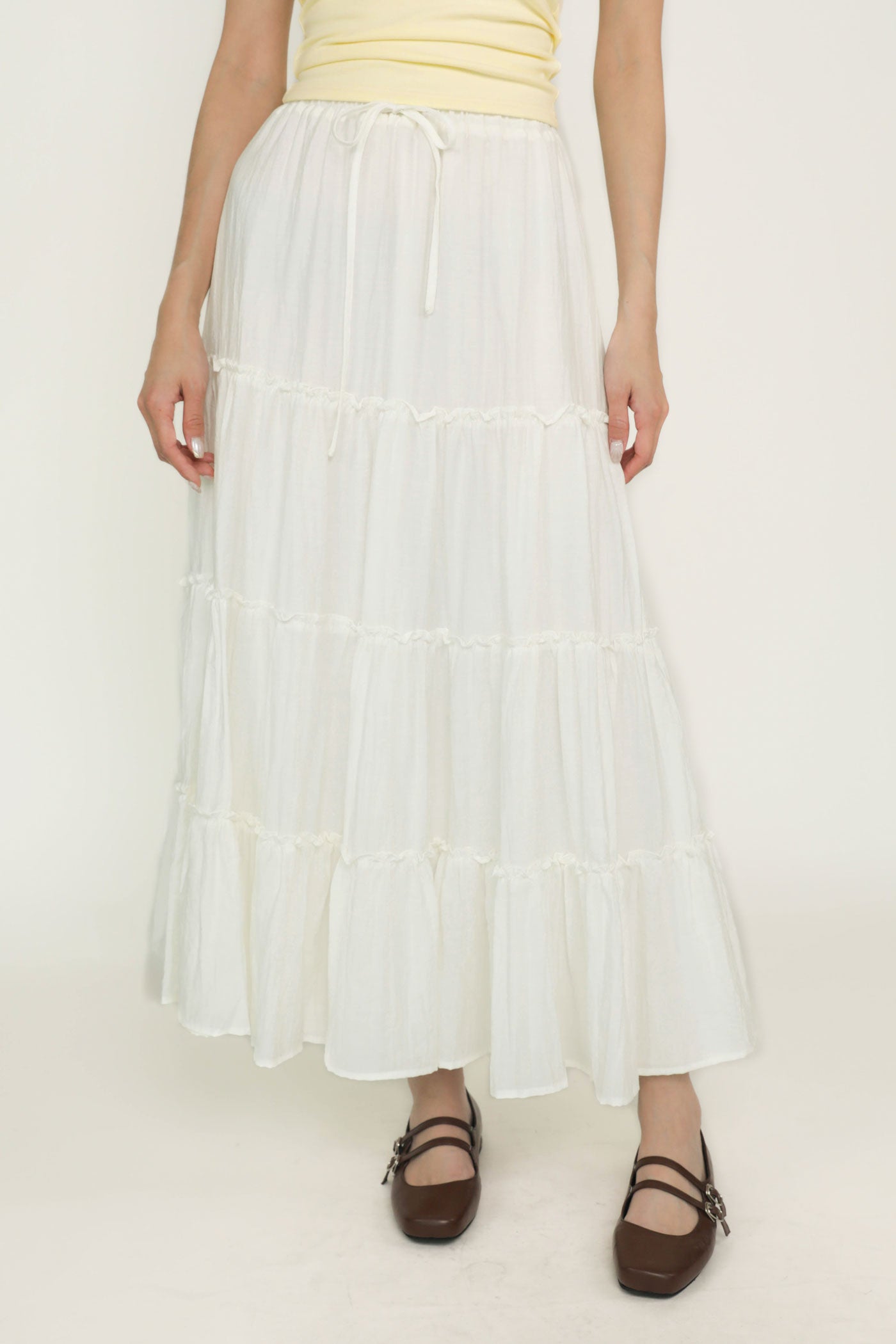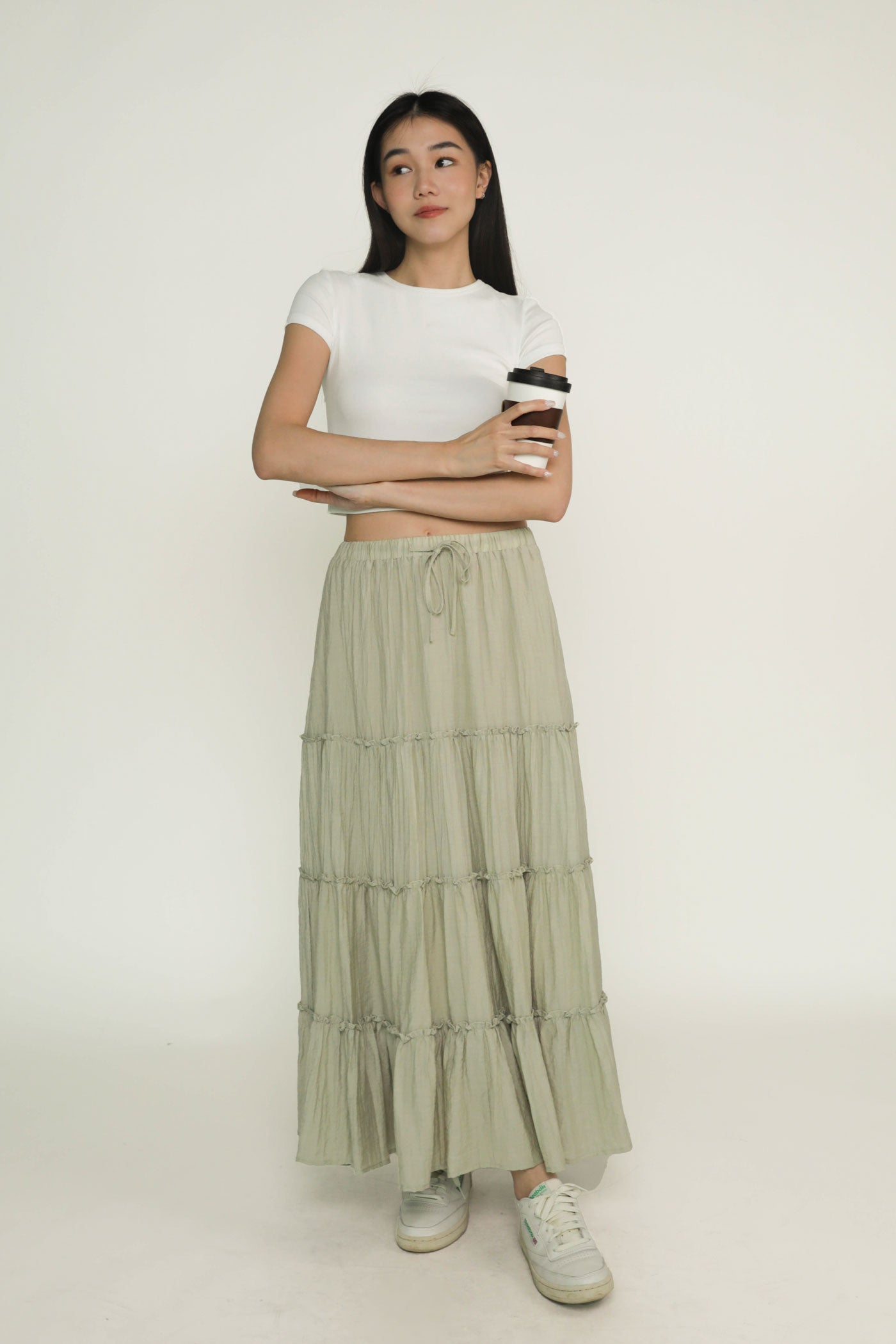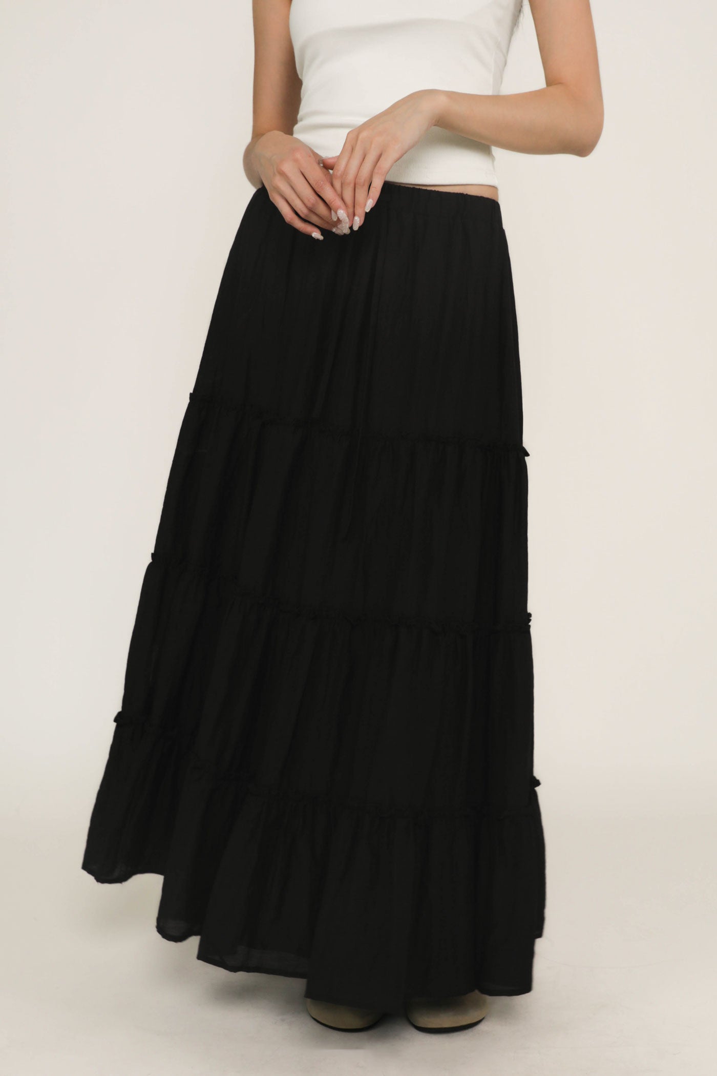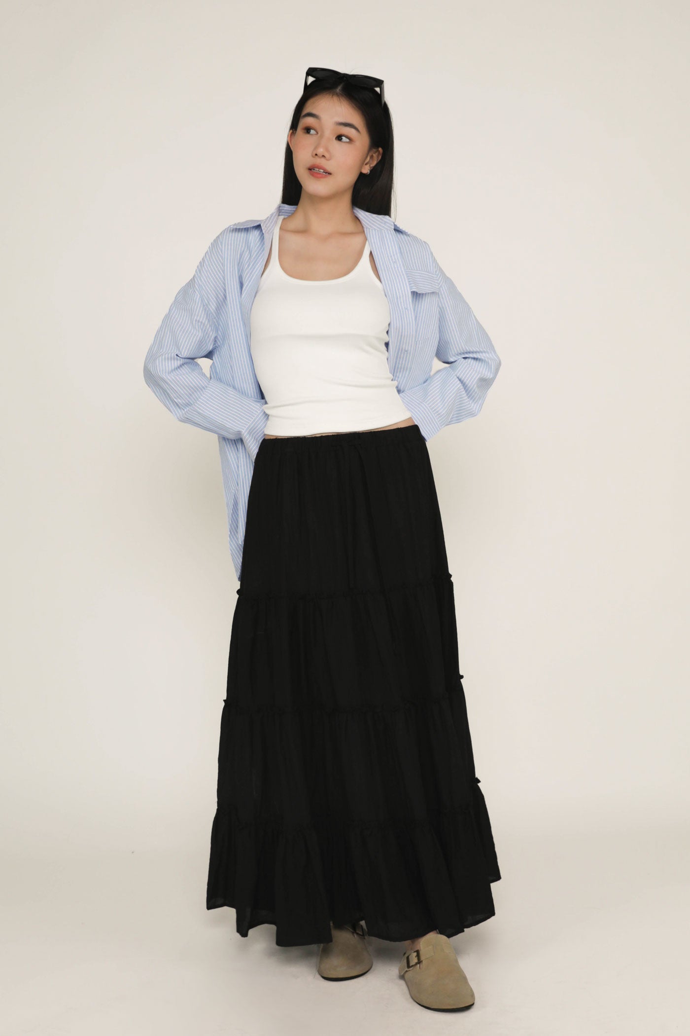 In a twirly mood with Aniya. Aniya Frills Tiered Skirt is a sweet spring skirt to add your everyday wardrobe. The skirt flaunts a flowy tiered silhouette with playful frilly textures. It is a classic piece that complements all your favourite tops. Minimal yet dreamy, find yourself reaching for Aniya to create endless chic ensembles.