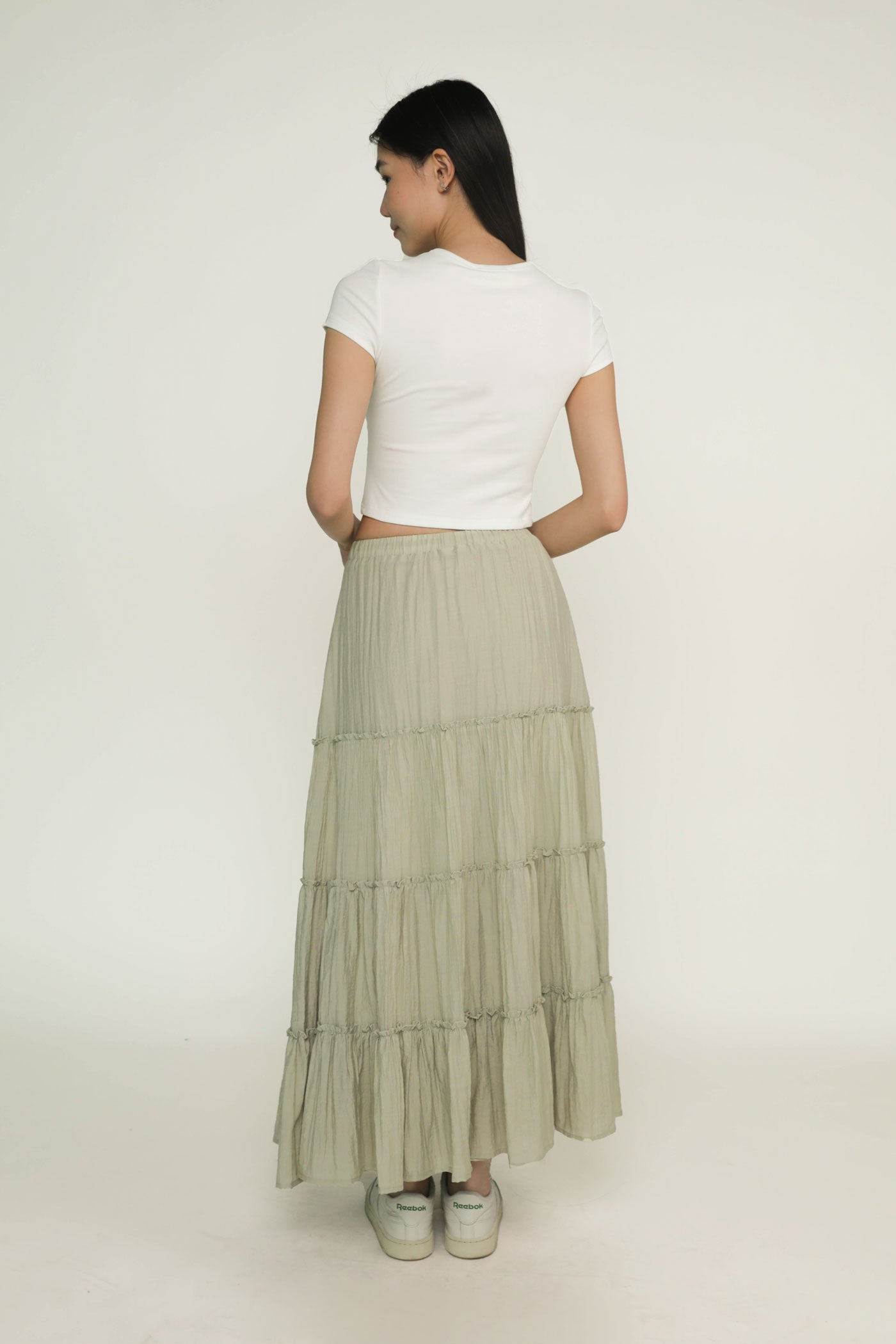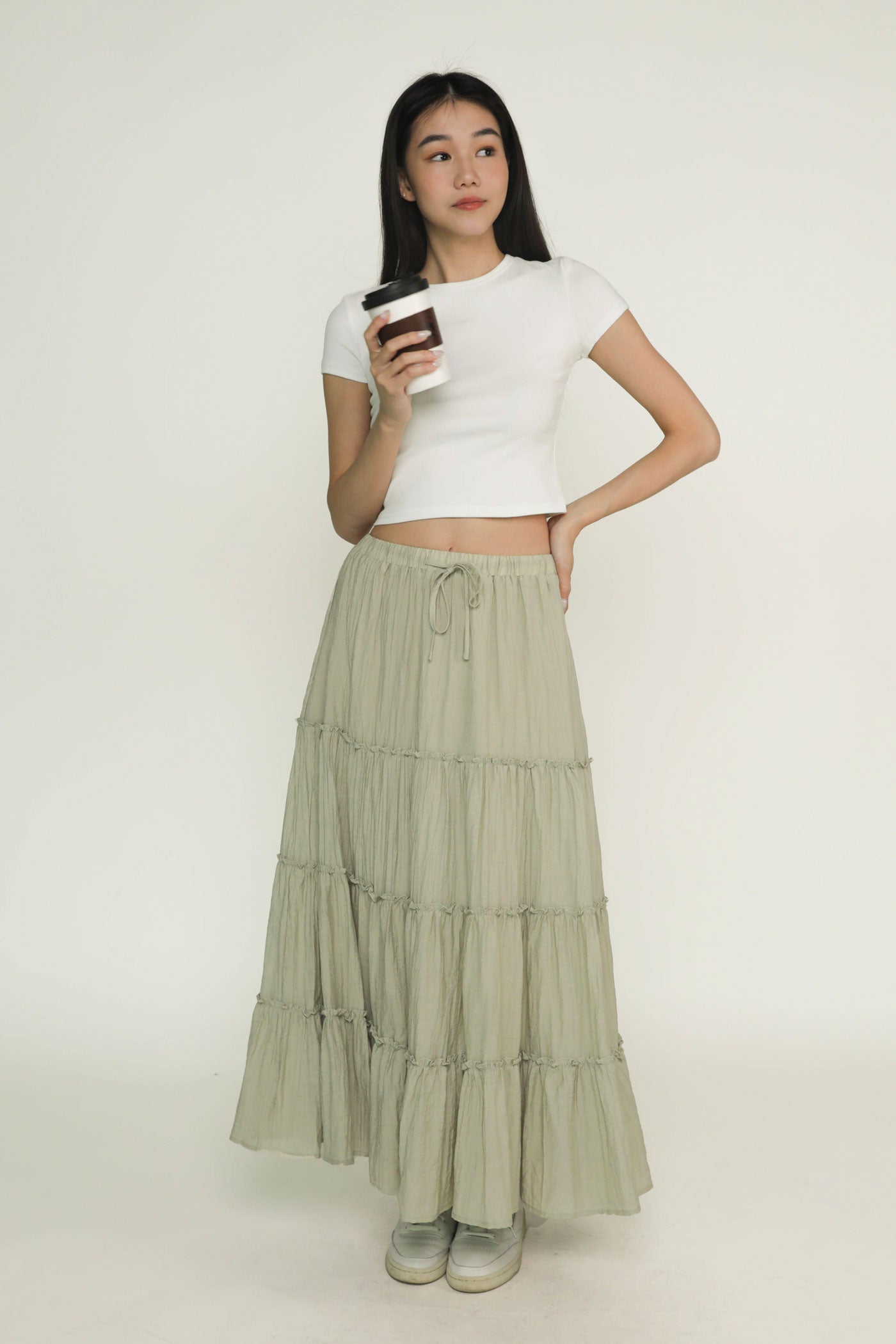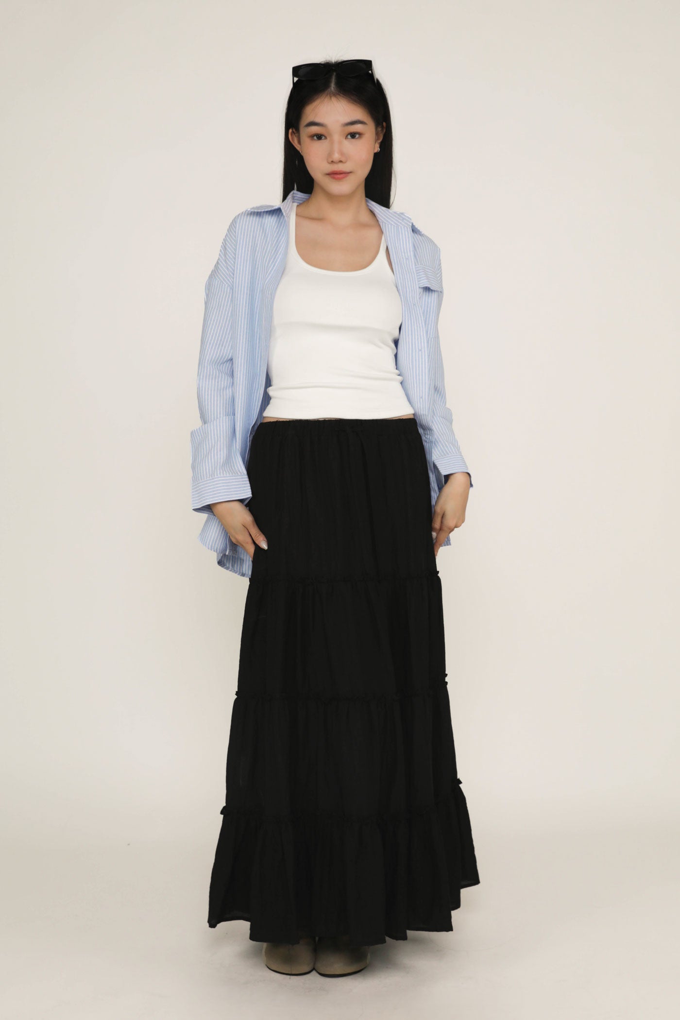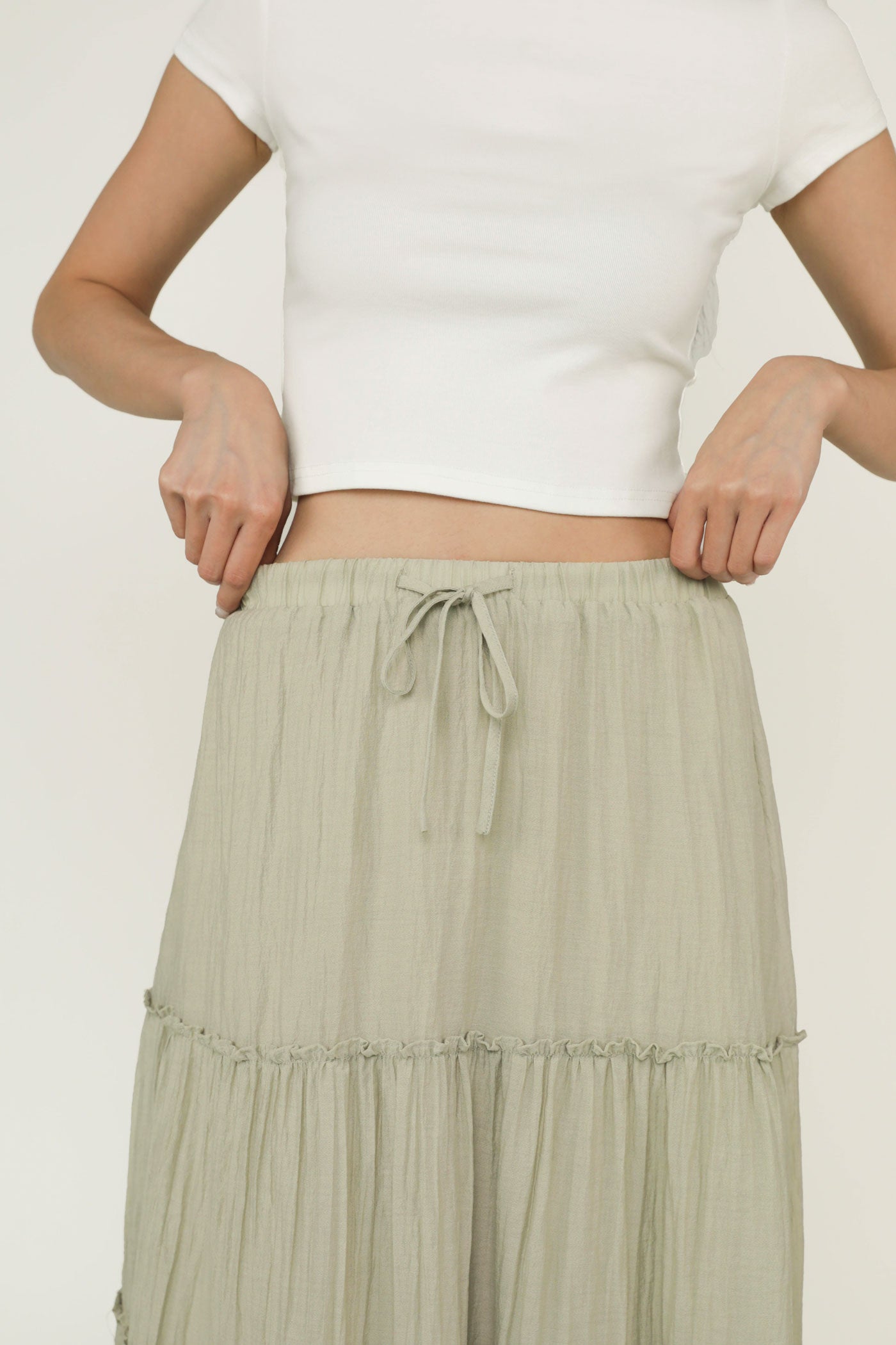 In a twirly mood with Aniya. Aniya Frills Tiered Skirt is a sweet spring skirt to add your everyday wardrobe. The skirt flaunts a flowy tiered silhouette with playful frilly textures. It is a classic piece that complements all your favourite tops. Minimal yet dreamy, find yourself reaching for Aniya to create endless chic ensembles.
