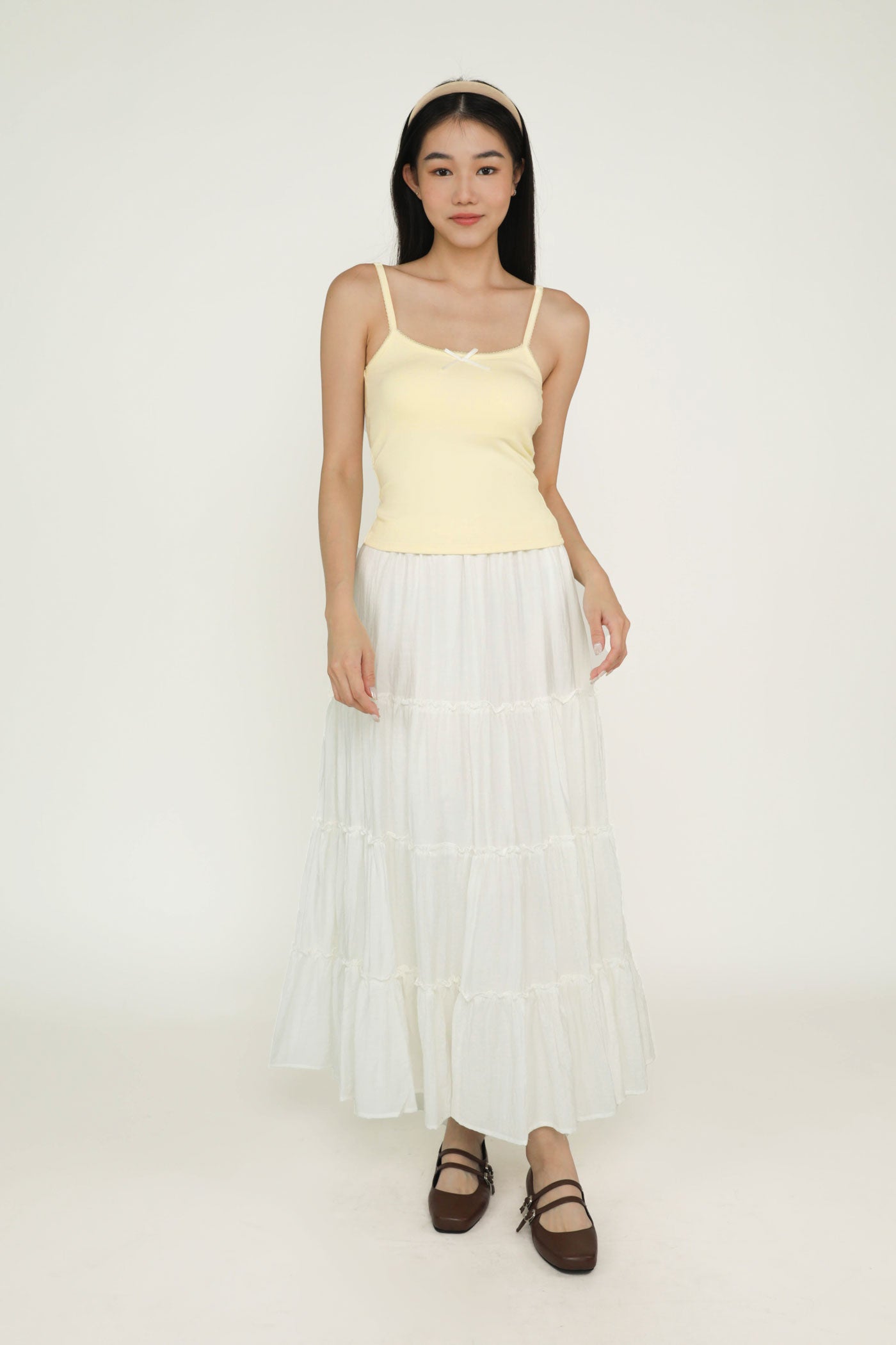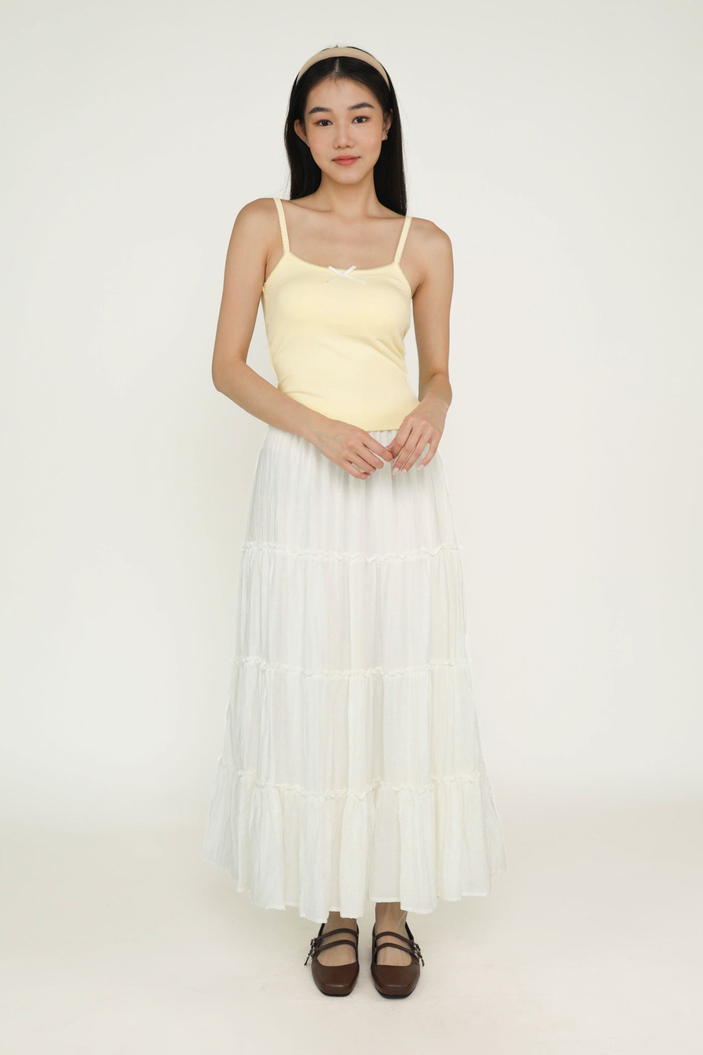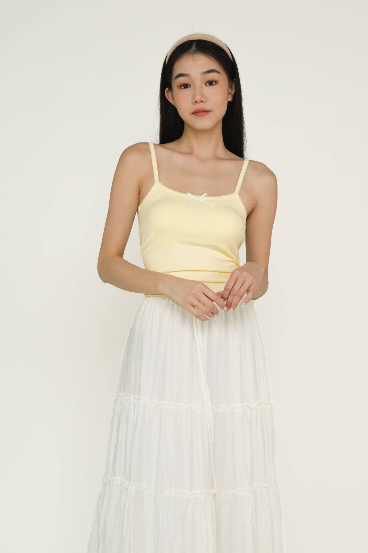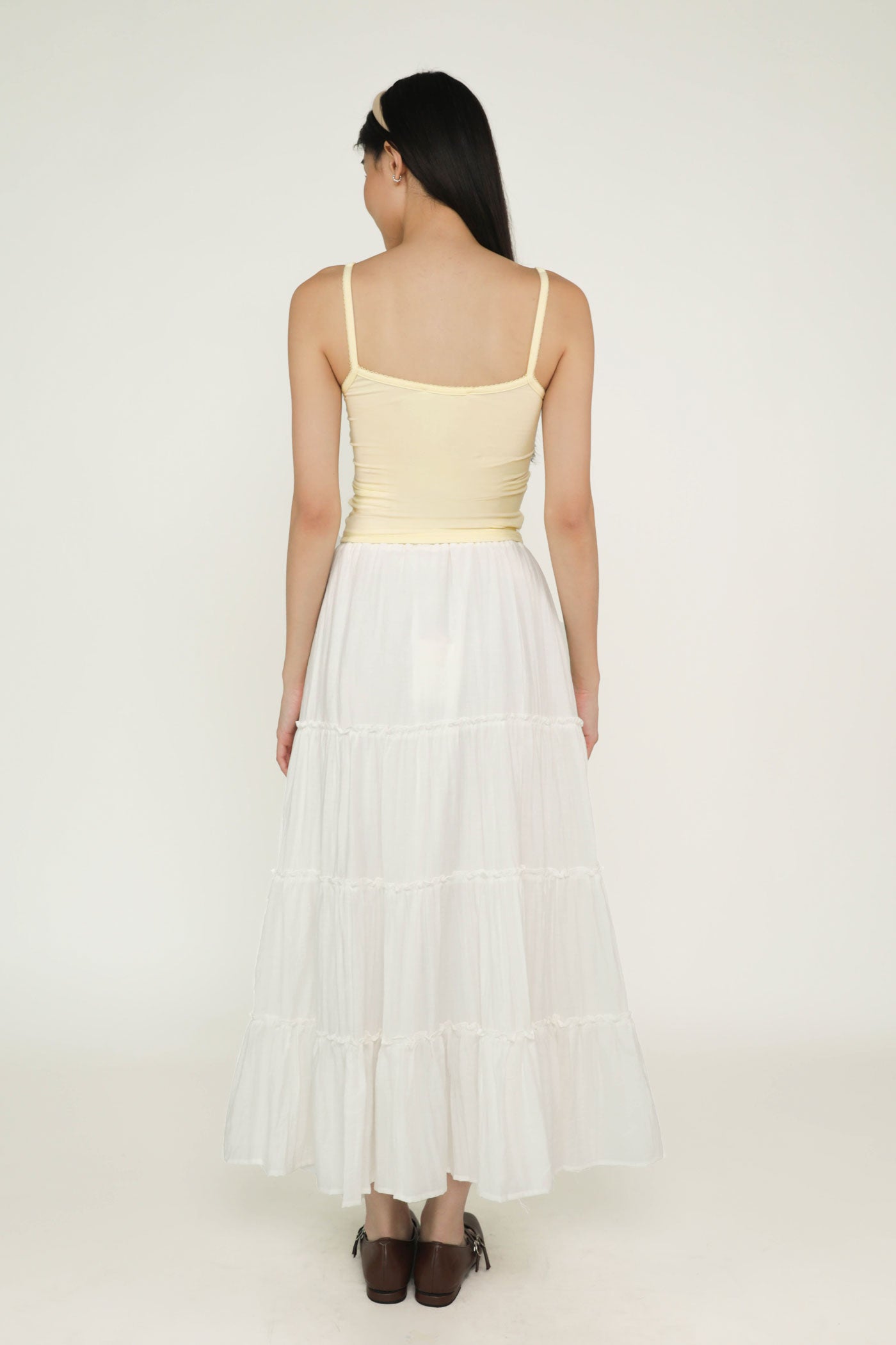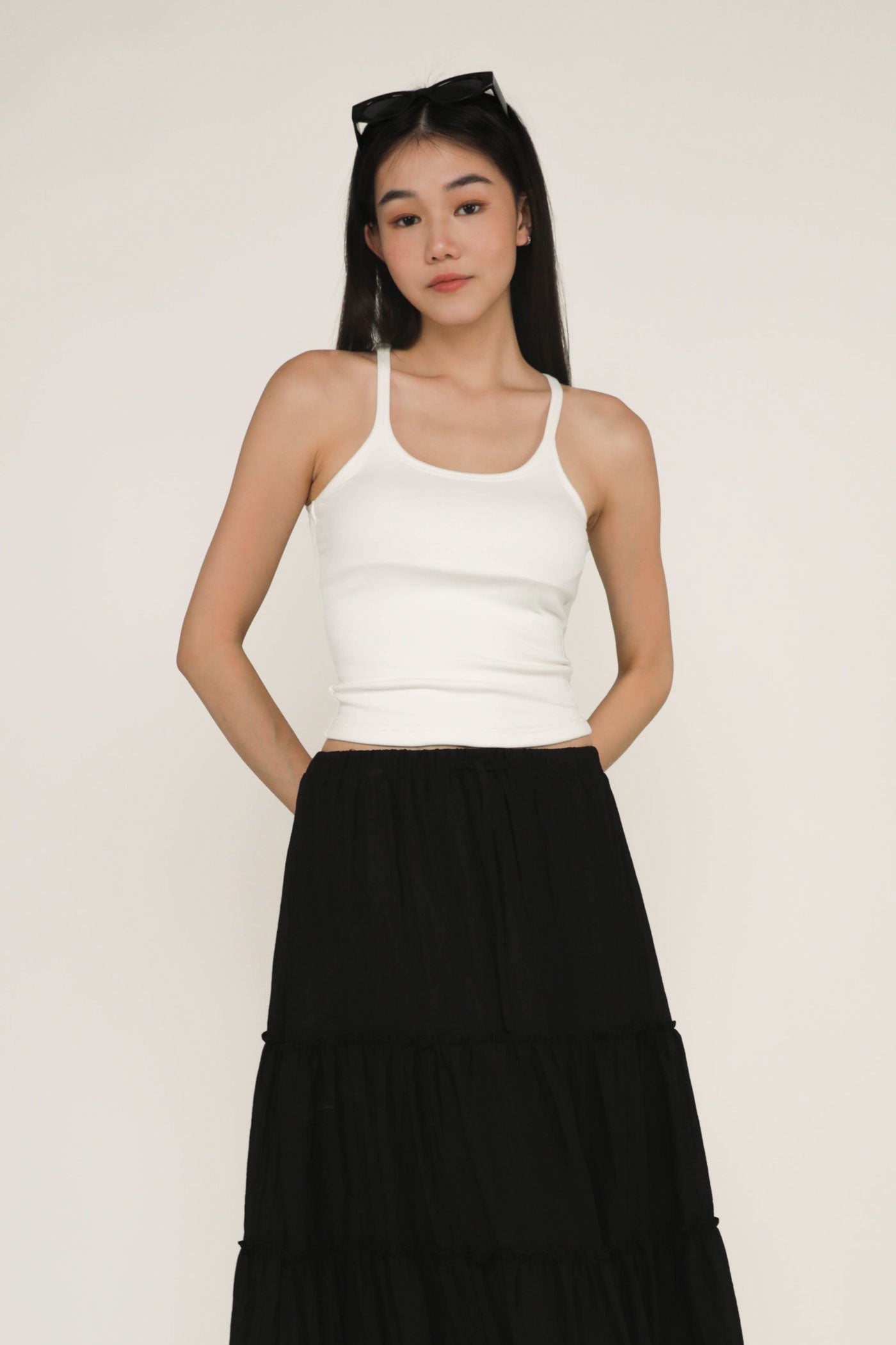 In a twirly mood with Aniya. Aniya Frills Tiered Skirt is a sweet spring skirt to add your everyday wardrobe. The skirt flaunts a flowy tiered silhouette with playful frilly textures. It is a classic piece that complements all your favourite tops. Minimal yet dreamy, find yourself reaching for Aniya to create endless chic ensembles.
