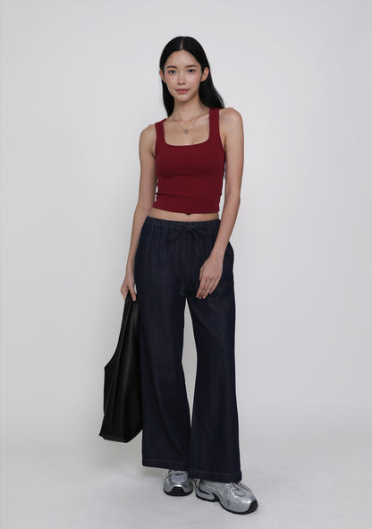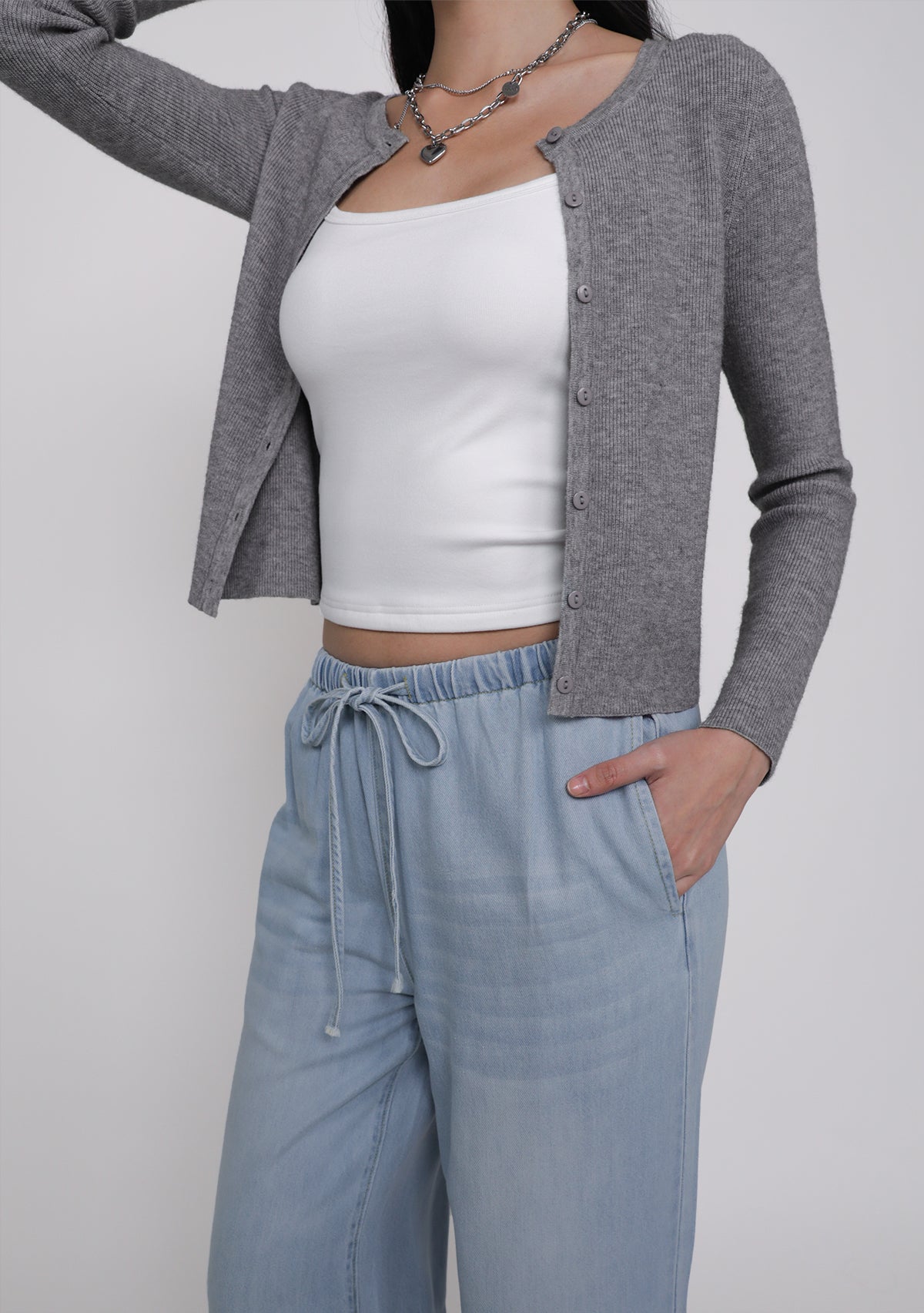 These pants are made of non-lined cotton denim for a light and breathable fit. They are complete with an elasticised waistband, a distressed details on the waistband (for Light Wash), drawstring details, and functional side pockets.