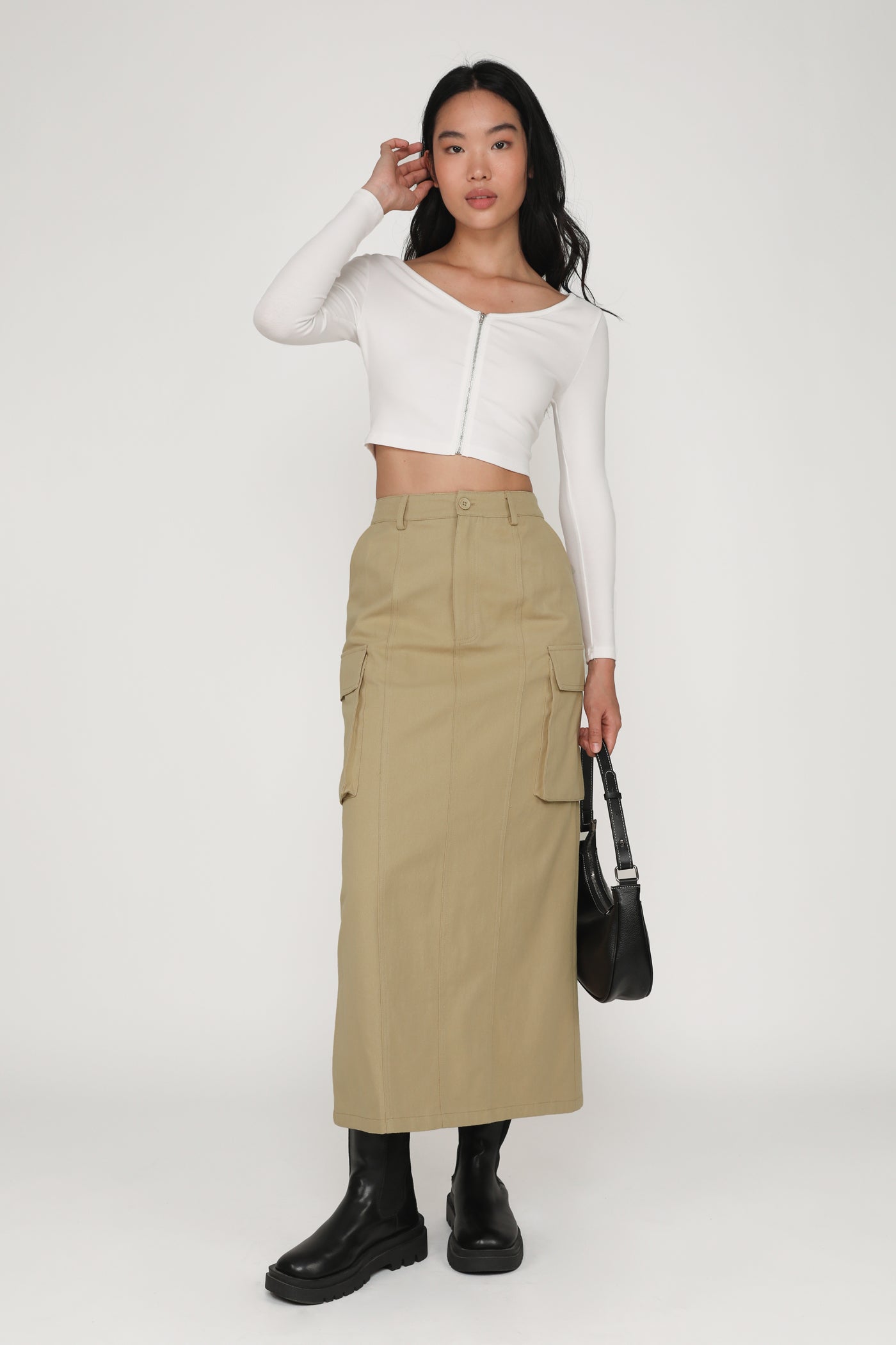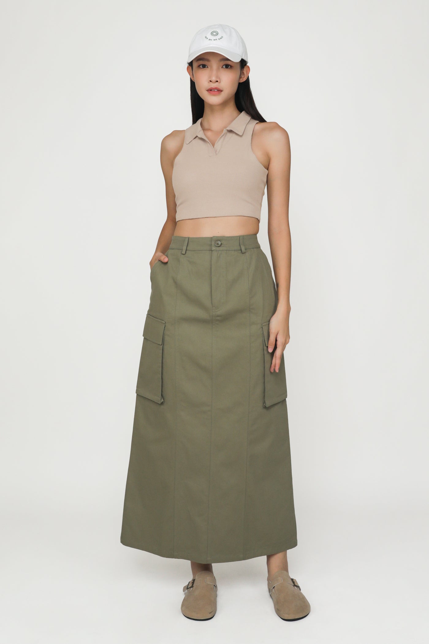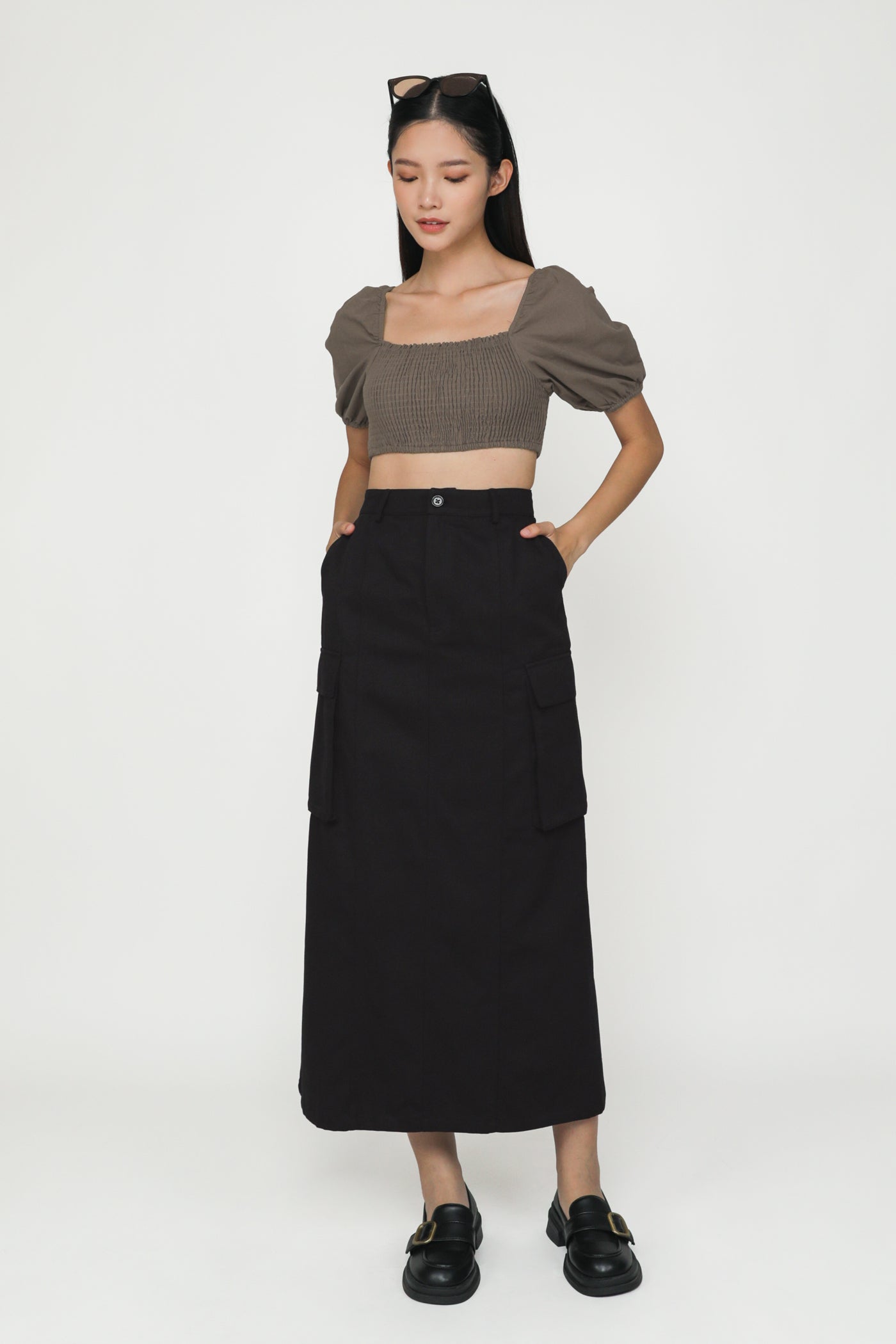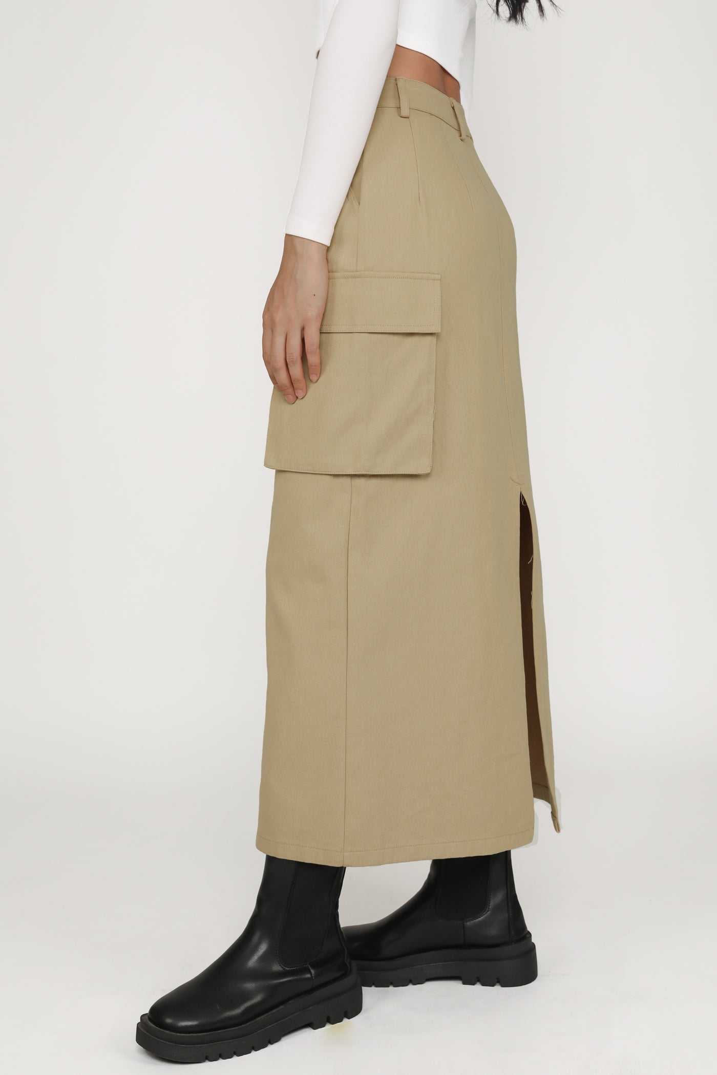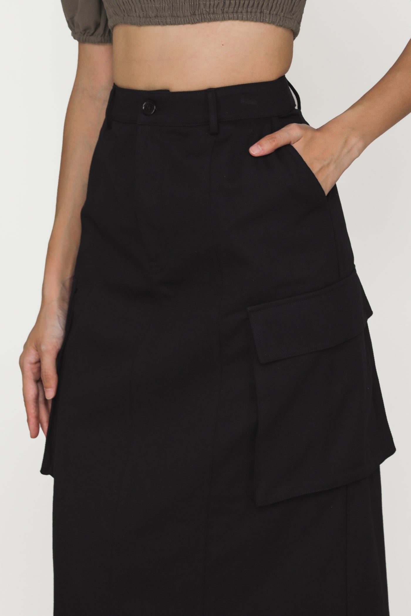 The Callas Cargo Skirt is calling your name! Give your outfits an edgy flair in an instant with Callas Cargo Skirt. This long skirt features utility chic pocket details and a flattering structure. It is a versatile piece to style with your favourite crop tops. Classic and cool, Callas Cargo Skirt is your go-to for an effortless outfit.