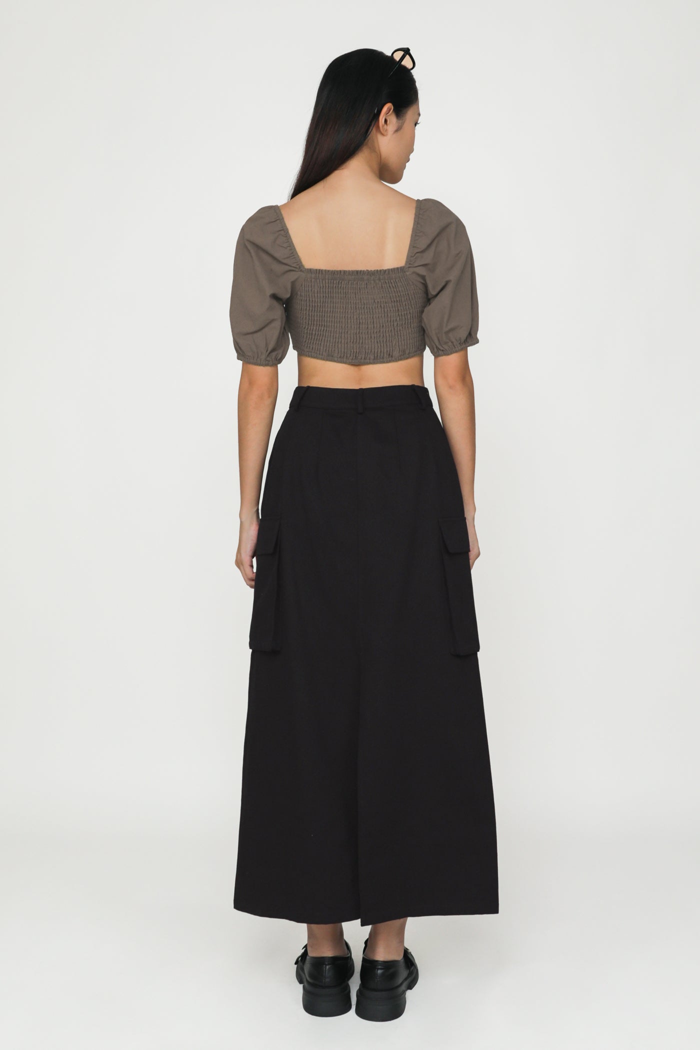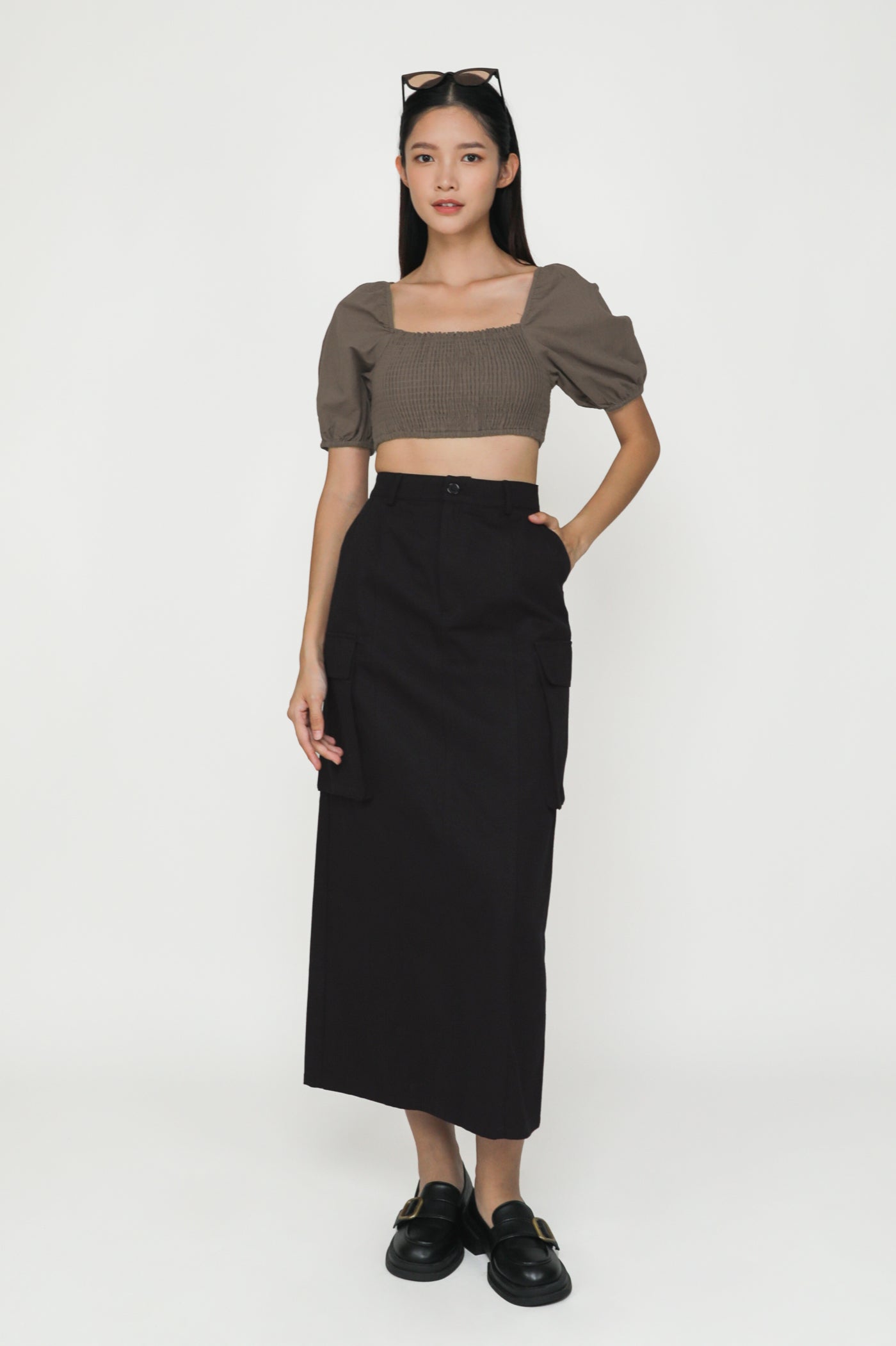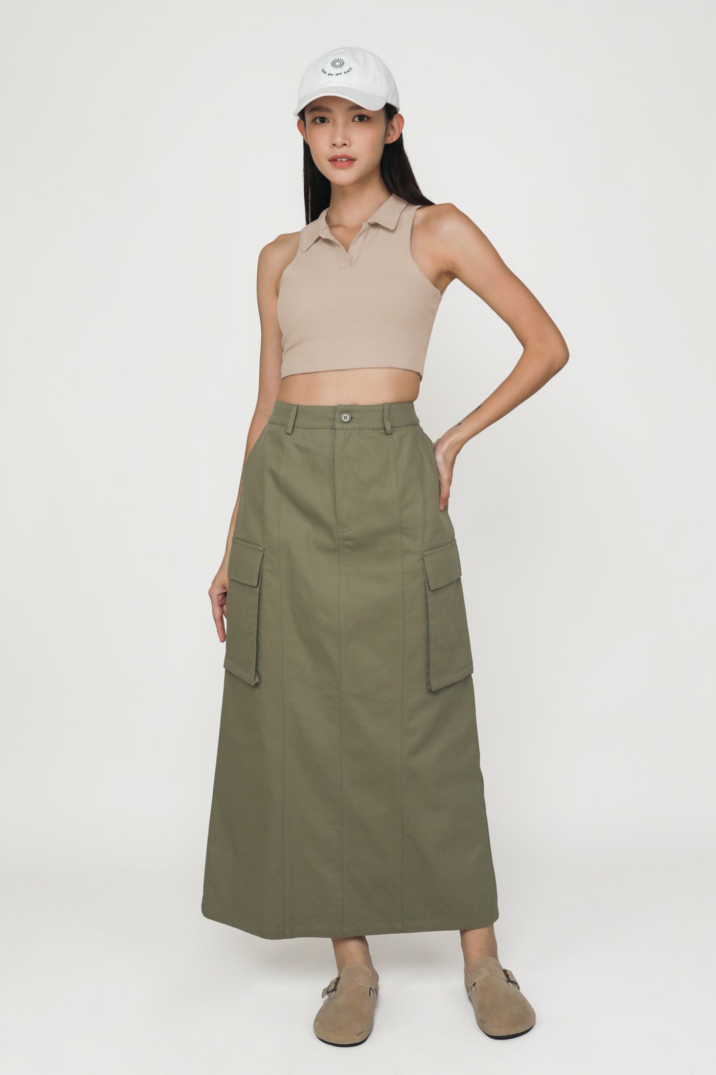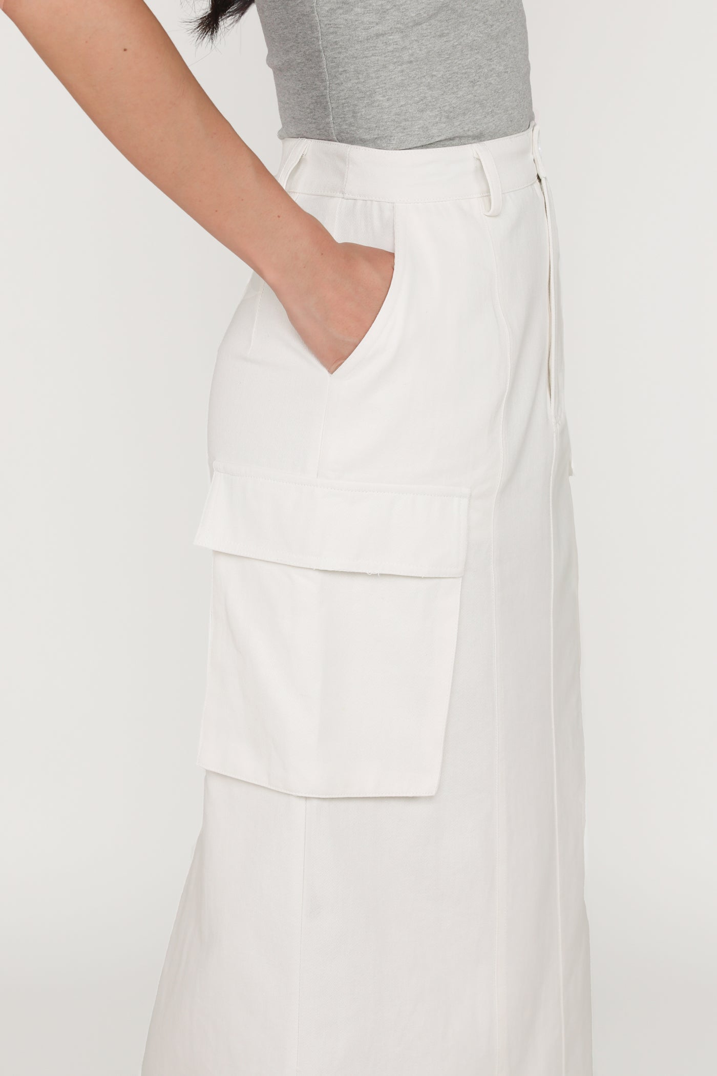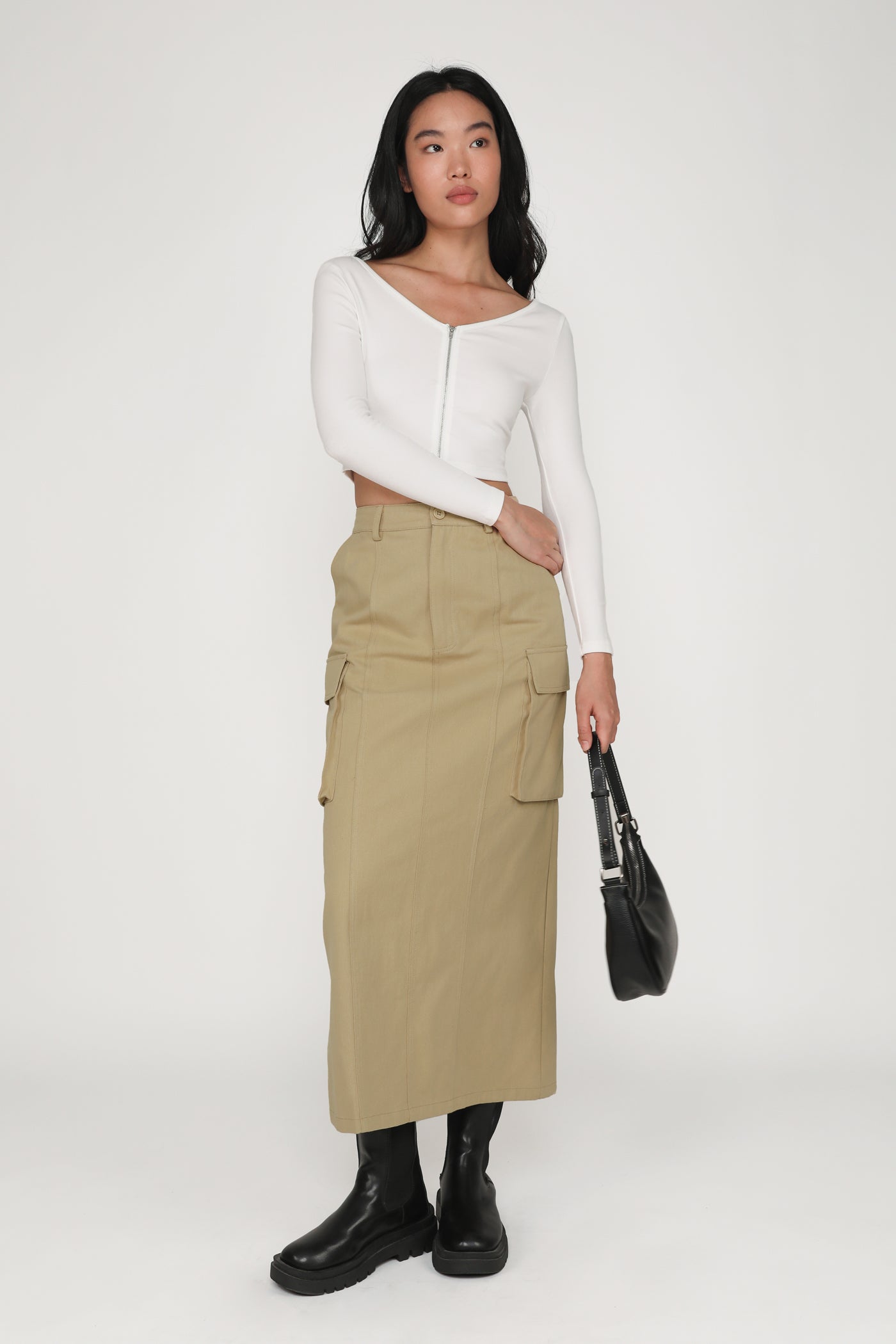 The Callas Cargo Skirt is calling your name! Give your outfits an edgy flair in an instant with Callas Cargo Skirt. This long skirt features utility chic pocket details and a flattering structure. It is a versatile piece to style with your favourite crop tops. Classic and cool, Callas Cargo Skirt is your go-to for an effortless outfit.