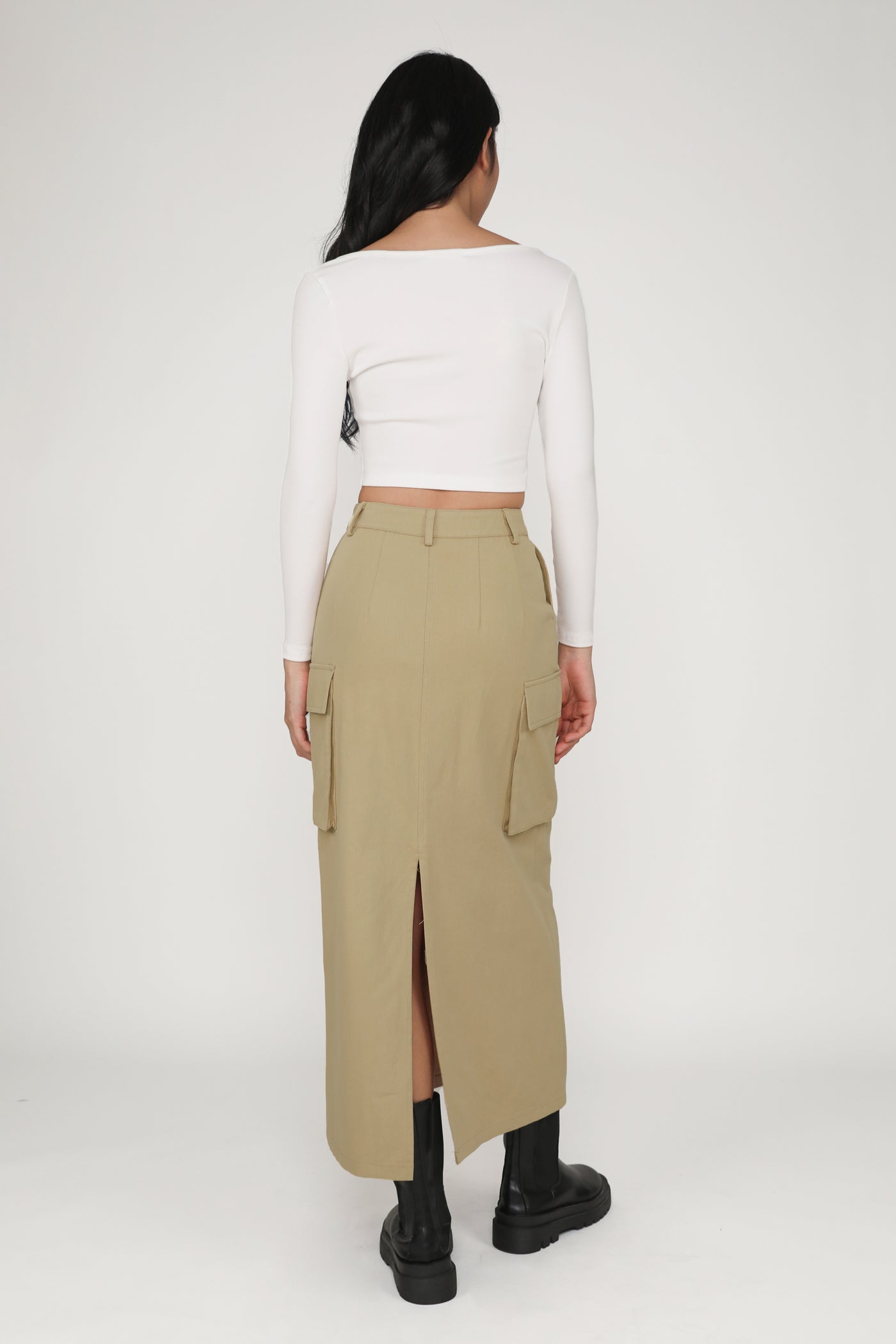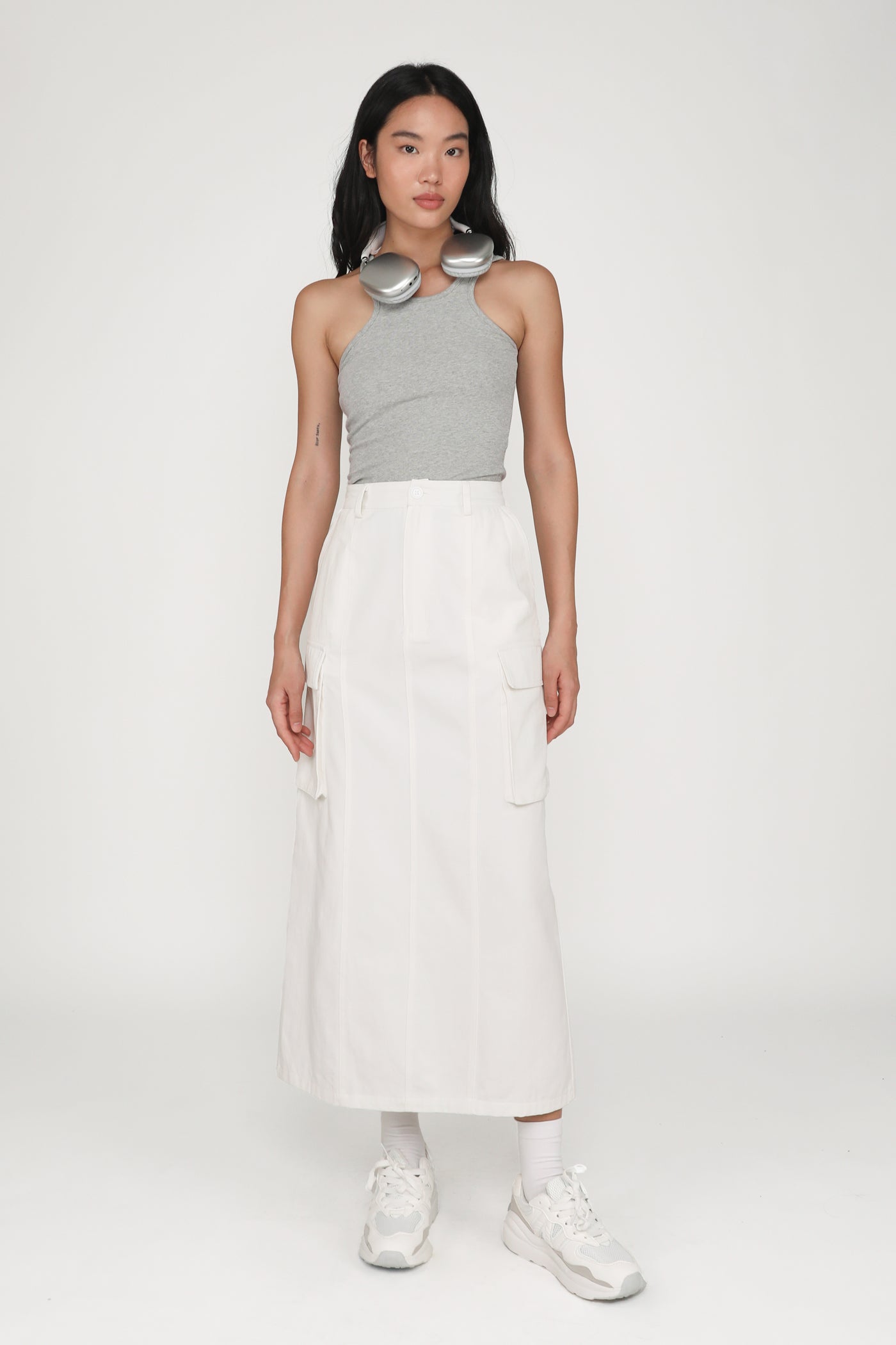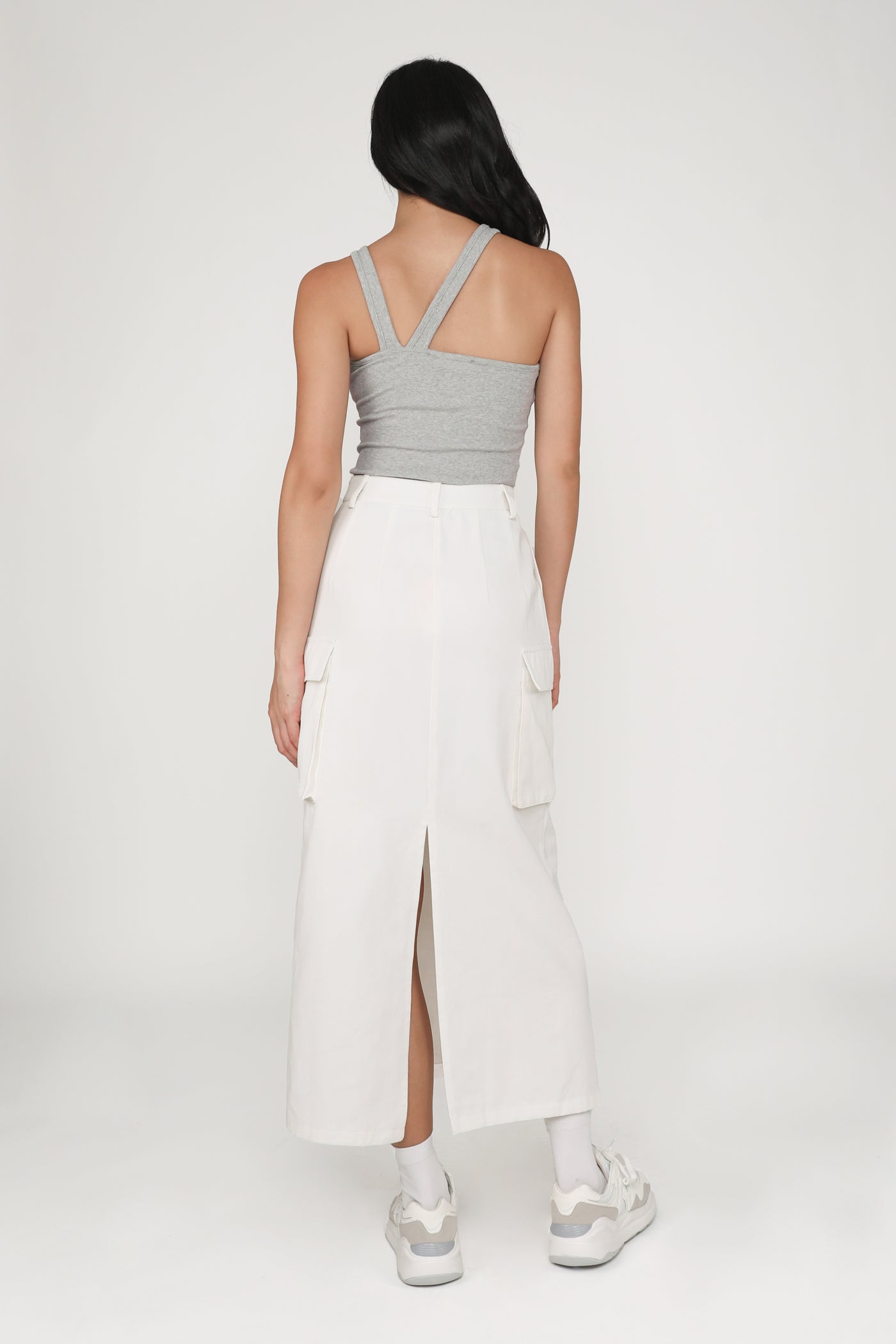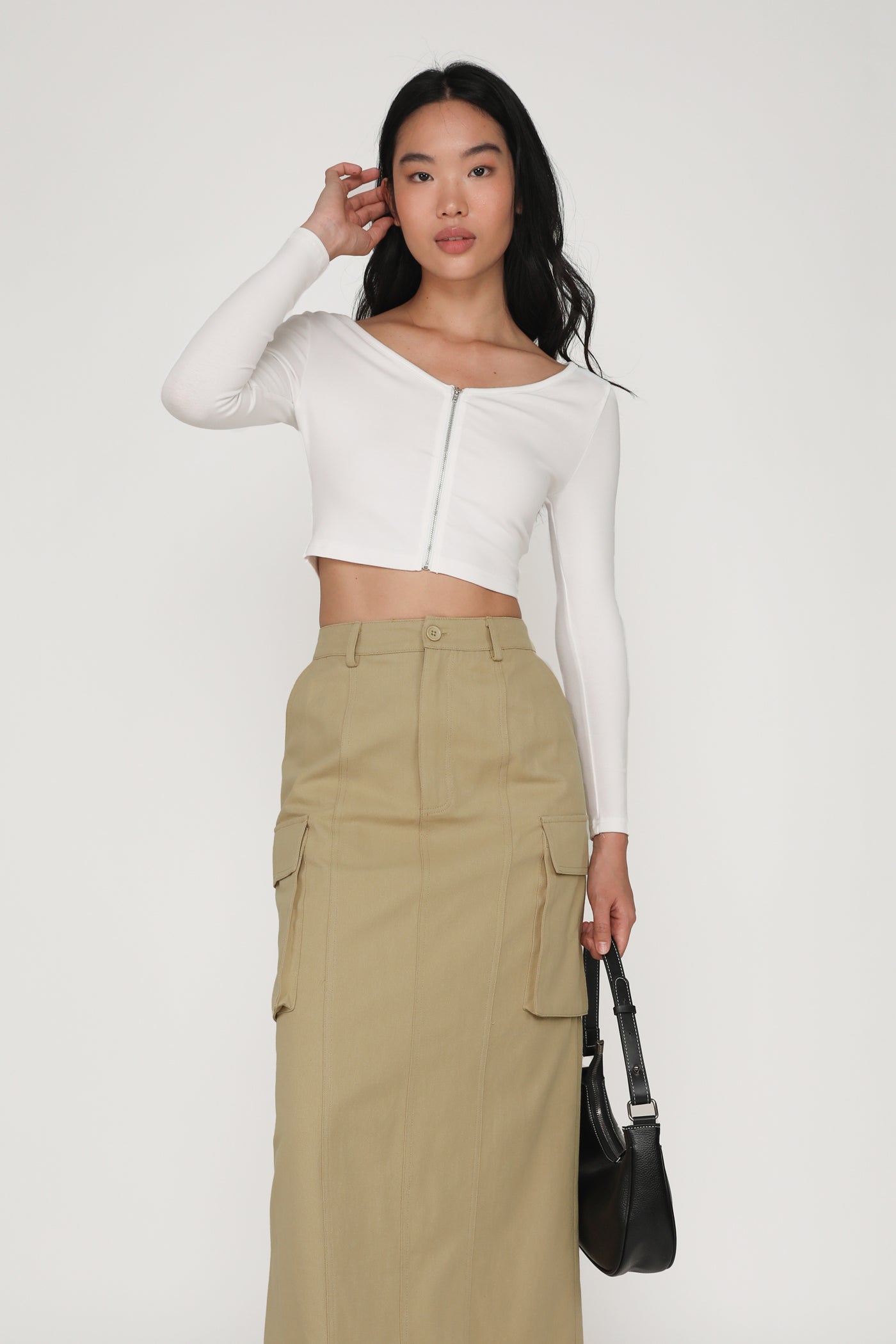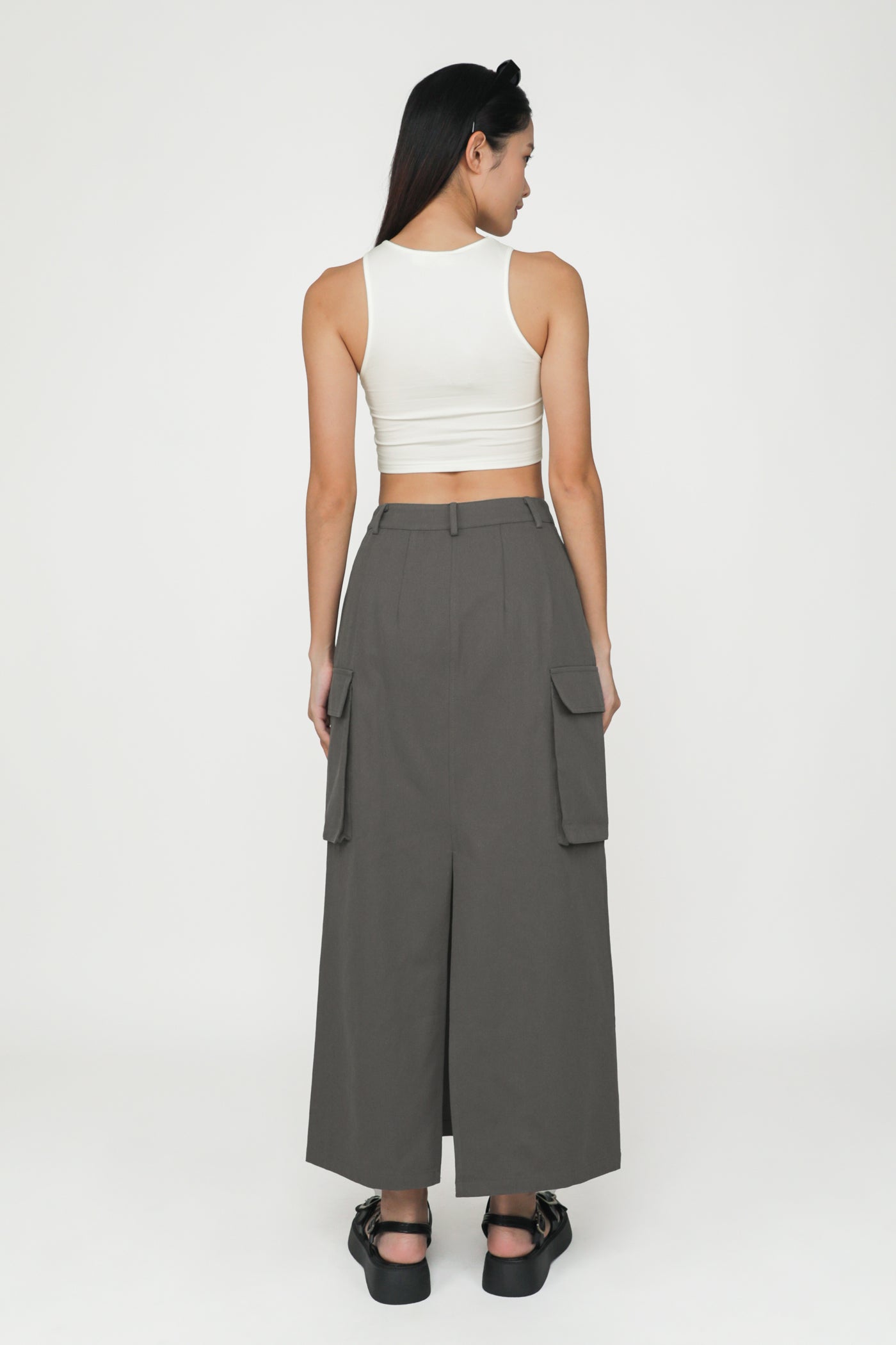 The Callas Cargo Skirt is calling your name! Give your outfits an edgy flair in an instant with Callas Cargo Skirt. This long skirt features utility chic pocket details and a flattering structure. It is a versatile piece to style with your favourite crop tops. Classic and cool, Callas Cargo Skirt is your go-to for an effortless outfit.