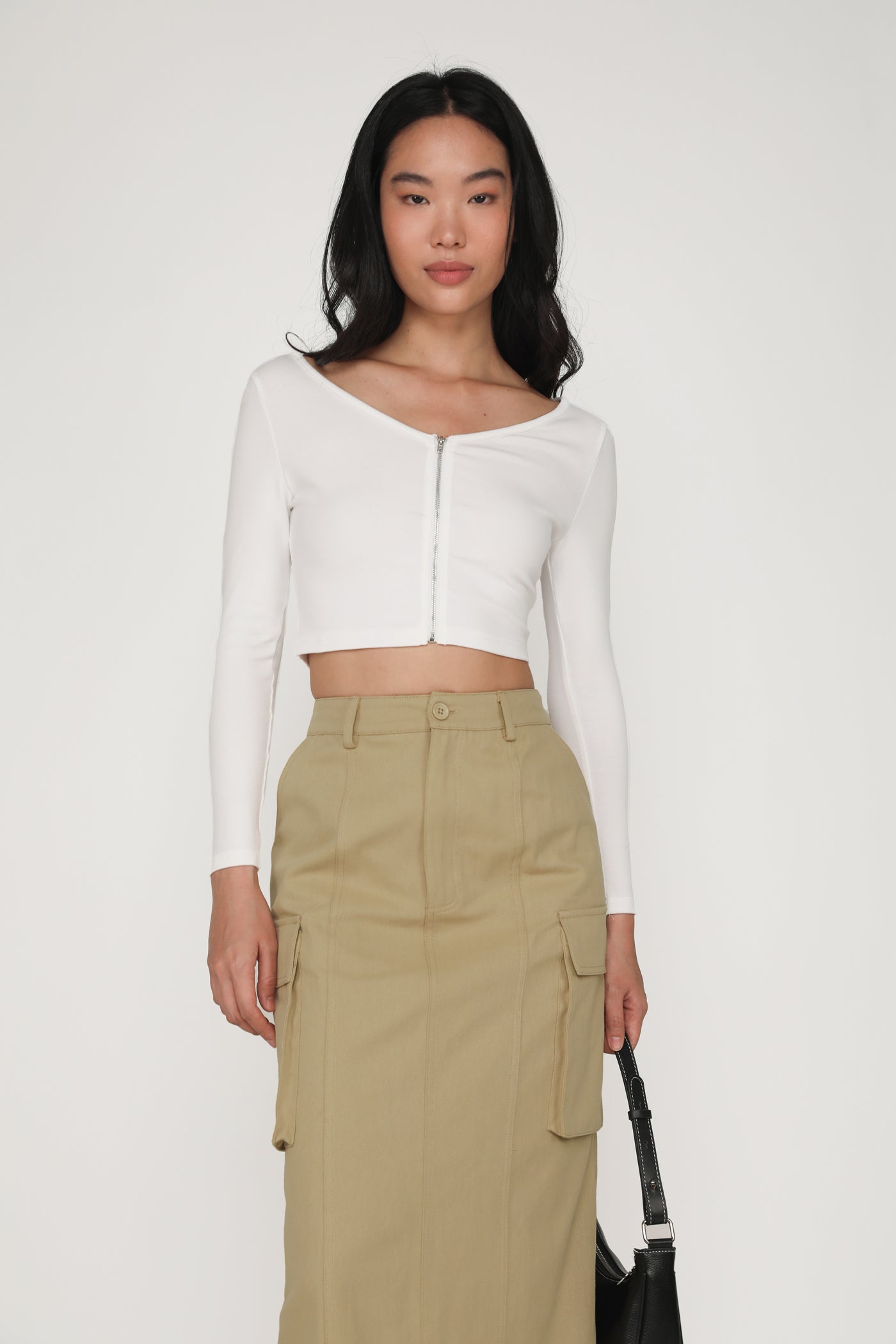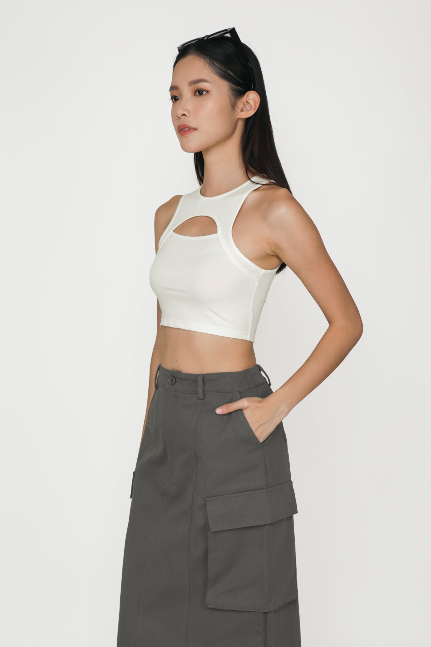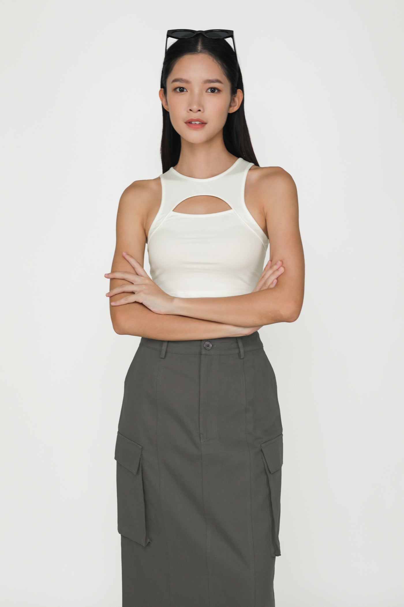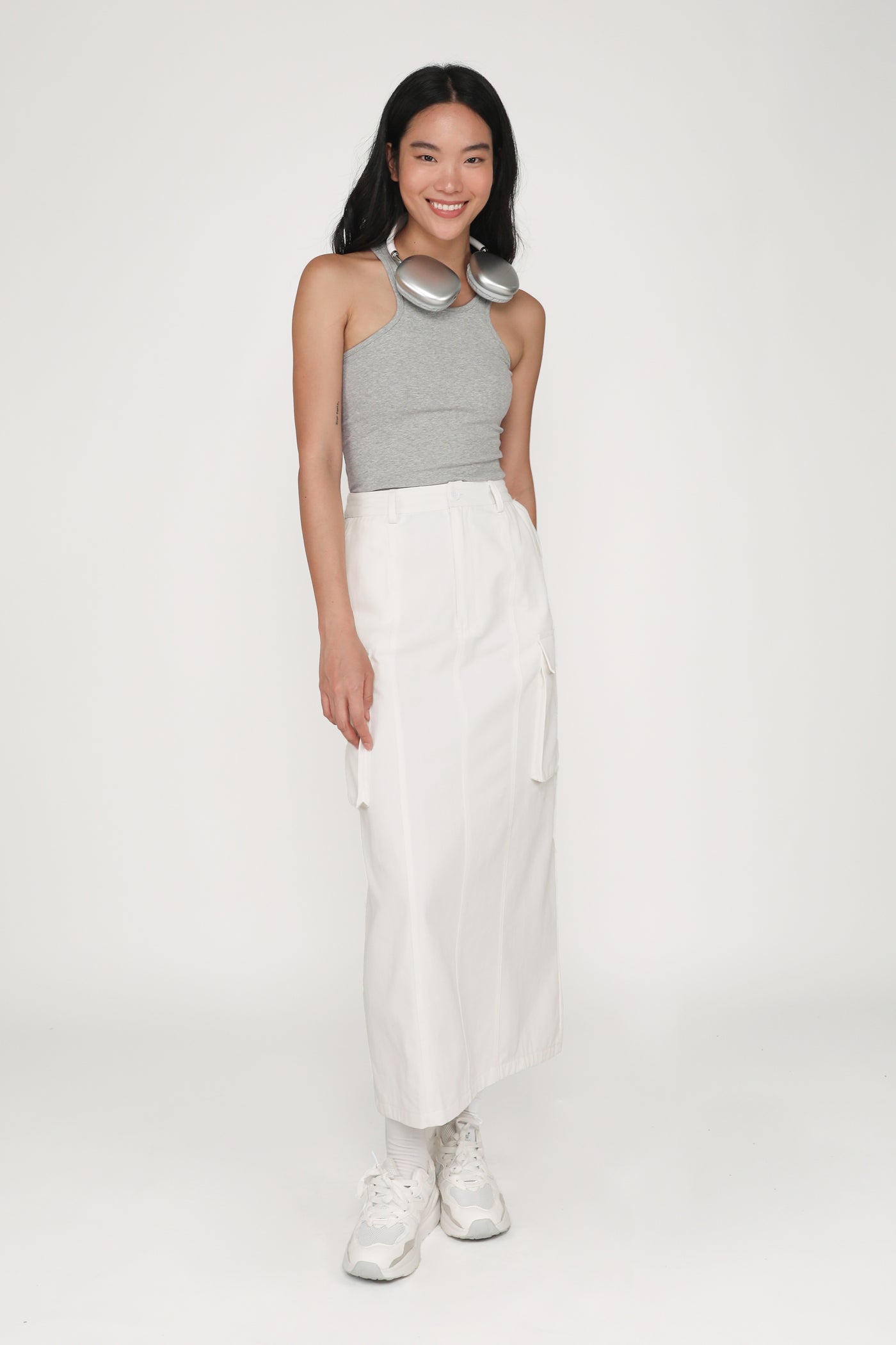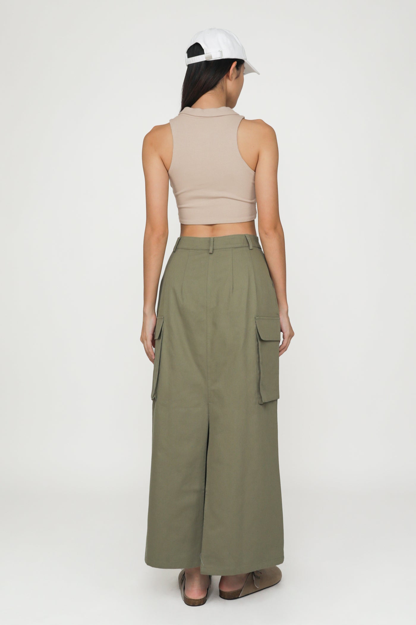 The Callas Cargo Skirt is calling your name! Give your outfits an edgy flair in an instant with Callas Cargo Skirt. This long skirt features utility chic pocket details and a flattering structure. It is a versatile piece to style with your favourite crop tops. Classic and cool, Callas Cargo Skirt is your go-to for an effortless outfit.