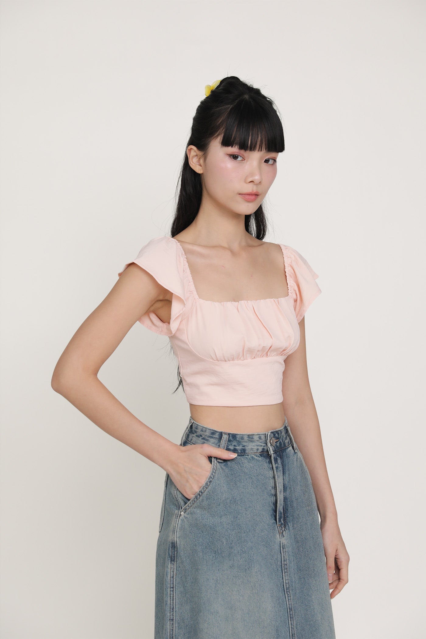 Chelsey Flutter Sleeve Crop Top