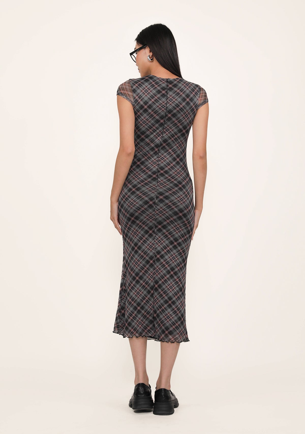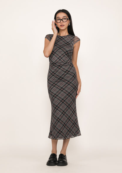 Cherie Mesh Maxi Padded Dress (Plaid)