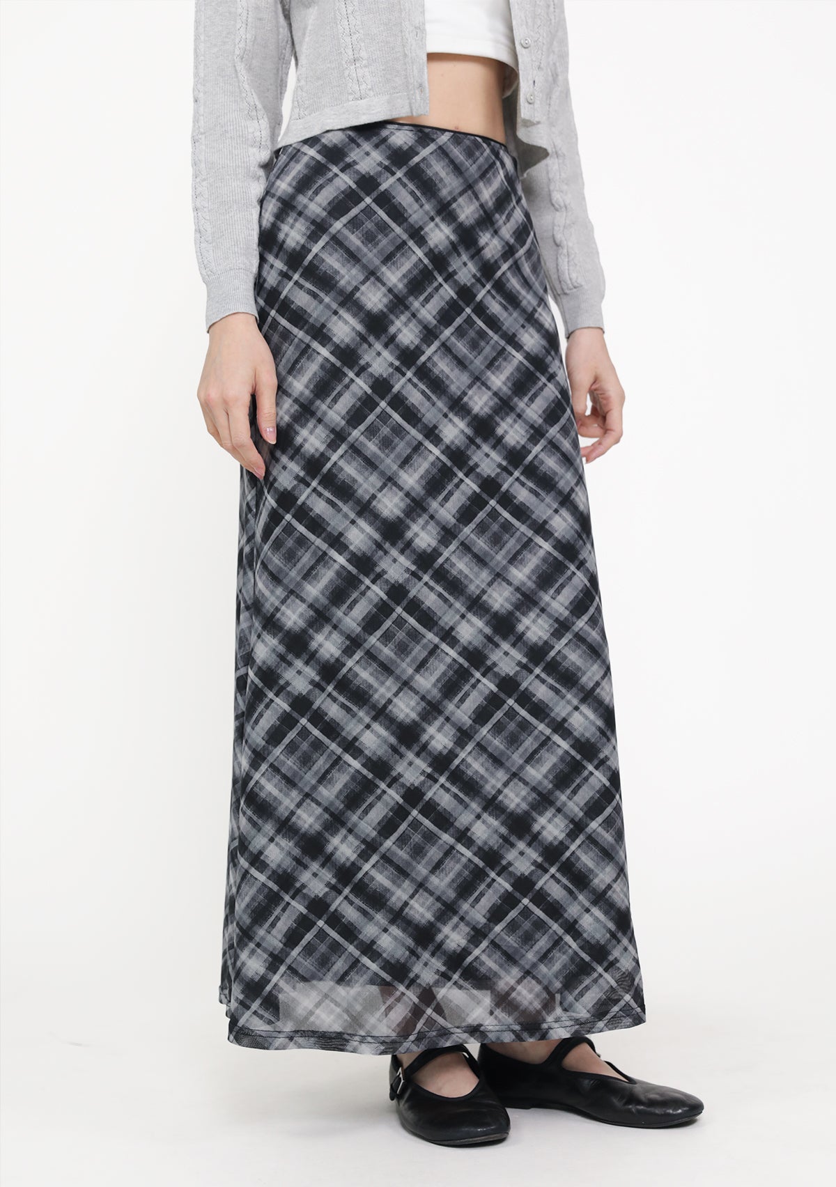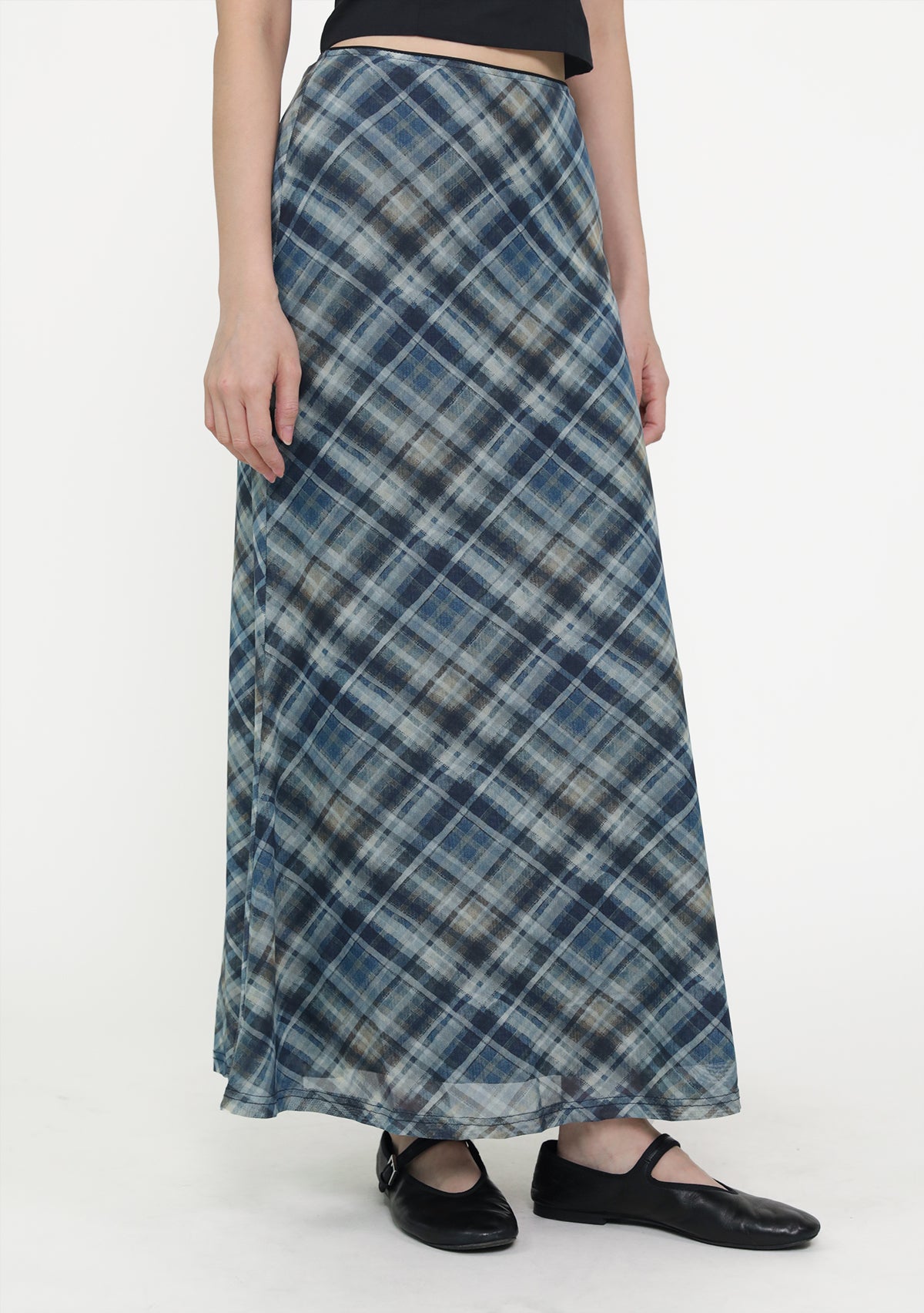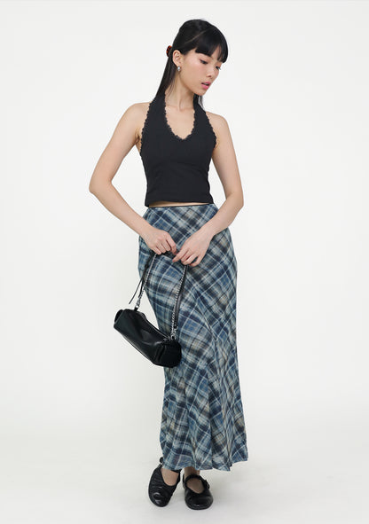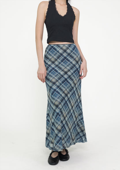 Colette Bias Cut Maxi Skirt (Plaid)