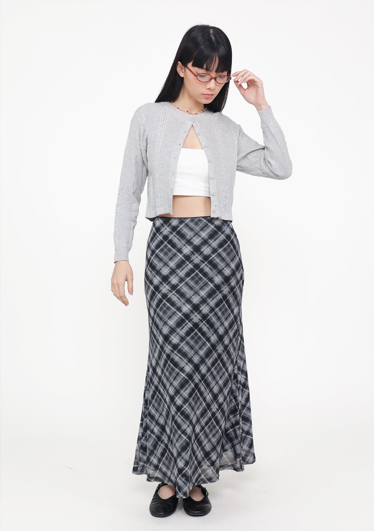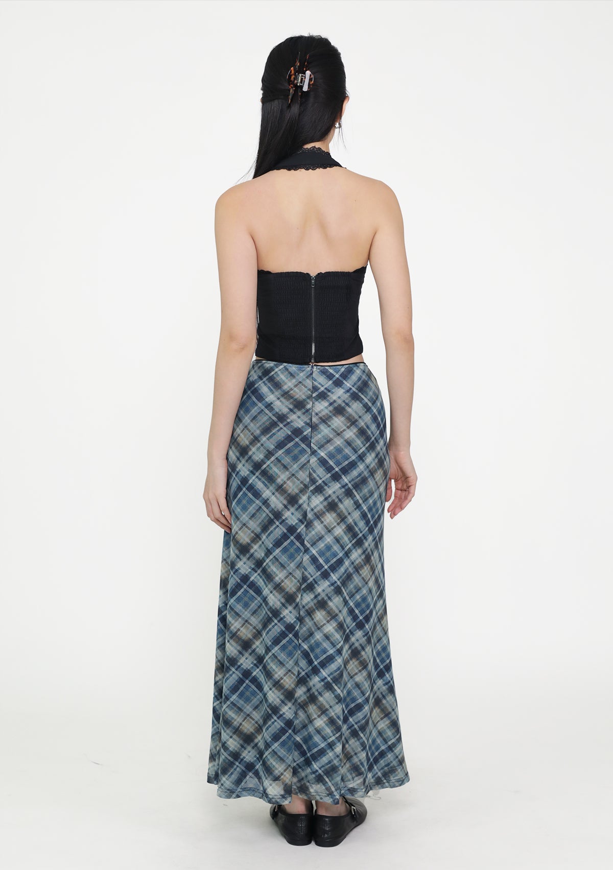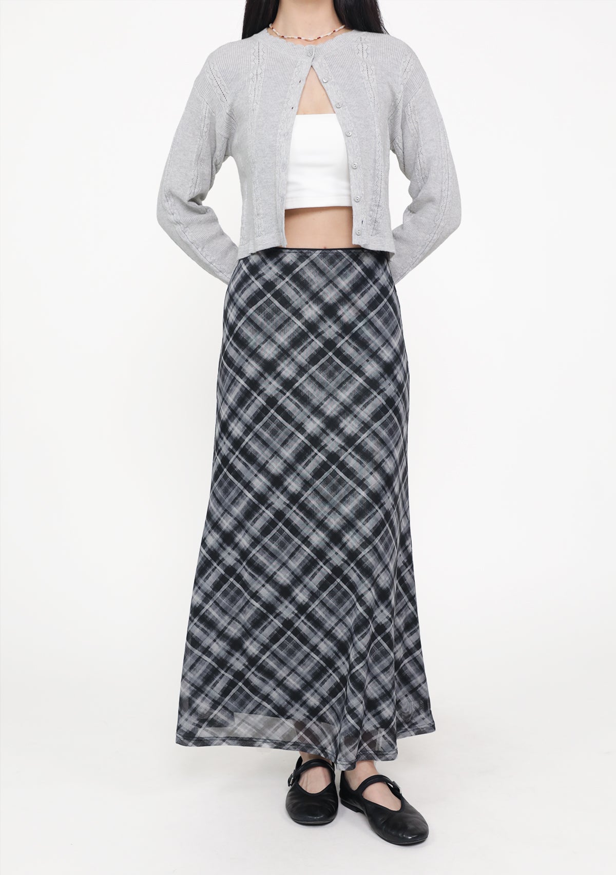 Colette Bias Cut Maxi Skirt (Plaid)