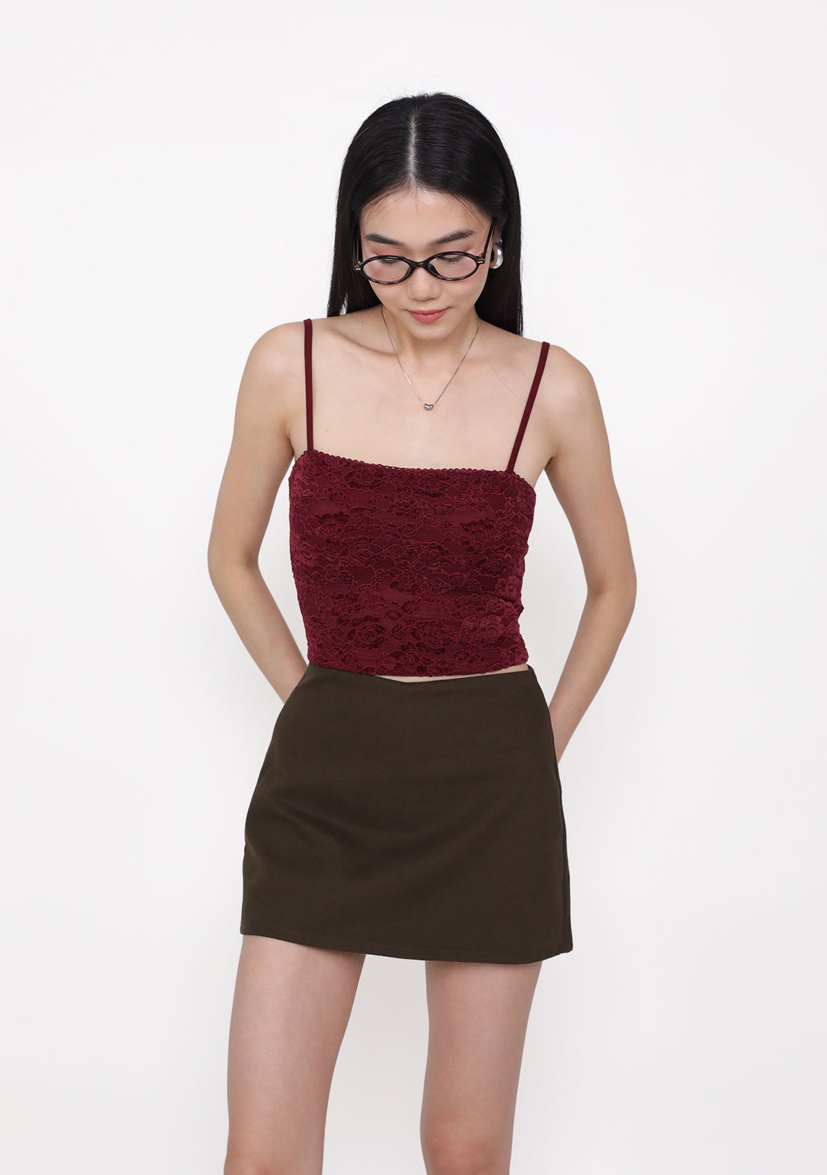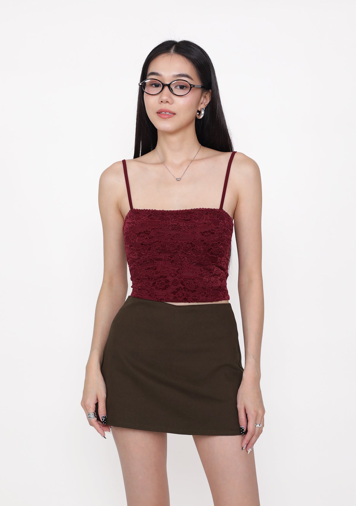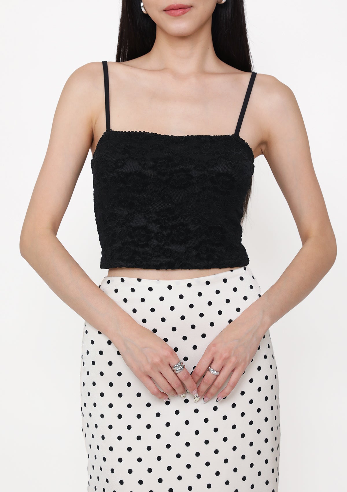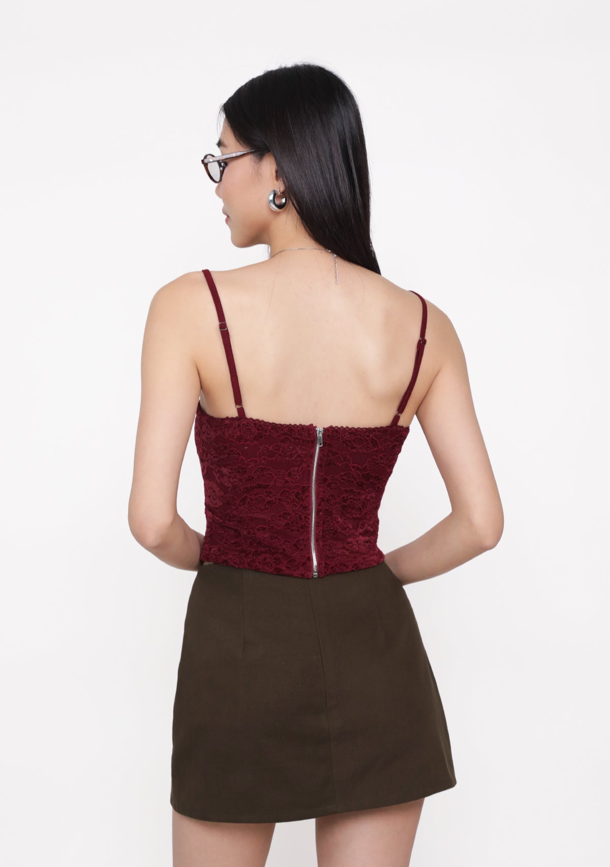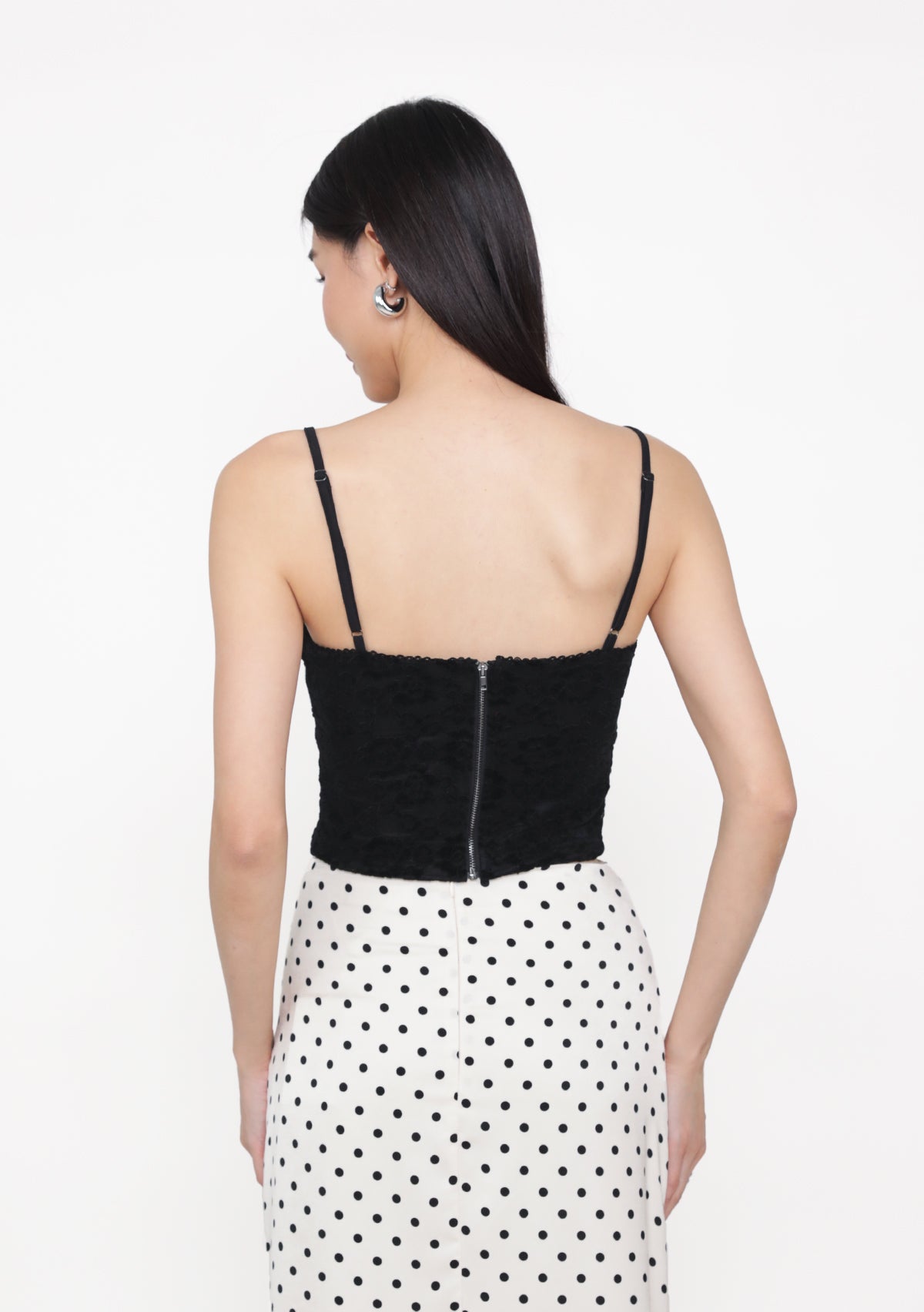 Dana Lace Padded Top is a lace top featuring removable paddings, adjustable straps, and an exposed back zip for a structured, feminine fit.