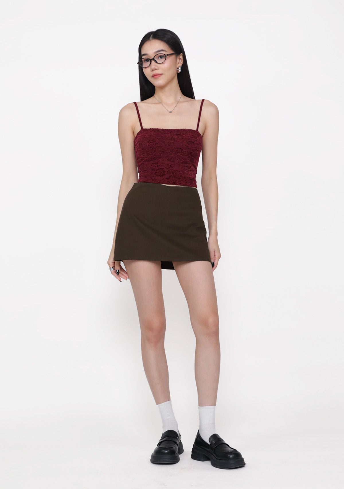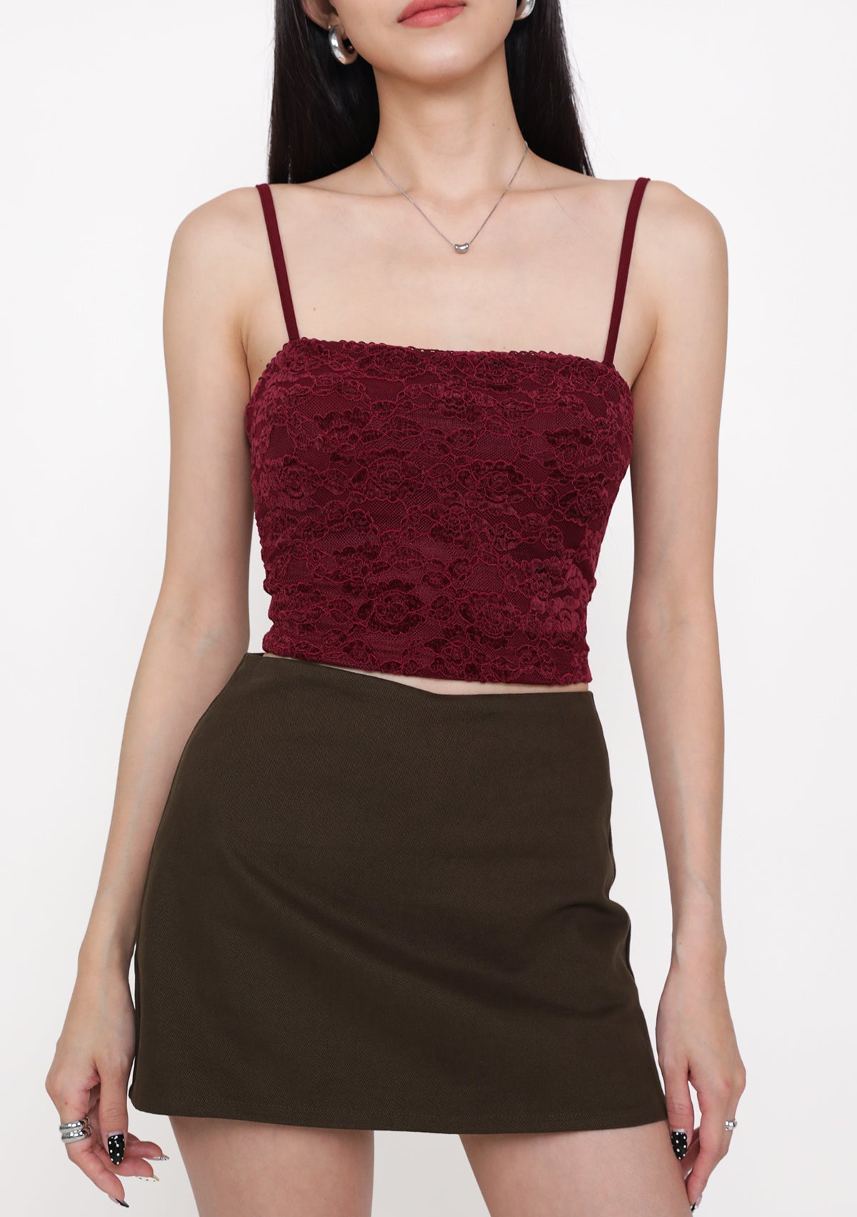 This top is made of lace material, inner lined, complete with removable paddings, adjustable straps, and a functional exposed back zip.