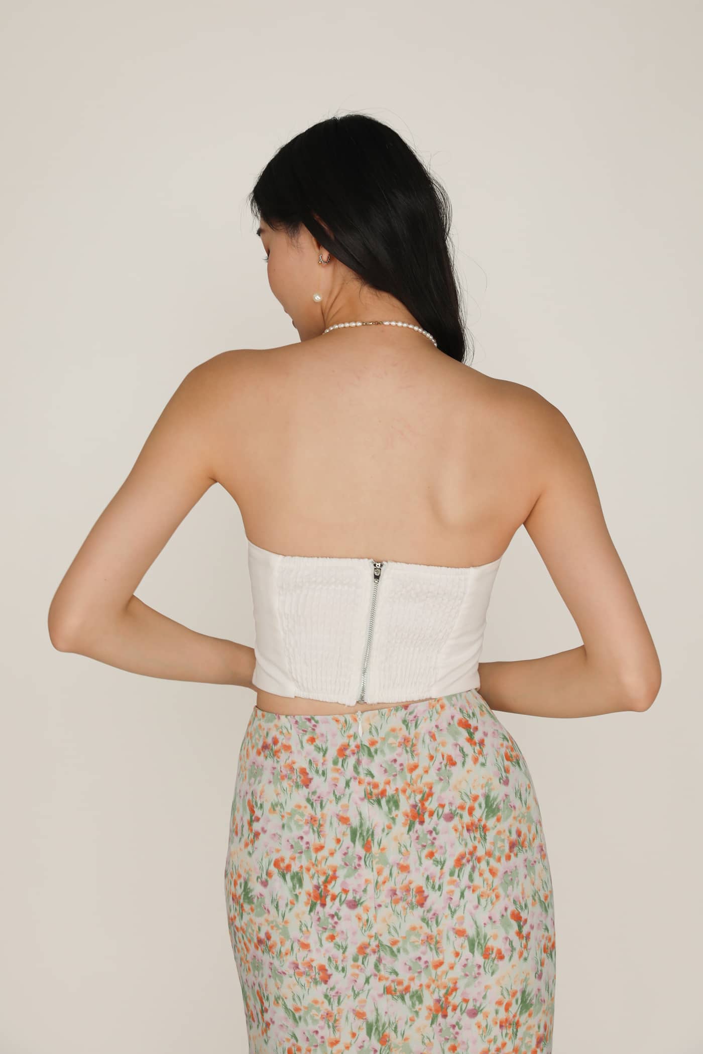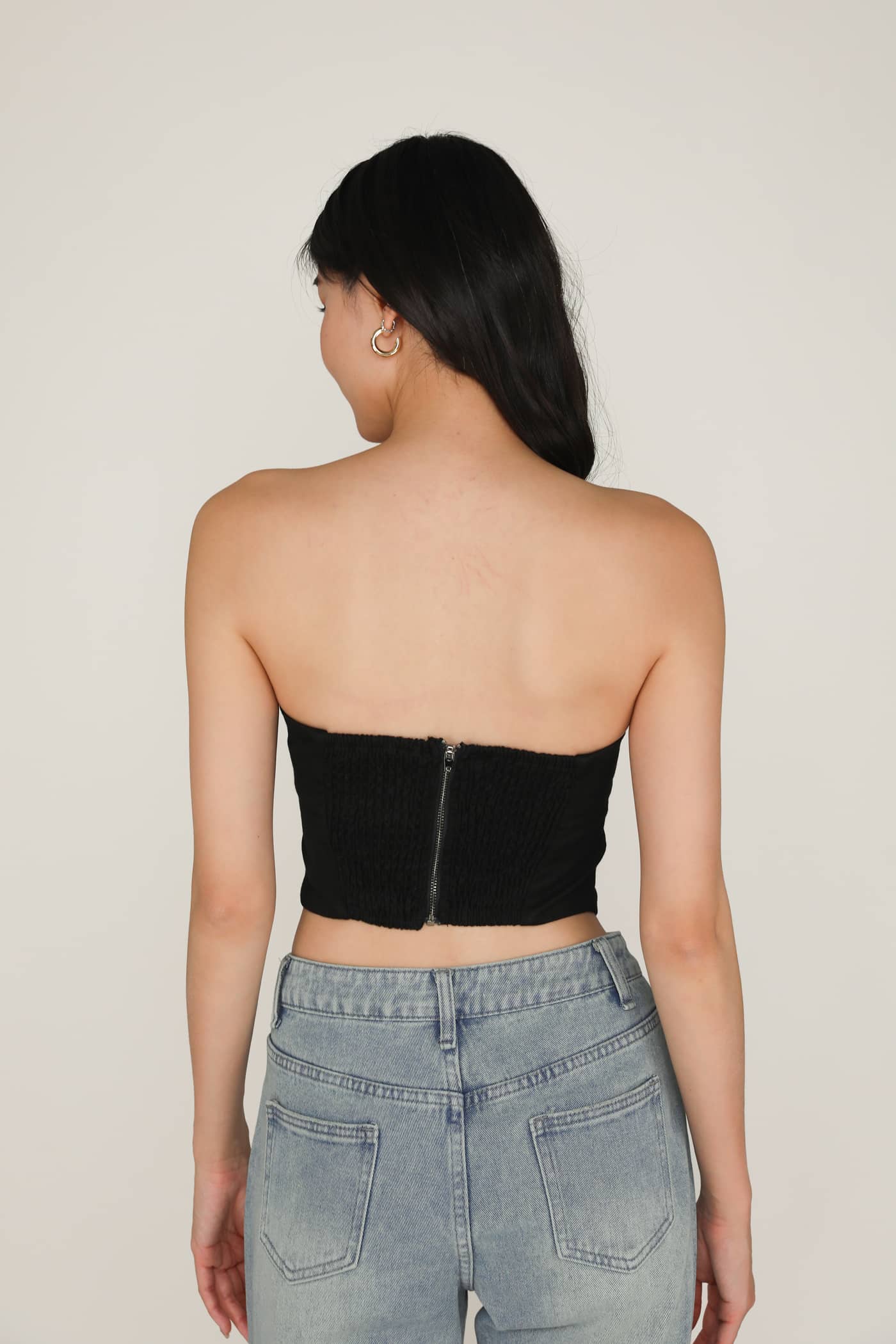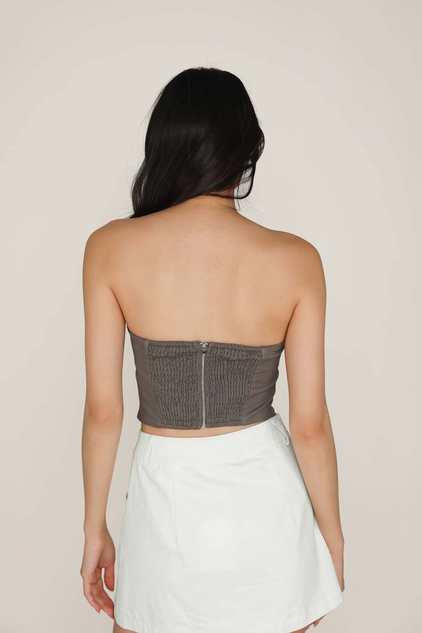 This top is made of non lined cotton polyester spandex for a comfortable and breathable fit. It is complete with non-removable paddings, an exposed back zip, and ruched details at the back.