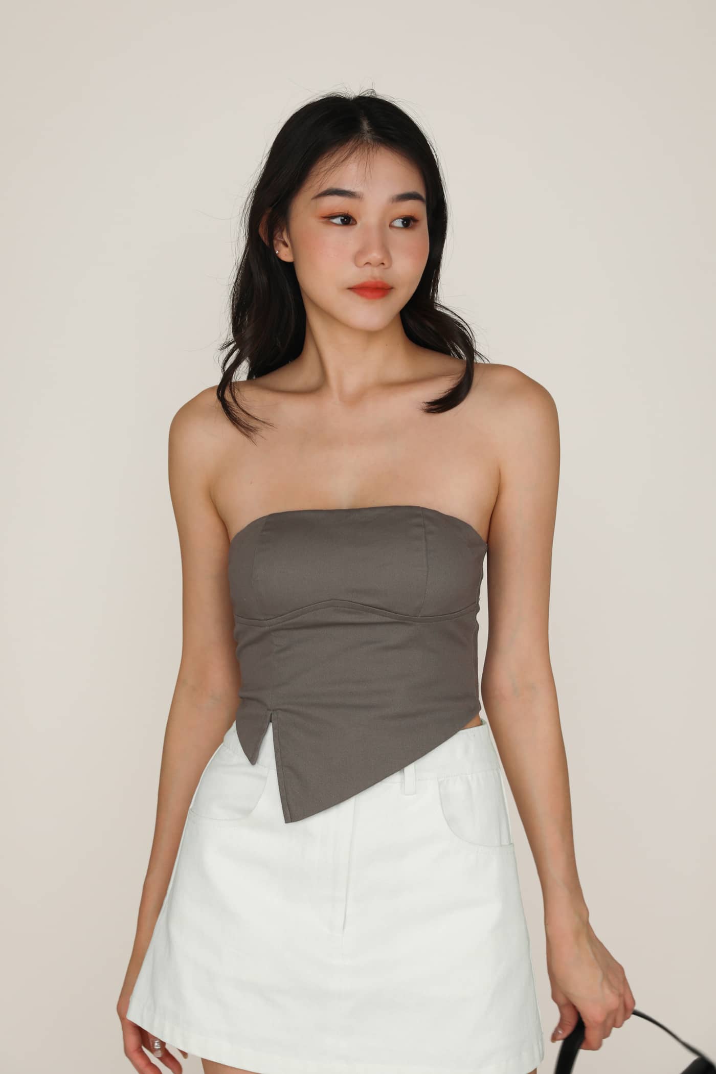 Devyn is the go-to summer basic you'll keep on rotation. Devyn Asymmetrical Padded Tube Top features a minimalistic design focused on its unique asymmetrical silhouette and sleek neckline. This breezy top is a versatile and timeless piece to style for casual and smart occasions. Let your personal style shine and give your outfits an elegant charm with Devyn.