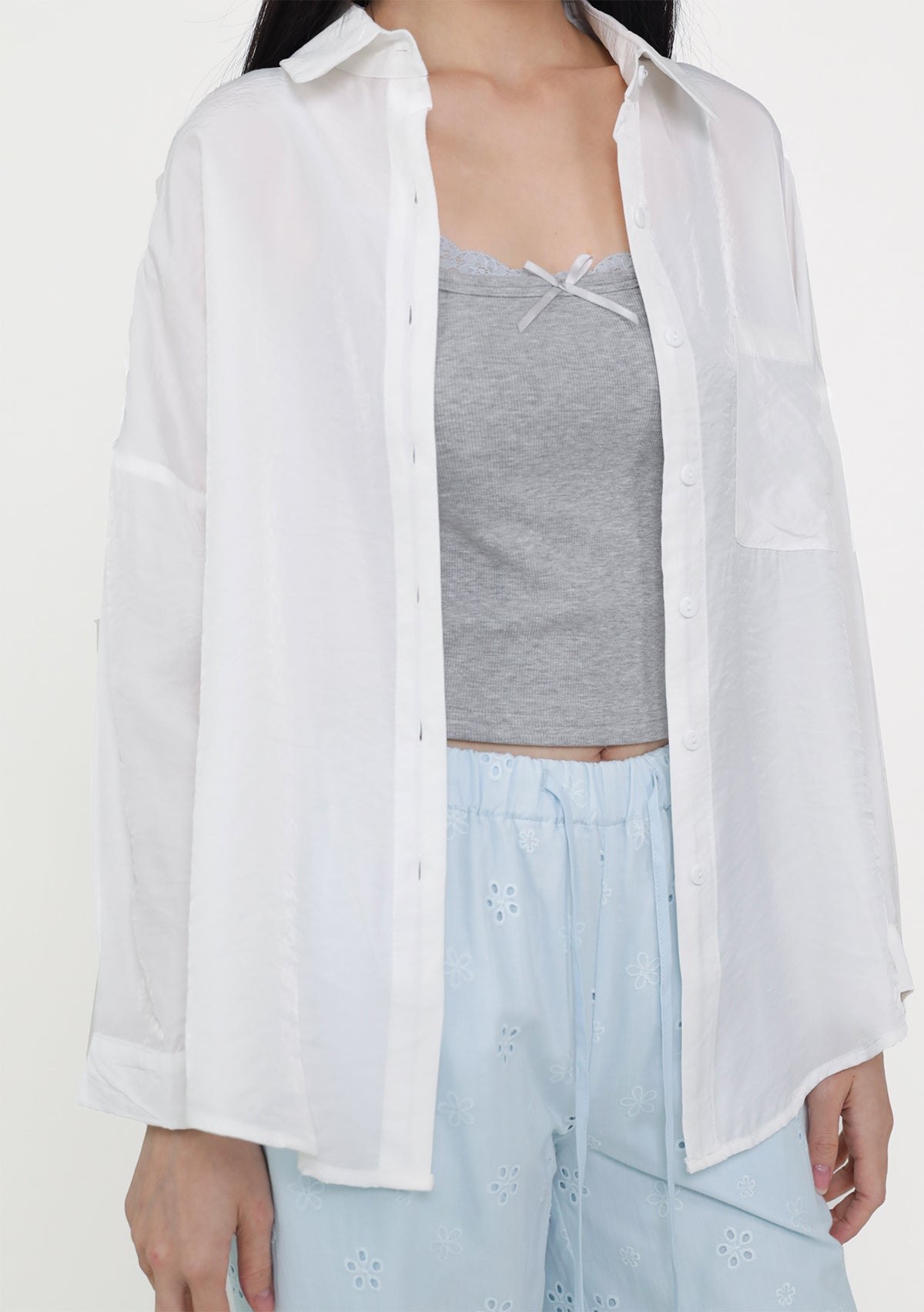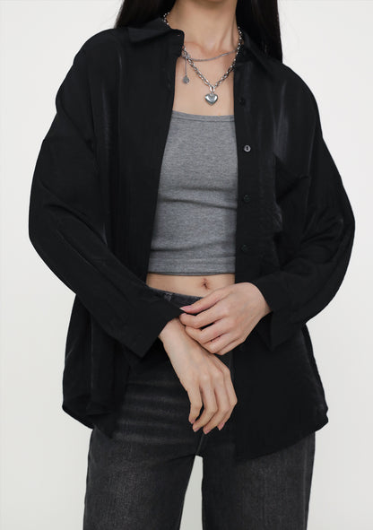Designed with an oversized silhouette for that effortlessly relaxed look, this shirt drapes softly for all-day comfort. Its lightweight fabric and button-down design make it endlessly versatile—wear it on its own or layer it your way.