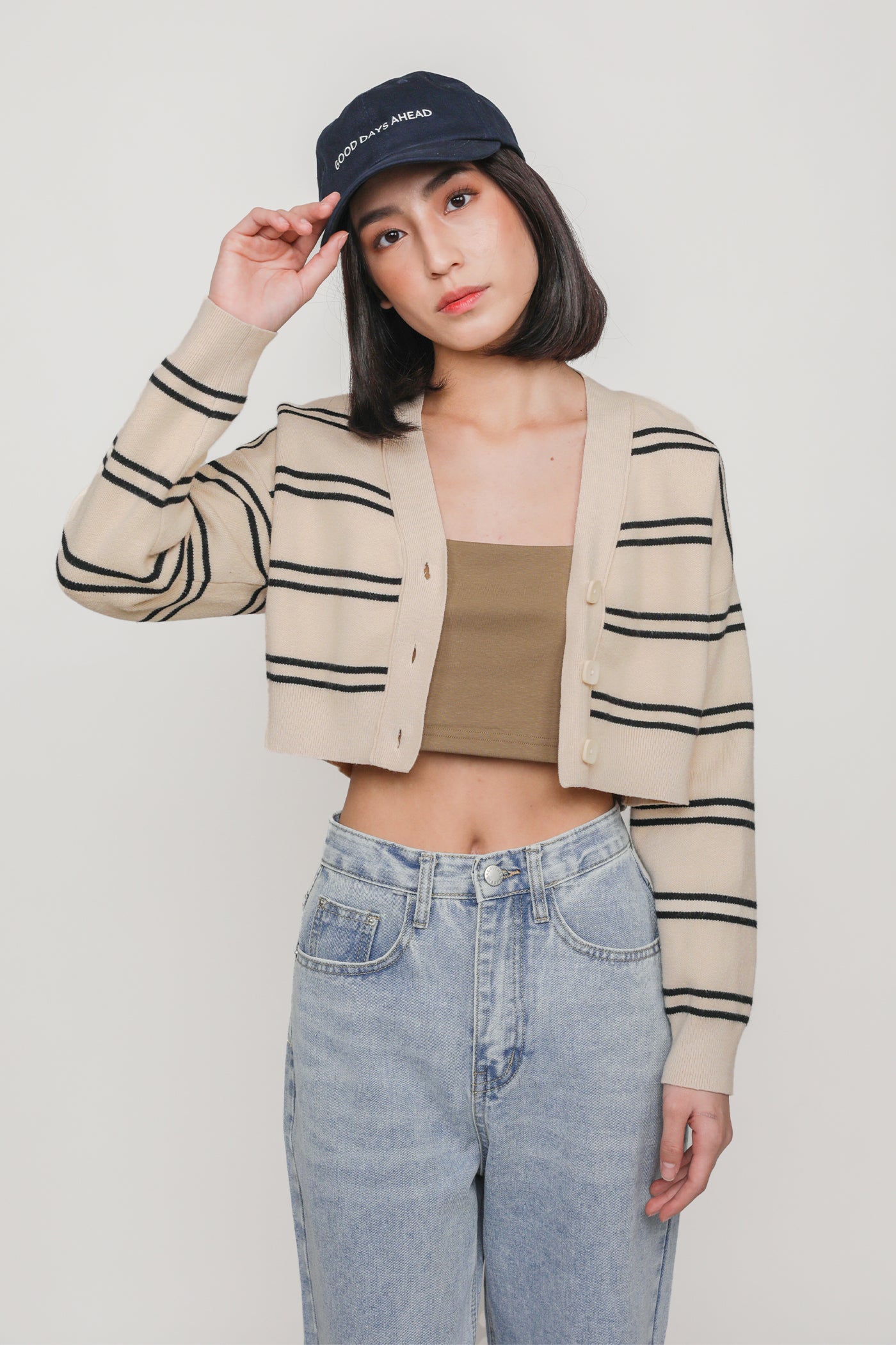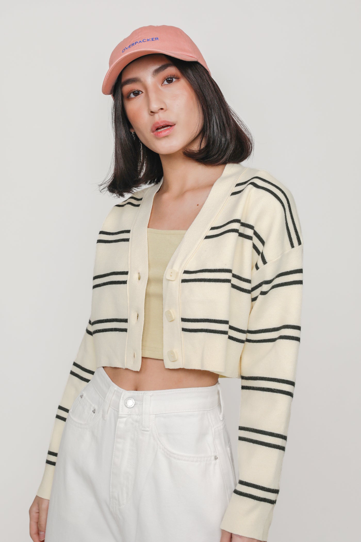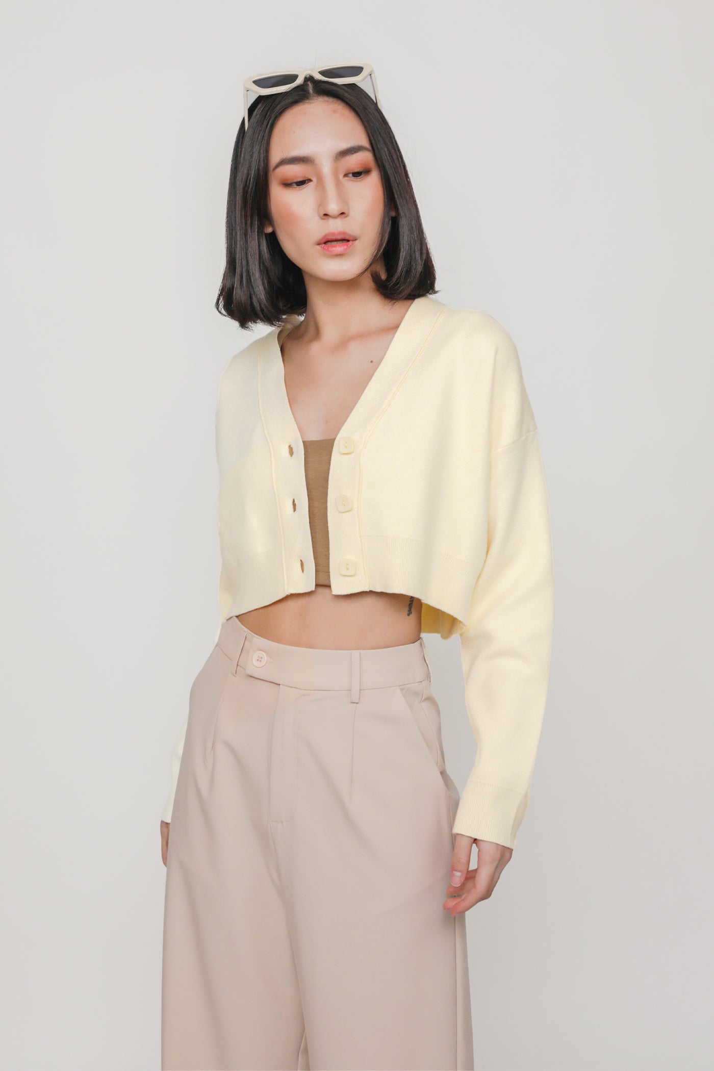 The cardigan is made from a soft acrylic cotton blend and comes with functional buttons.