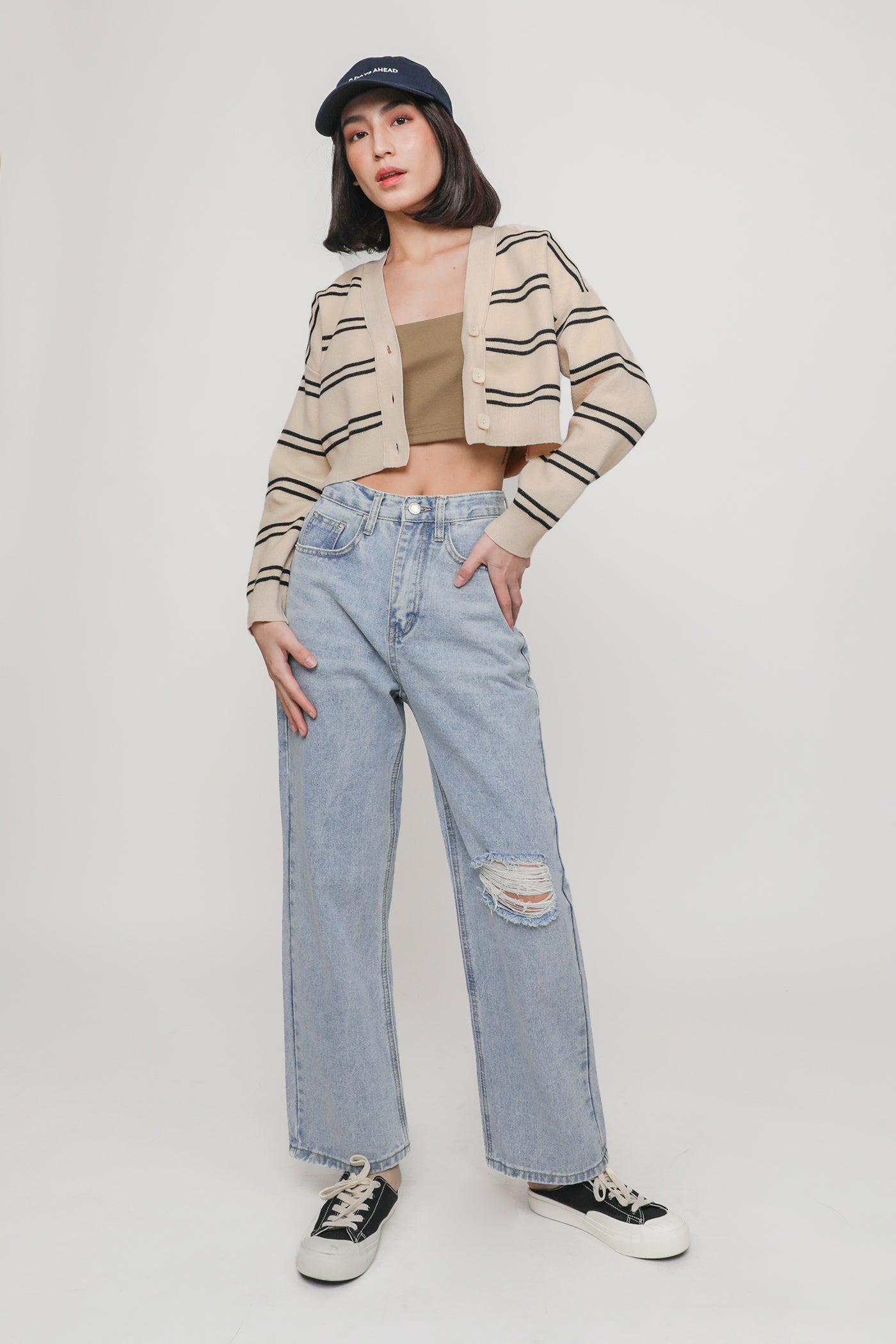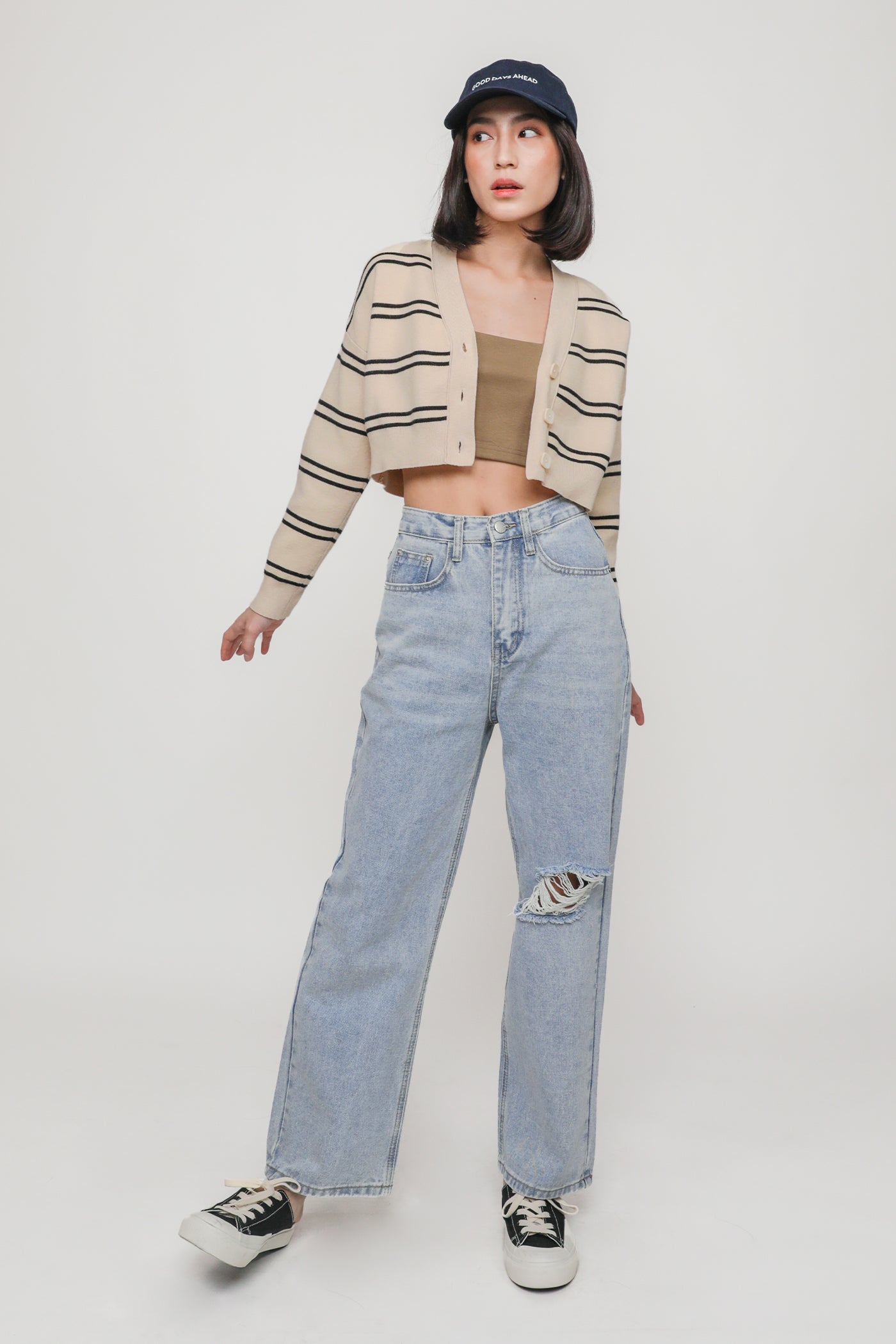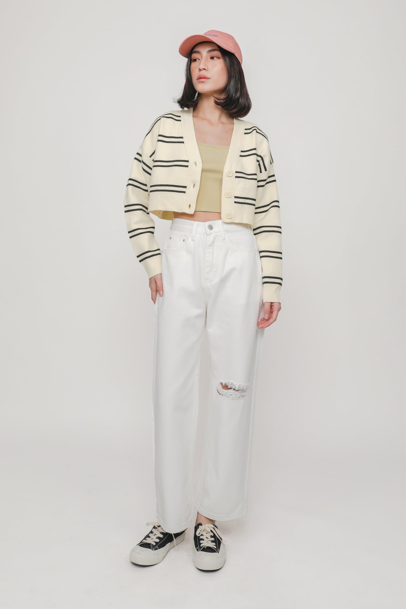 The cardigan is made from a soft acrylic cotton blend and comes with functional buttons.