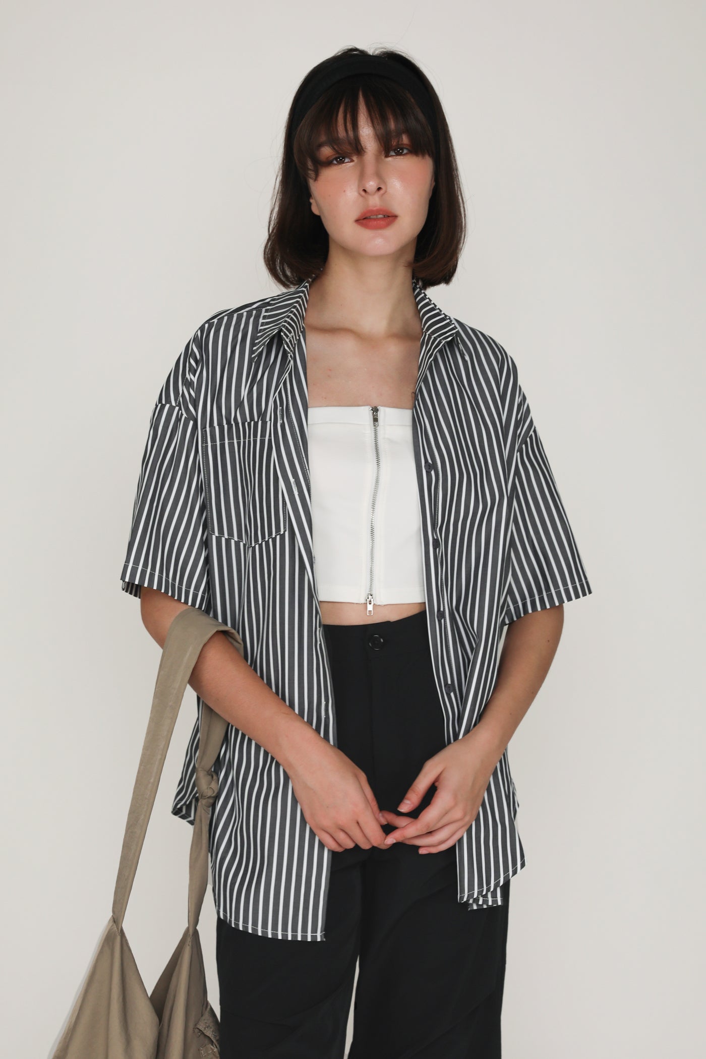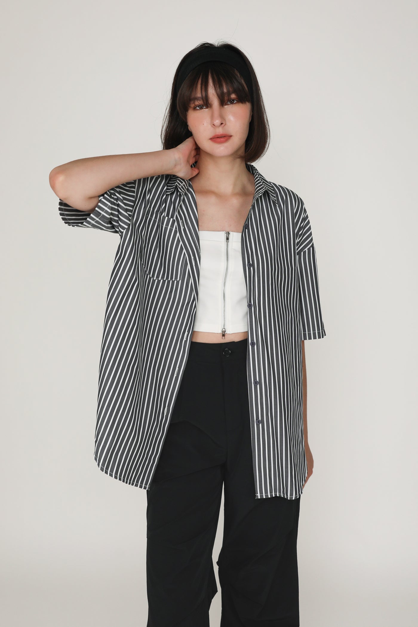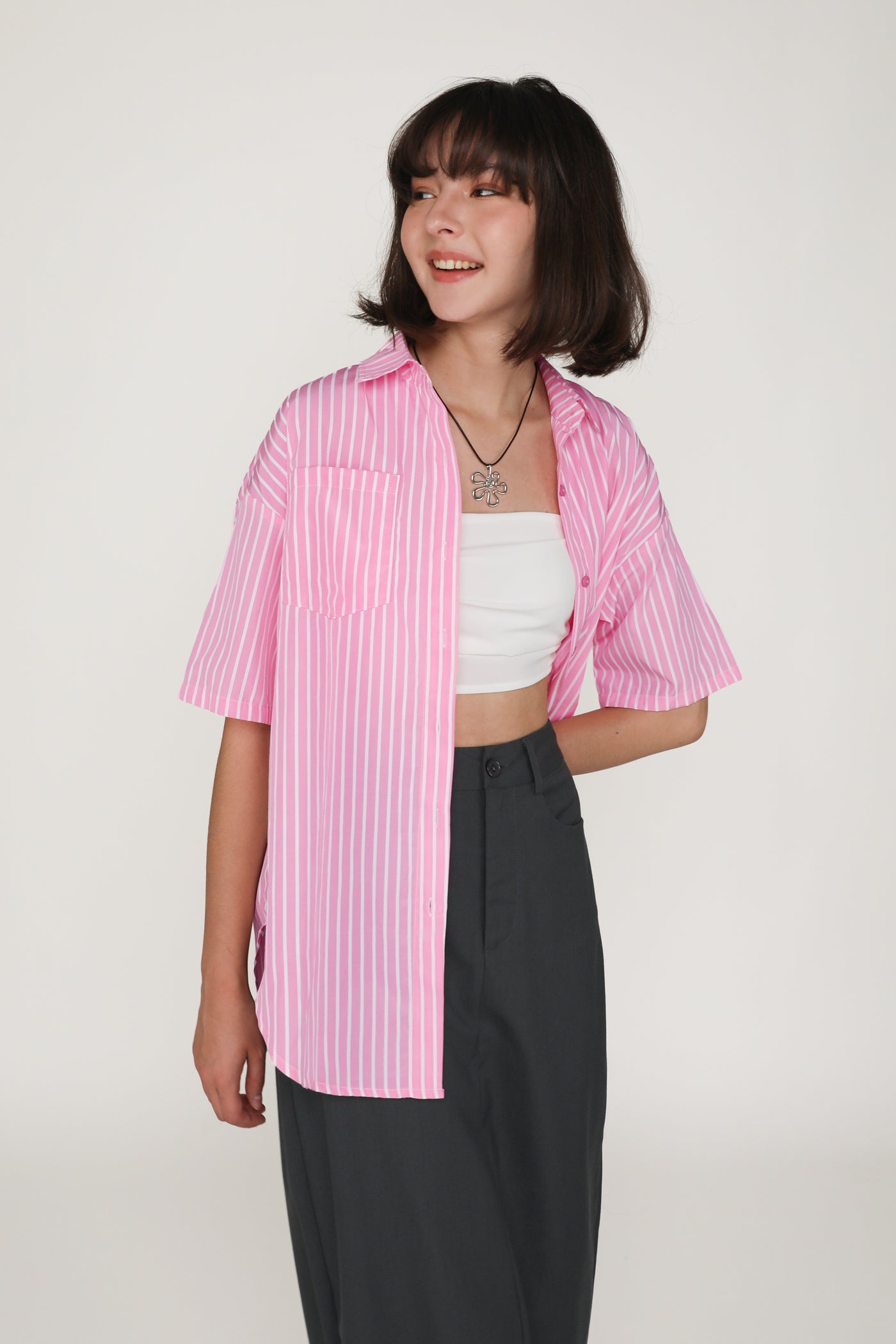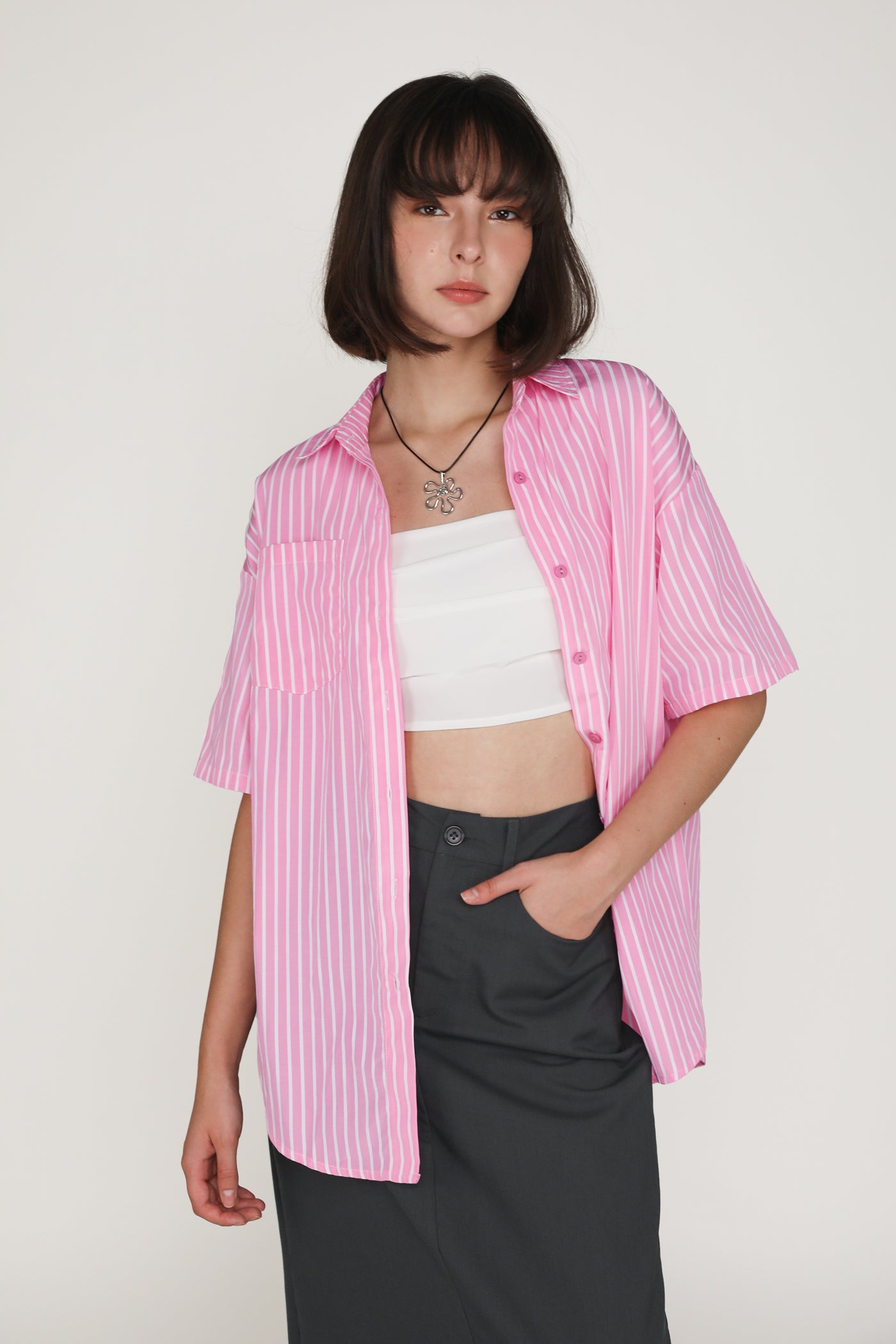 Only chill weekends with Felix. This short sleeve shirt features a cozy oversized fit and classic stripes for a versatile style. A laid back piece to throw on as a breezy summer outerwear. From relaxing beach days to impromptu trips to the mall, Felix adds a pop of bold personality to your simple casual outfits.
