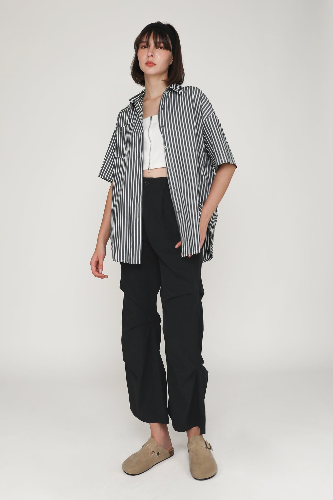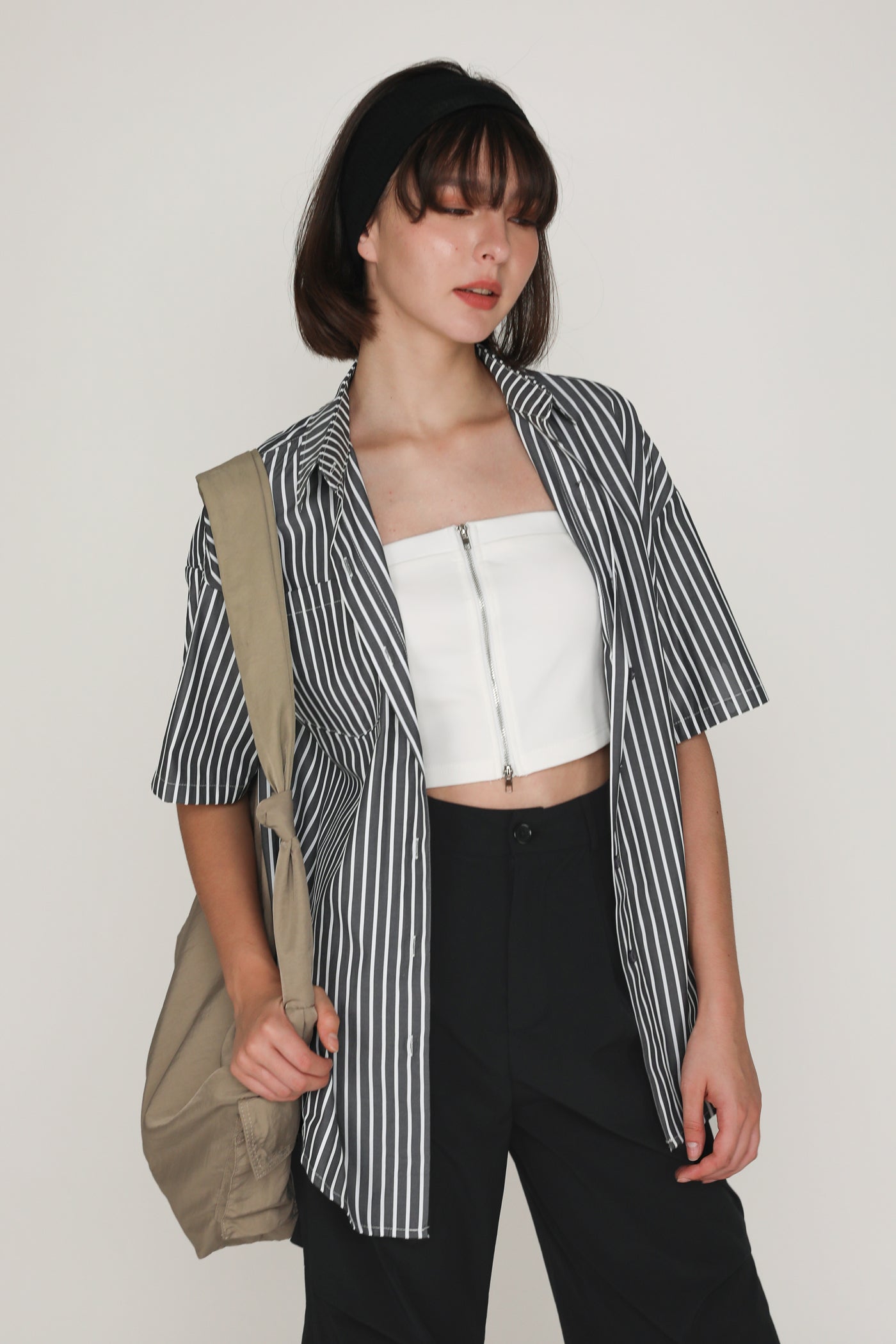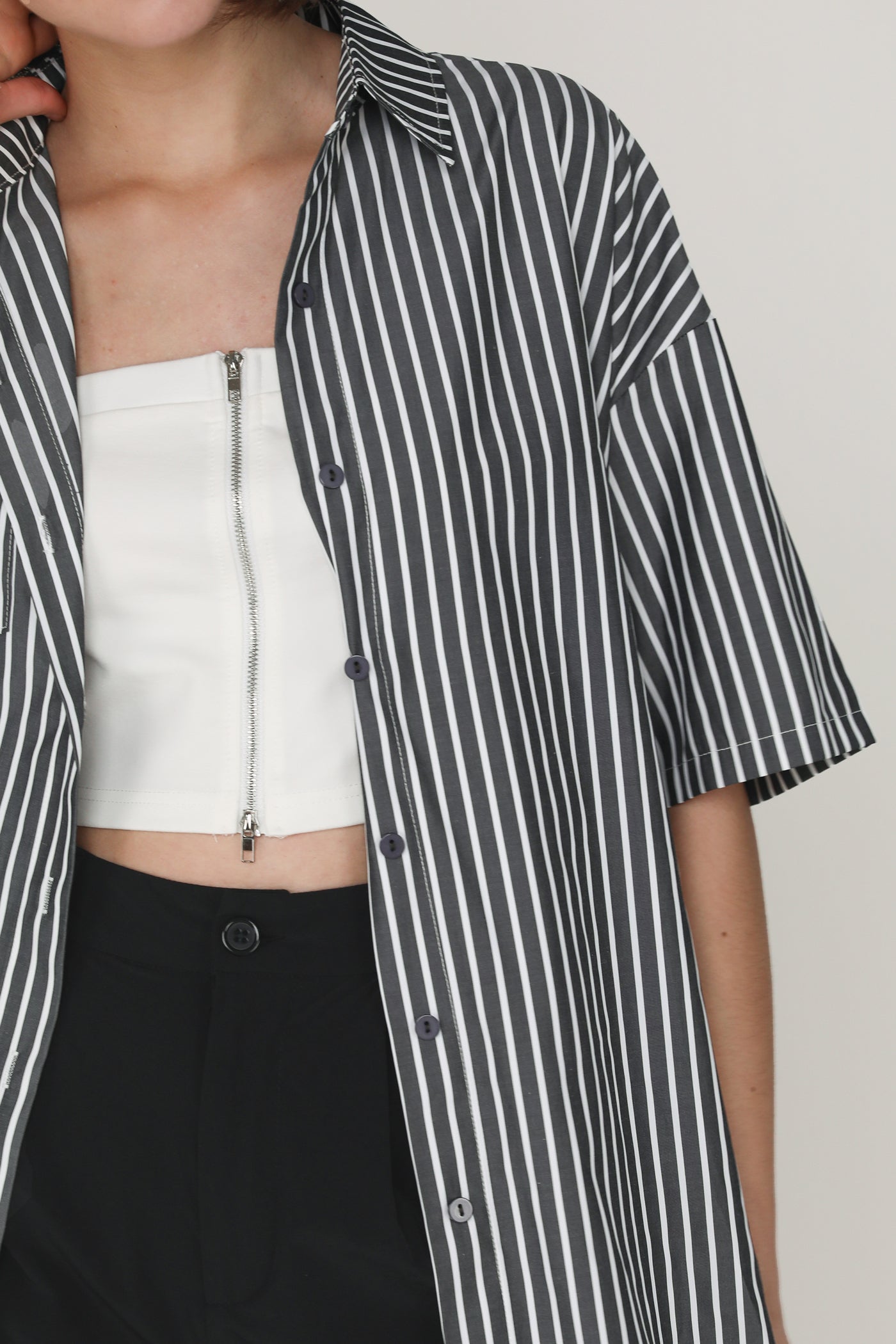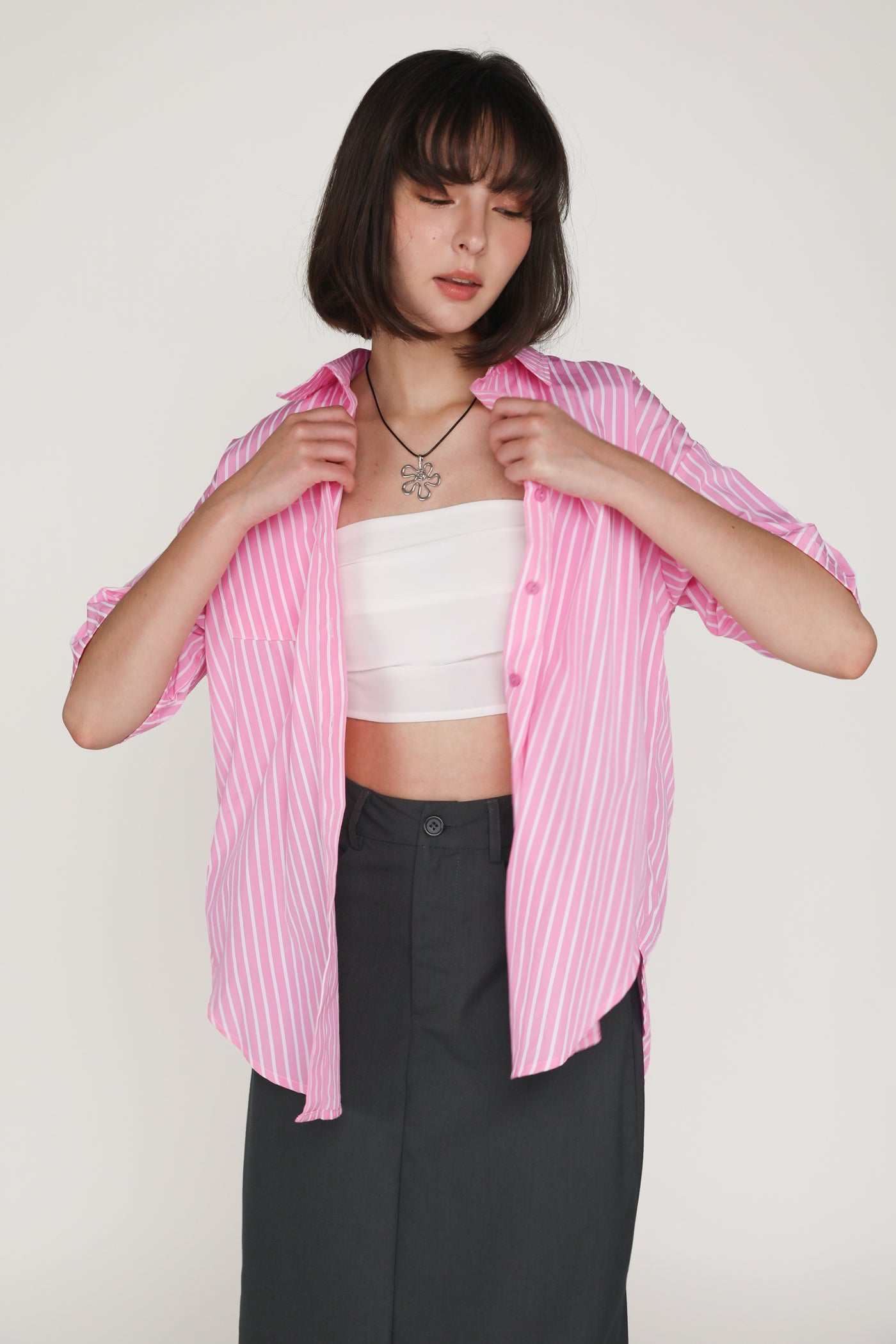 Only chill weekends with Felix. This short sleeve shirt features a cozy oversized fit and classic stripes for a versatile style. A laid back piece to throw on as a breezy summer outerwear. From relaxing beach days to impromptu trips to the mall, Felix adds a pop of bold personality to your simple casual outfits.