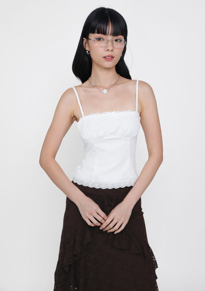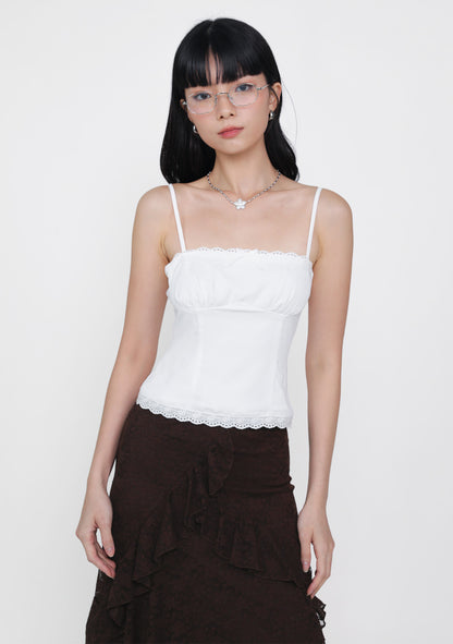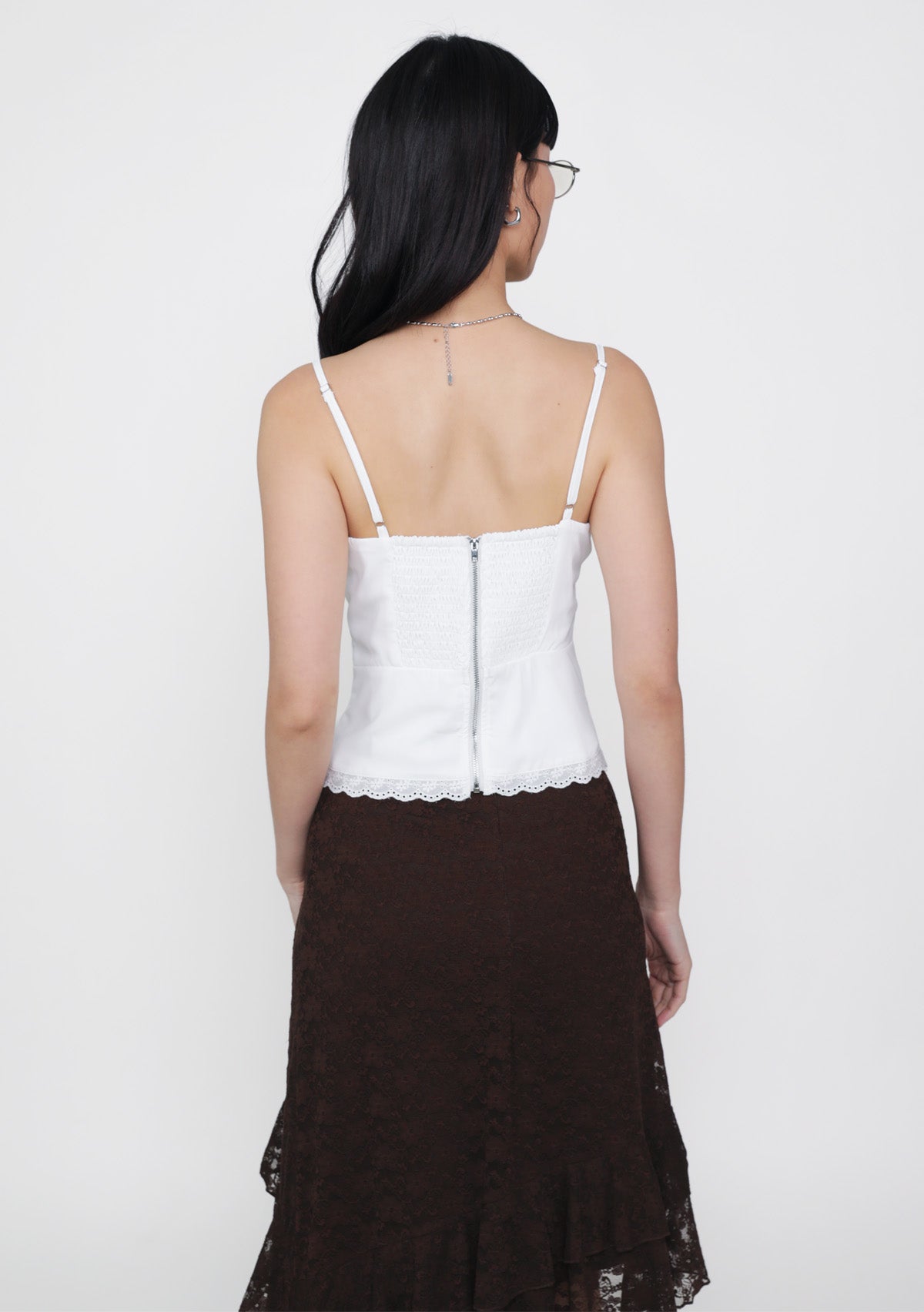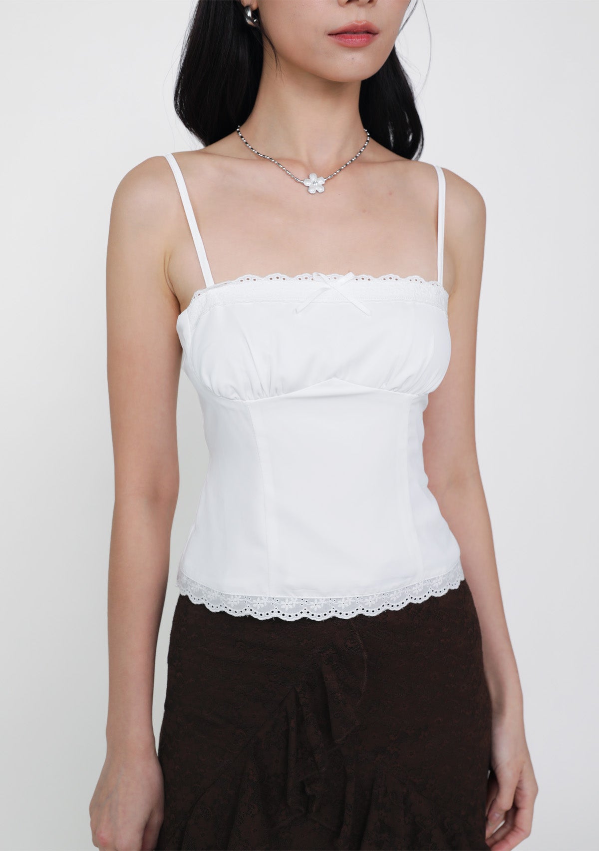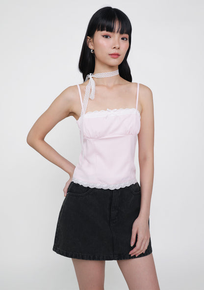 Himari Crochet Trim Top in Ice Pink and White features delicate crochet details, smocked back, and adjustable straps—feminine, playful, and flattering.