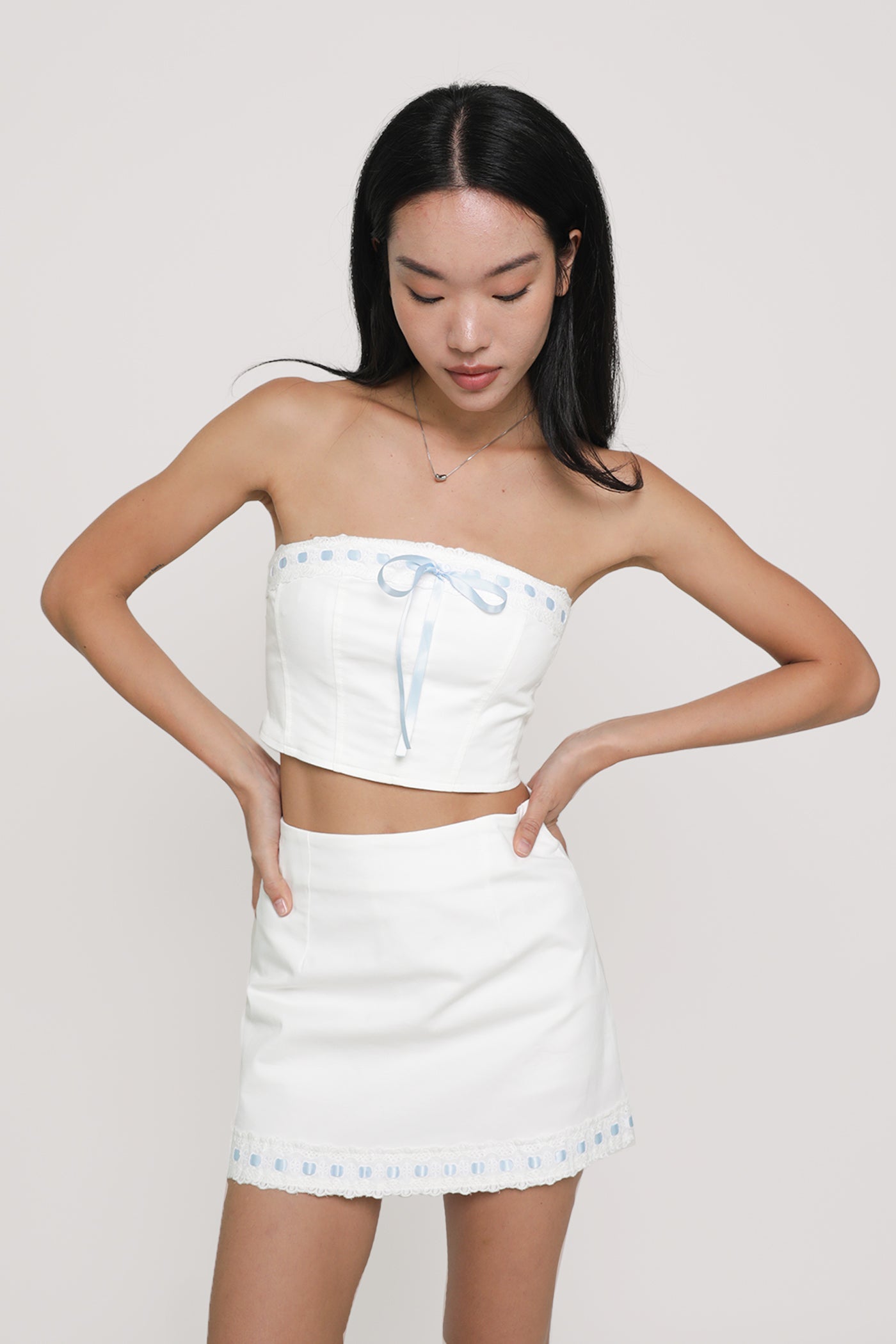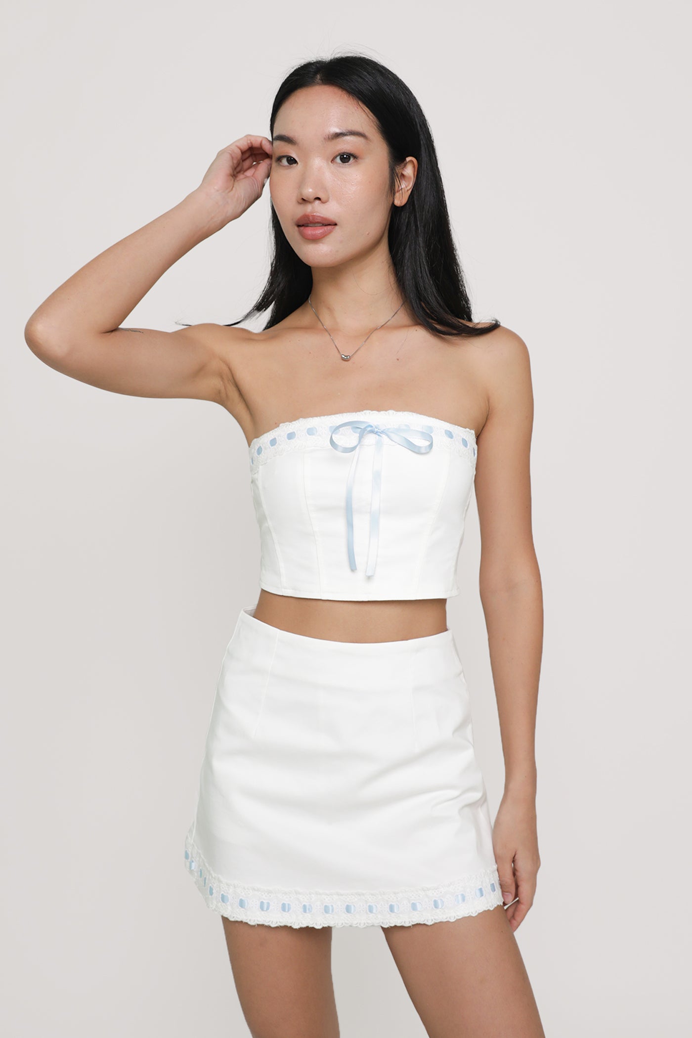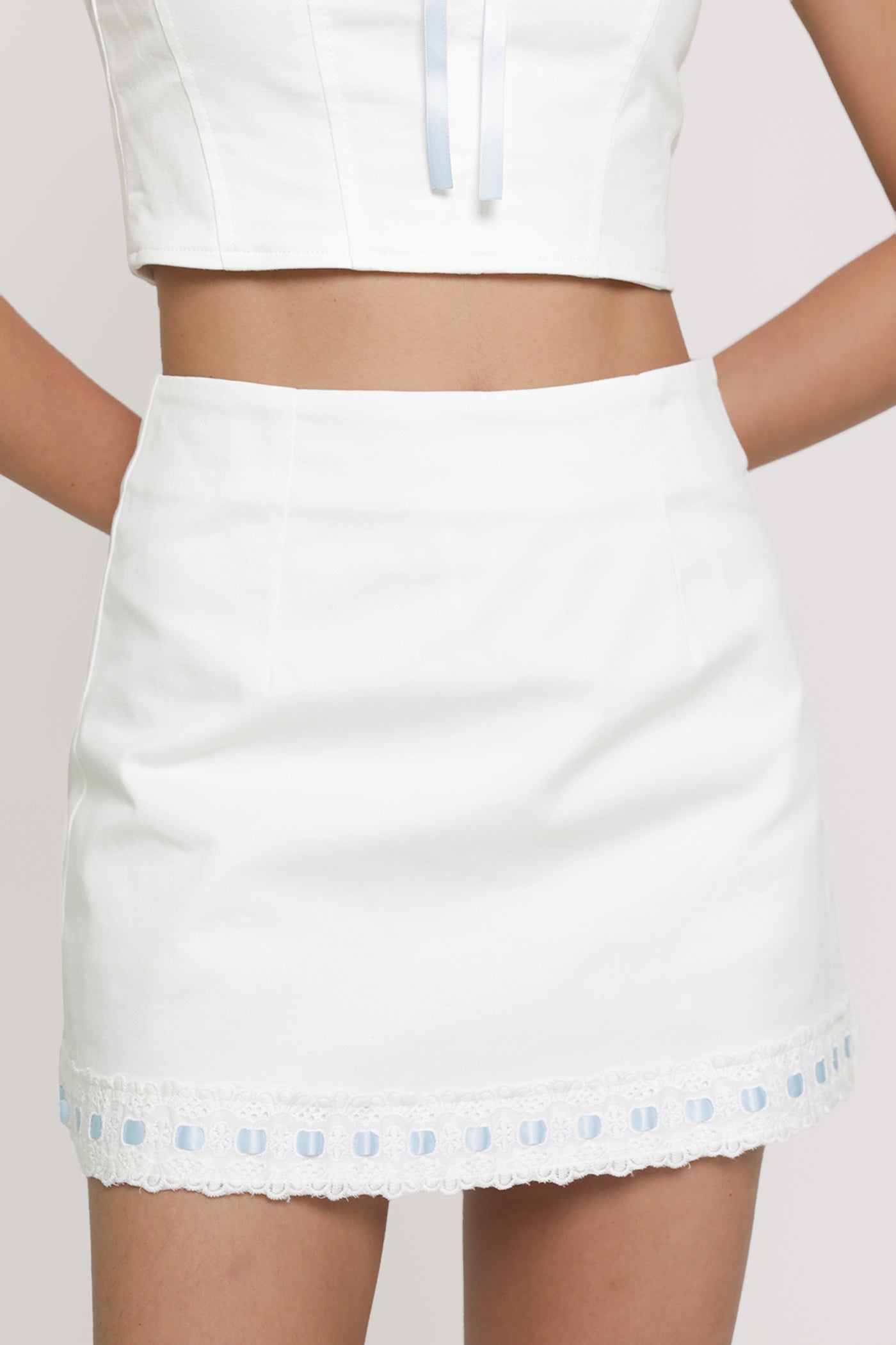 Spell out your perfect spring fits with Jaylene. Jaylene Ribbon Embroidery Skorts invite a feminine flair to your casual weekend looks. These skorts feature a versatile A-line silhouette and ribbon embroidered lace-trimmed hem. Complete this sweet, playful co-ord with Anne.