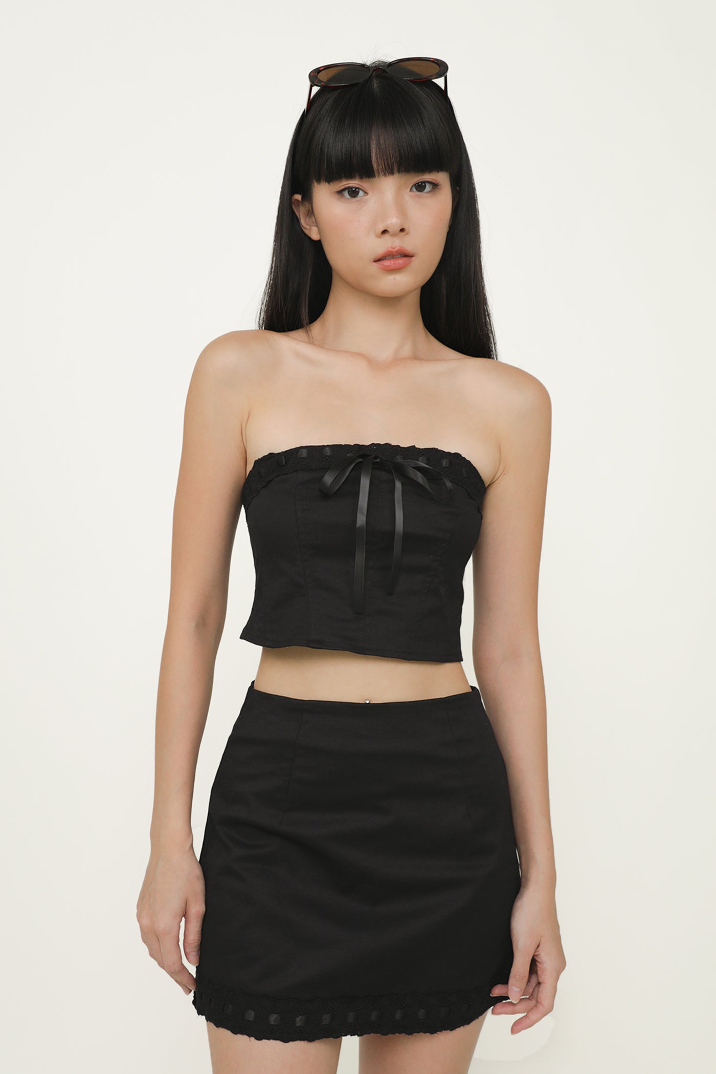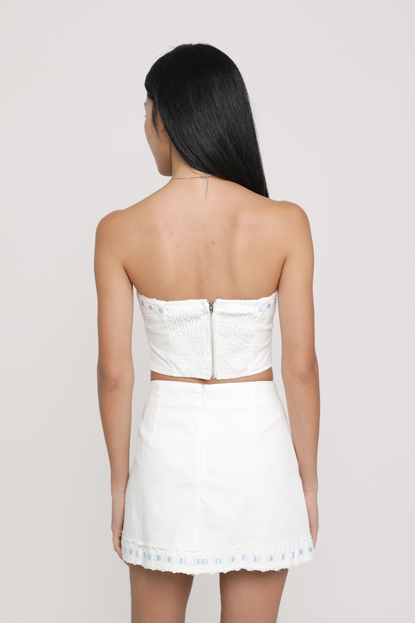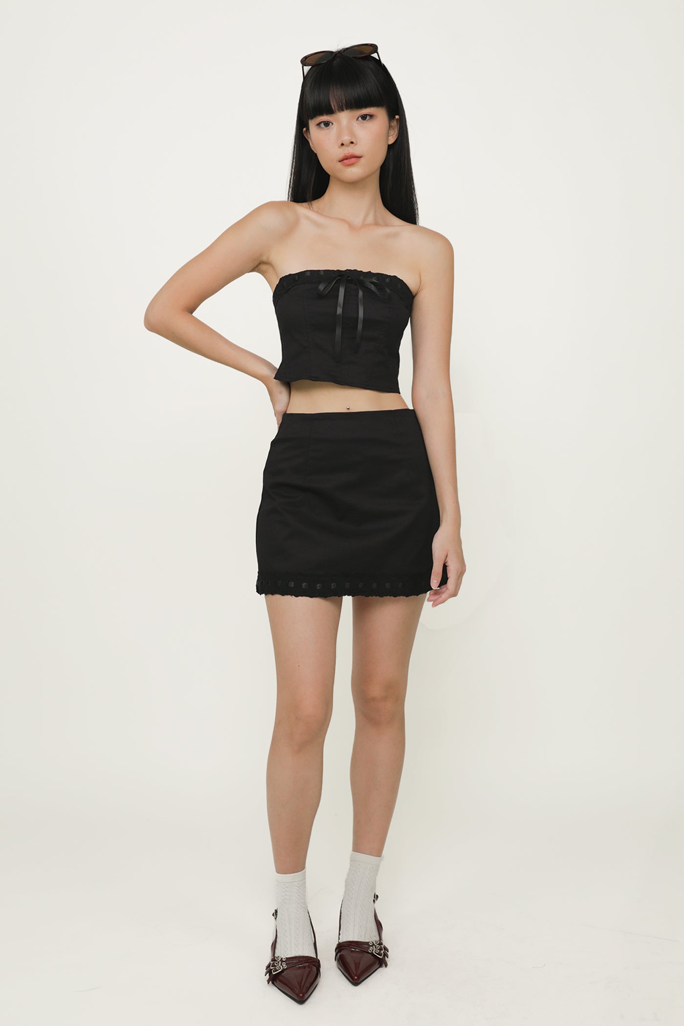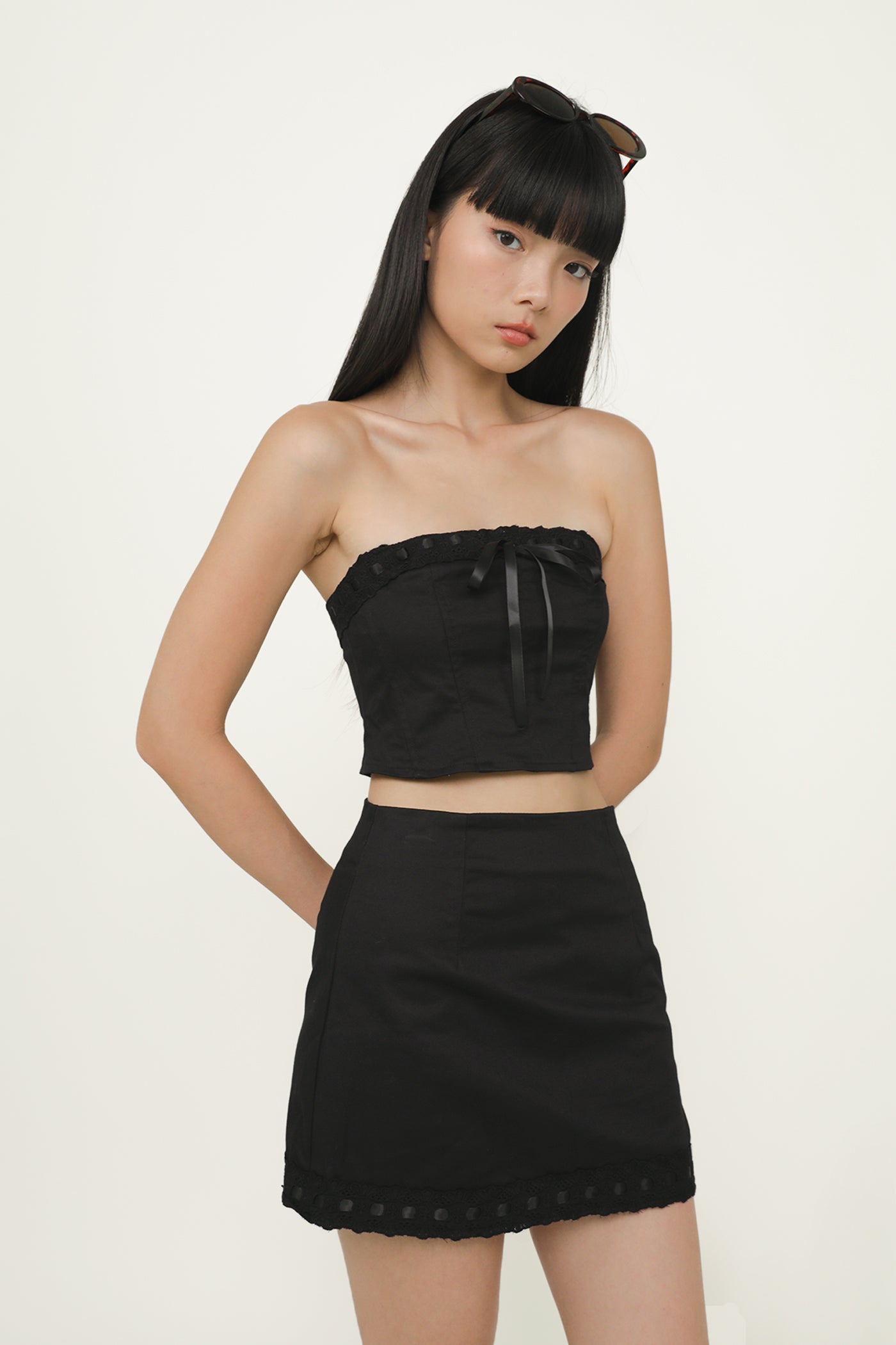 Spell out your perfect spring fits with Jaylene. Jaylene Ribbon Embroidery Skorts invite a feminine flair to your casual weekend looks. These skorts feature a versatile A-line silhouette and ribbon embroidered lace-trimmed hem. Complete this sweet, playful co-ord with Anne.