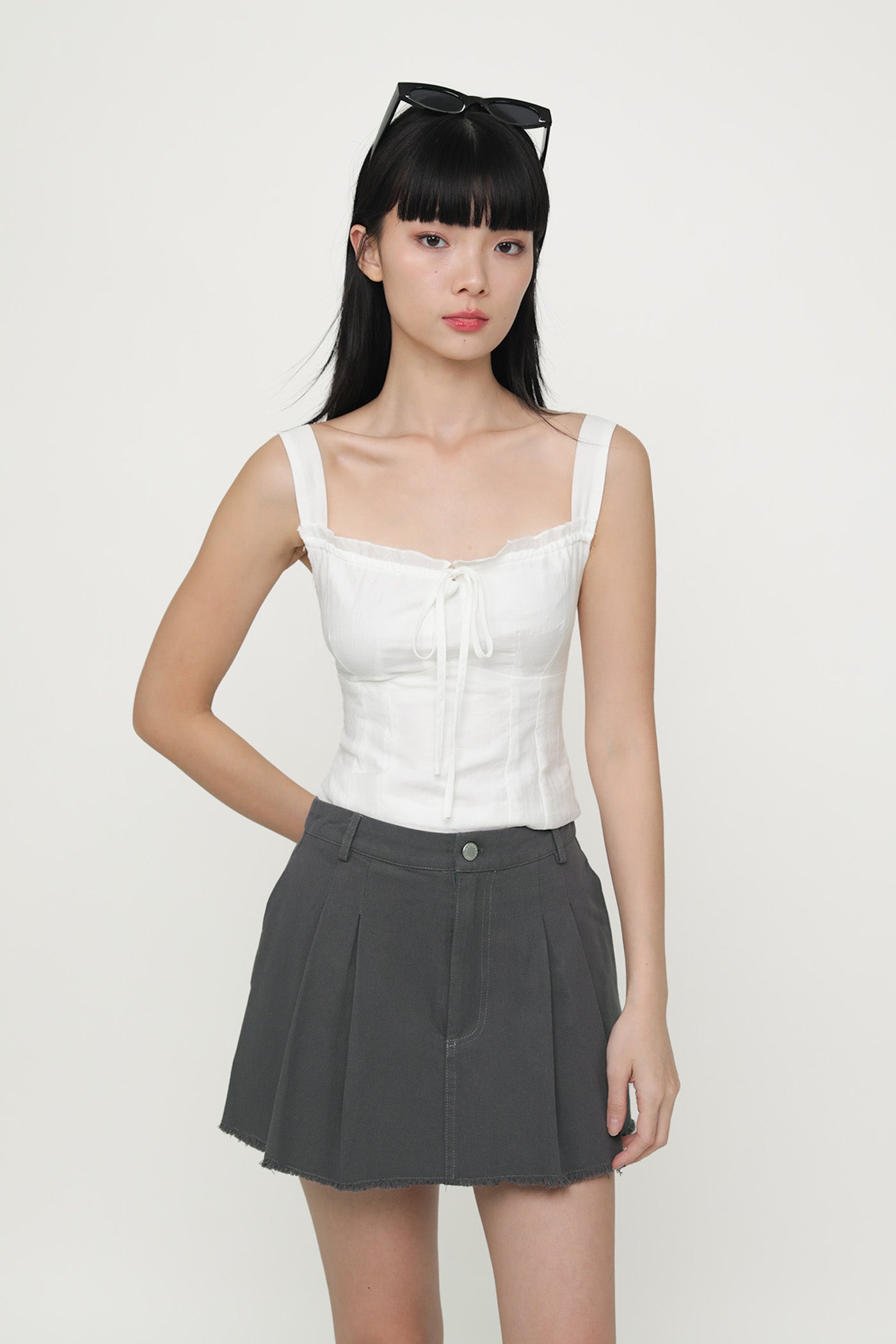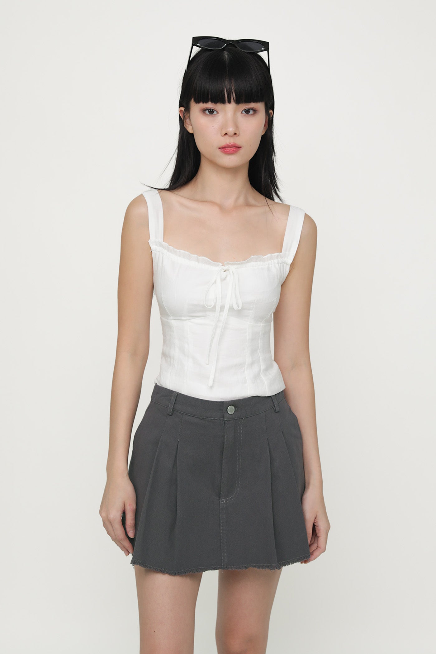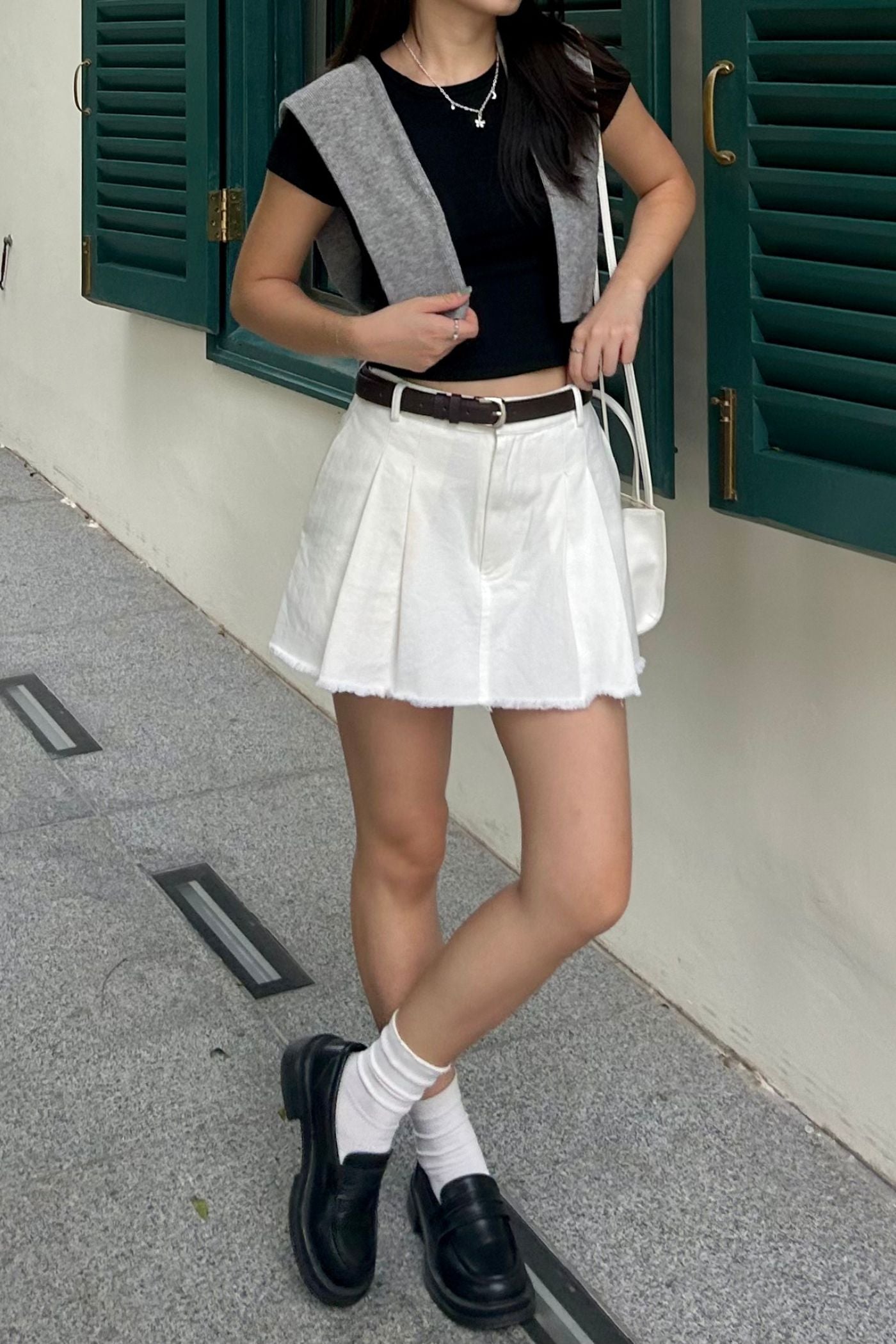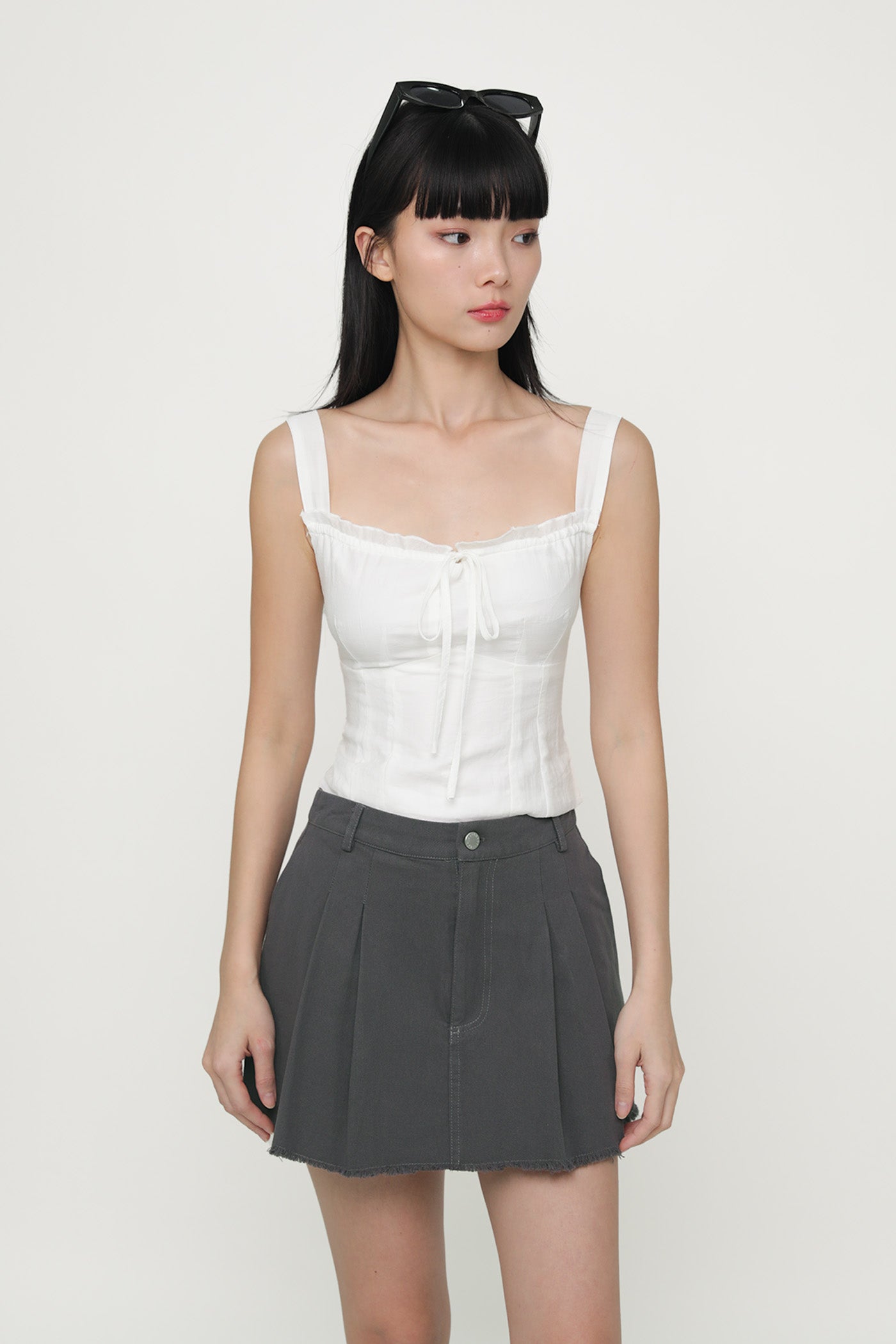 Jerry Pleated Frayed Hem Skorts