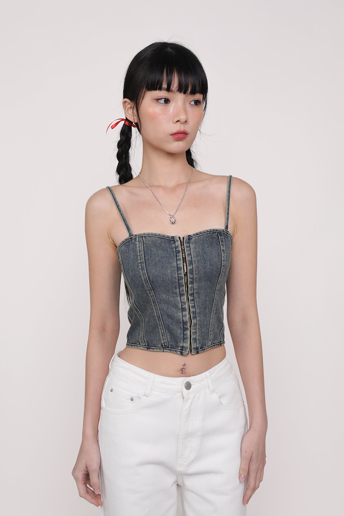 Thank you, we have now received and recorded your request to be notified should Kacey Hook Front Corset Denim Top be restocked.
