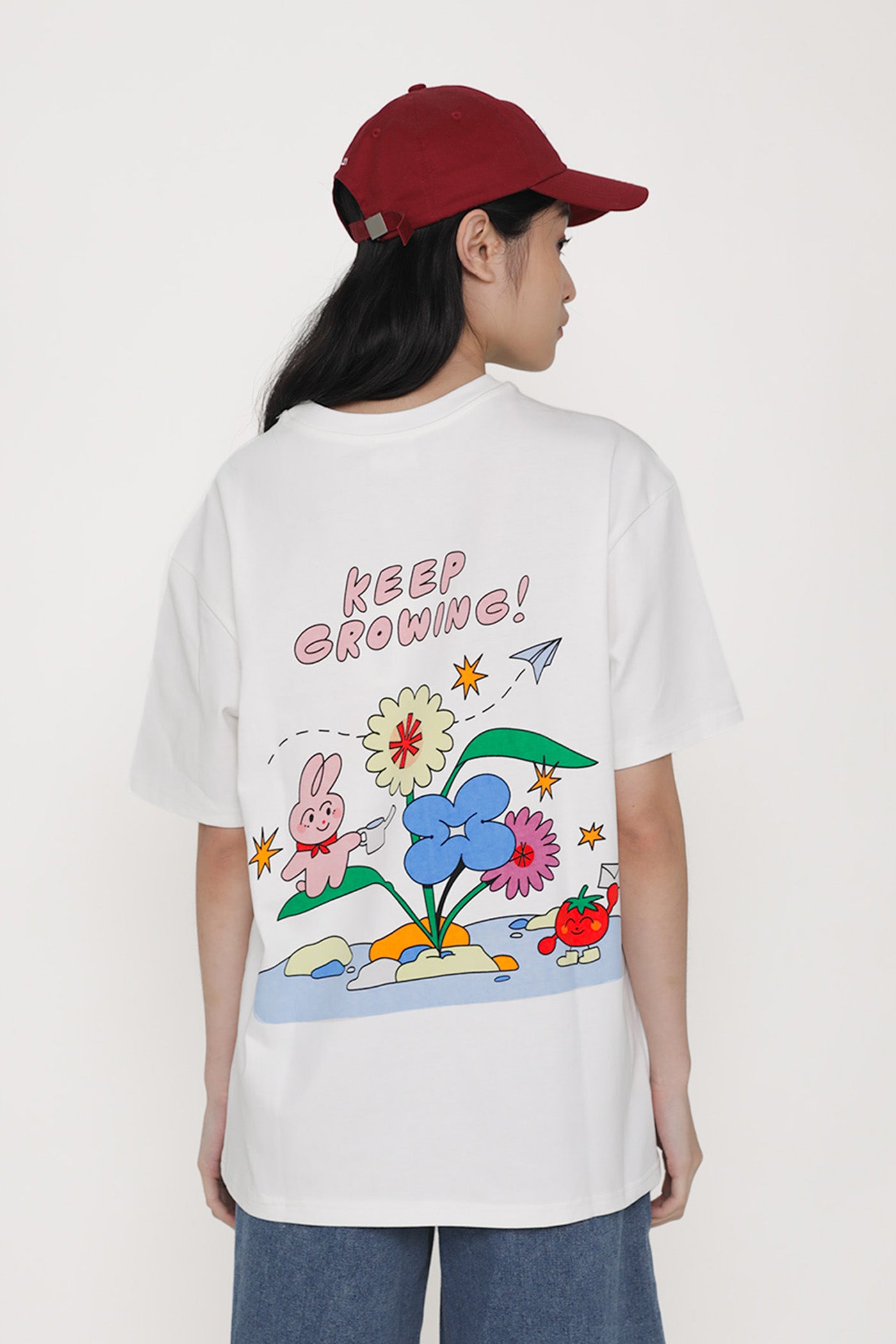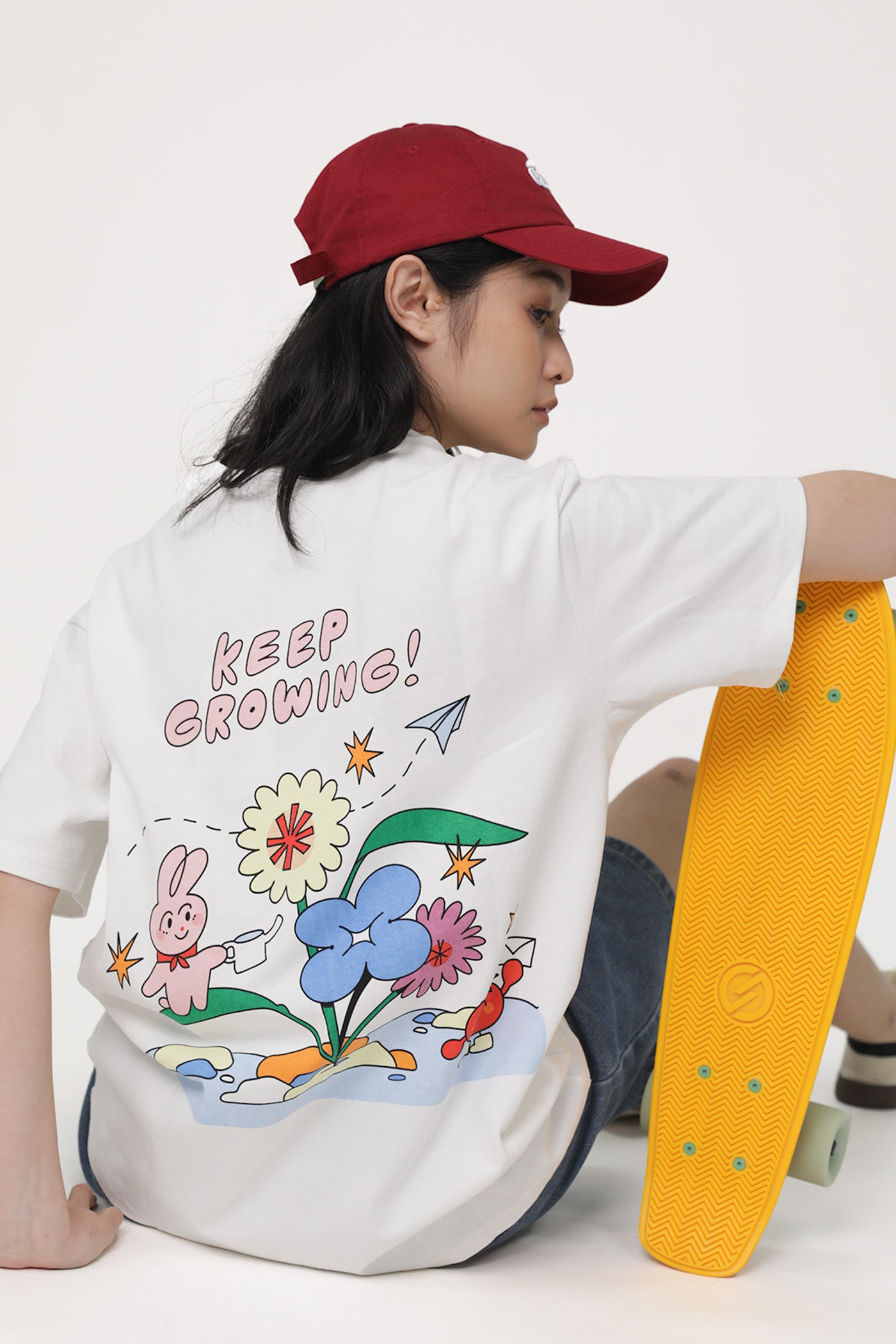 The Keep Growing Oversized Tee is your wearable reminder that life’s a journey, not a sprint. Featuring sweet & playful illustrations on the front & back, this casual tee brings chill vibes and laidback energy to your everyday wardrobe. Toss it on and let the cute graphics do the talking.