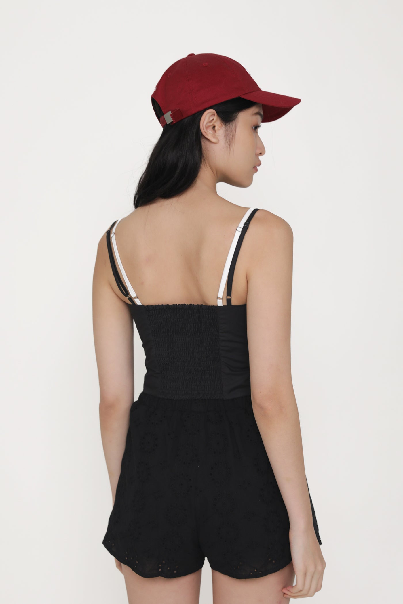 This top is made of polyester cotton for a comfortable fit. It is complete with inner lining, functional front buttons, adjustable straps and smocked details at the back.