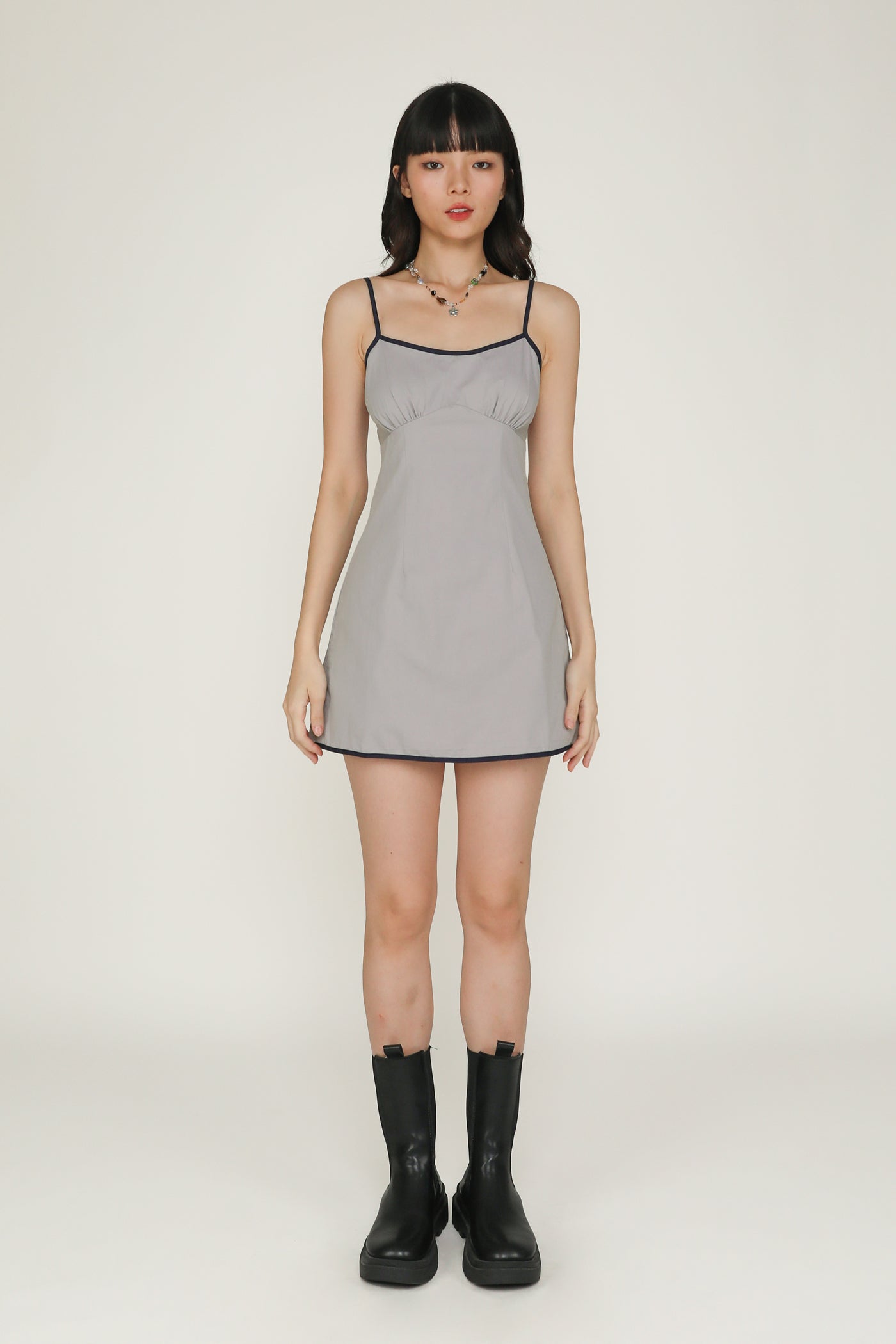 Let Kiora season your wardrobe with a dash of sugar and spice. Kiora Contrast Romper is a sweet and classic one-piece for a casual weekend outfit. It features a feminine mini dress silhouette with contrast piping details for a playful touch. Bursting with youthful charm, Kiora is an effortless outfit for the summertime.
