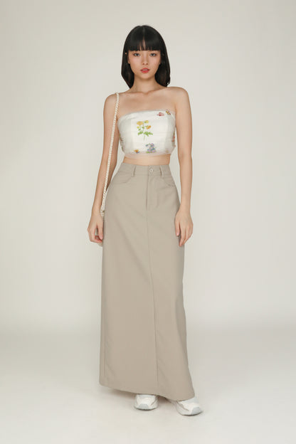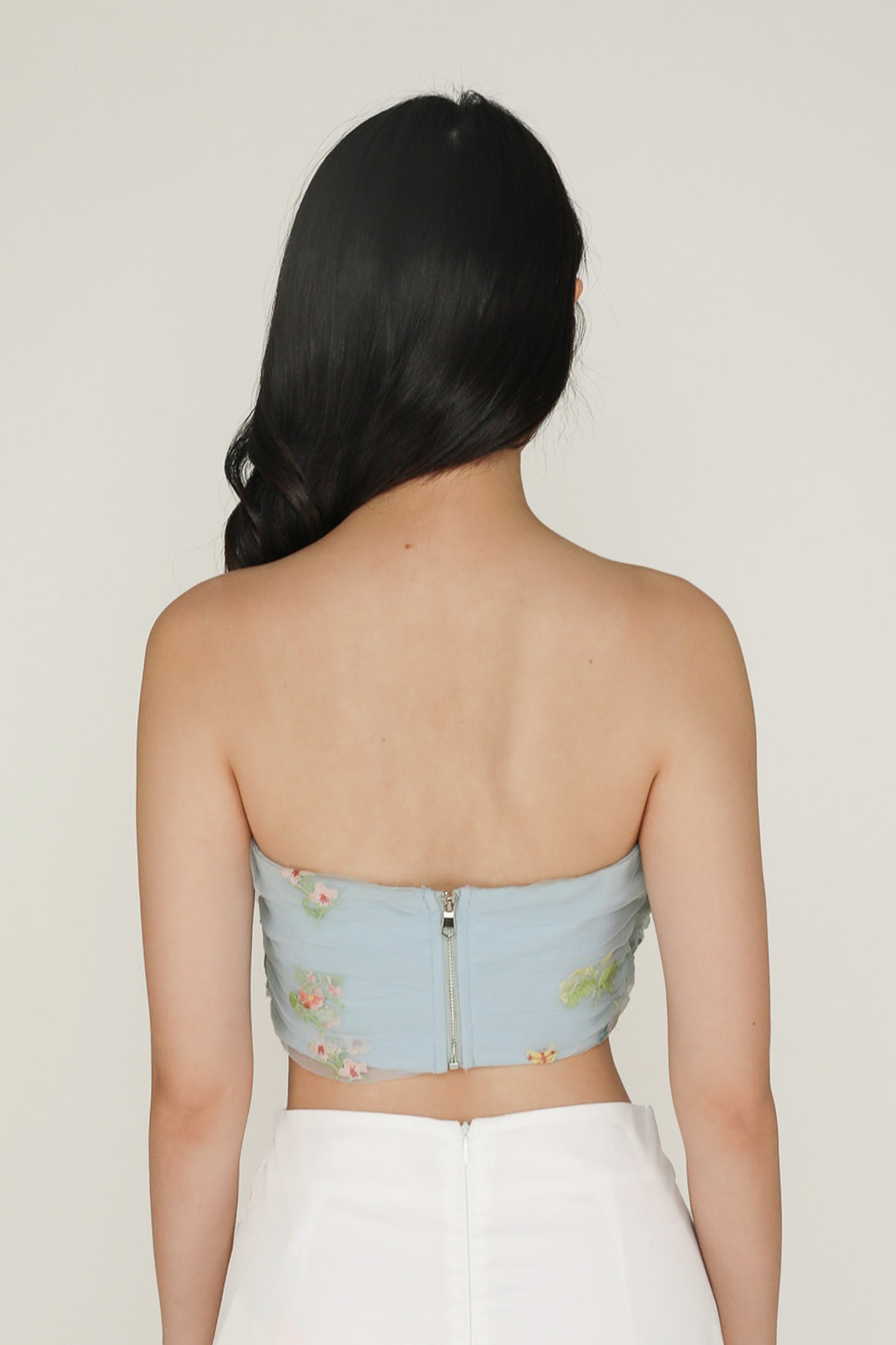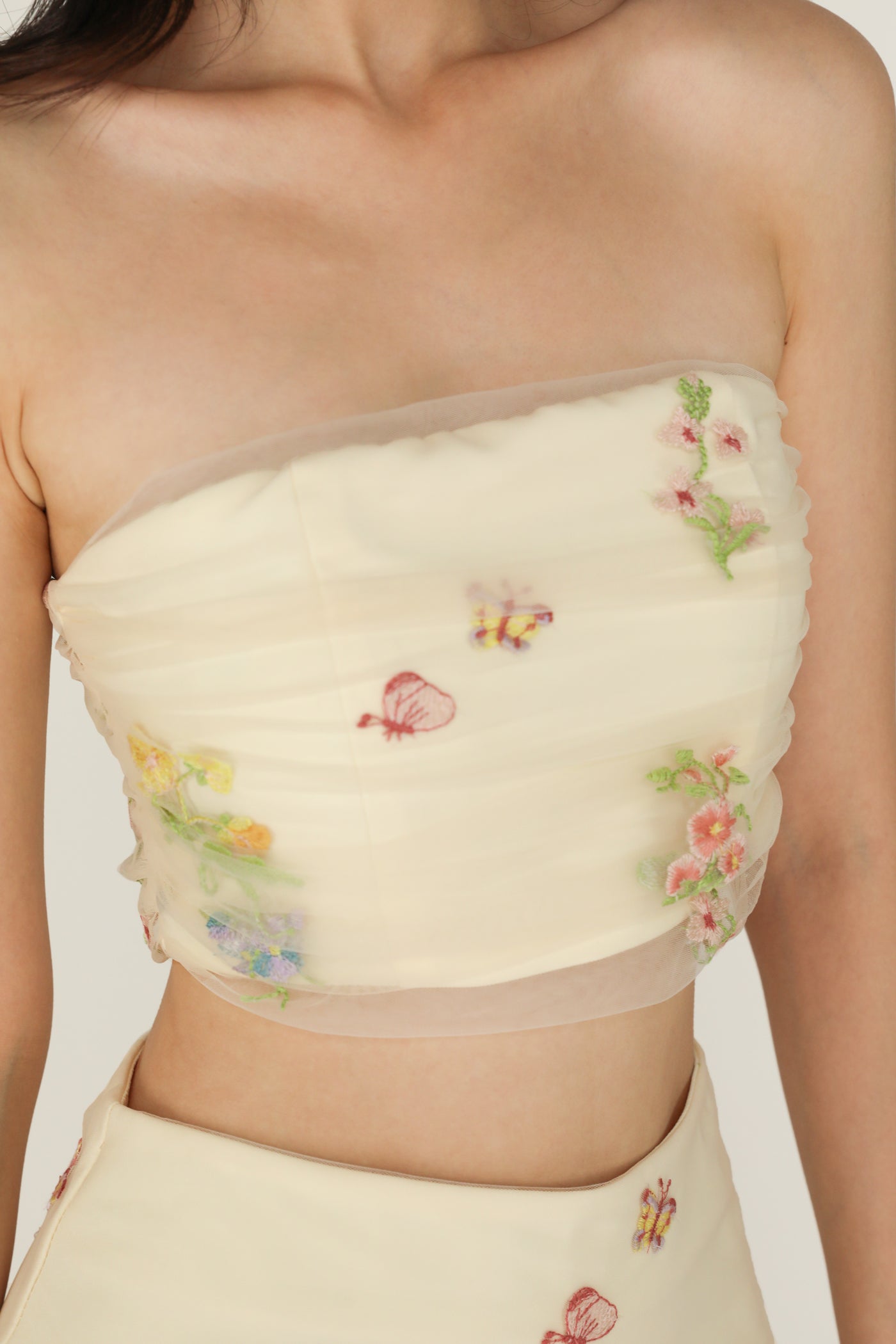 On cloud nine with Lareen. Padded for comfort, Lareen is a charming tube top to elevate your weekend outfits. This top features sweet floral embroidery details and a mesh layer for a textured flair. Whether you're matching it with our Dewi Mesh Skort or not, this top invites a dreamy mood to any outfit. Step up your summer looks with Lareen.