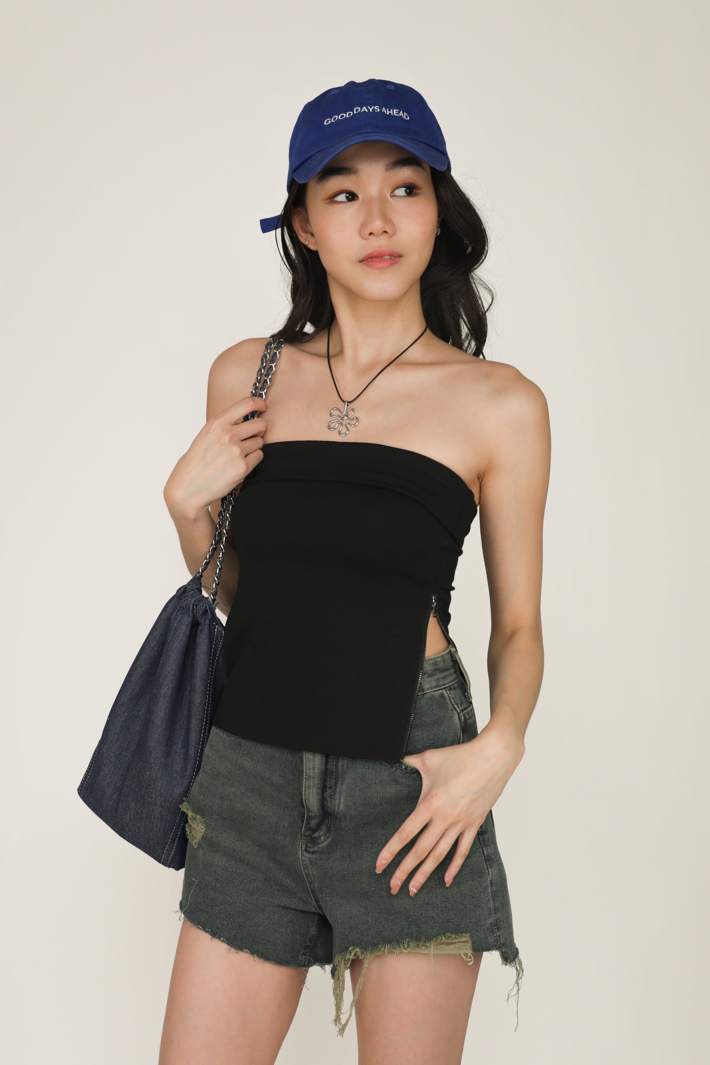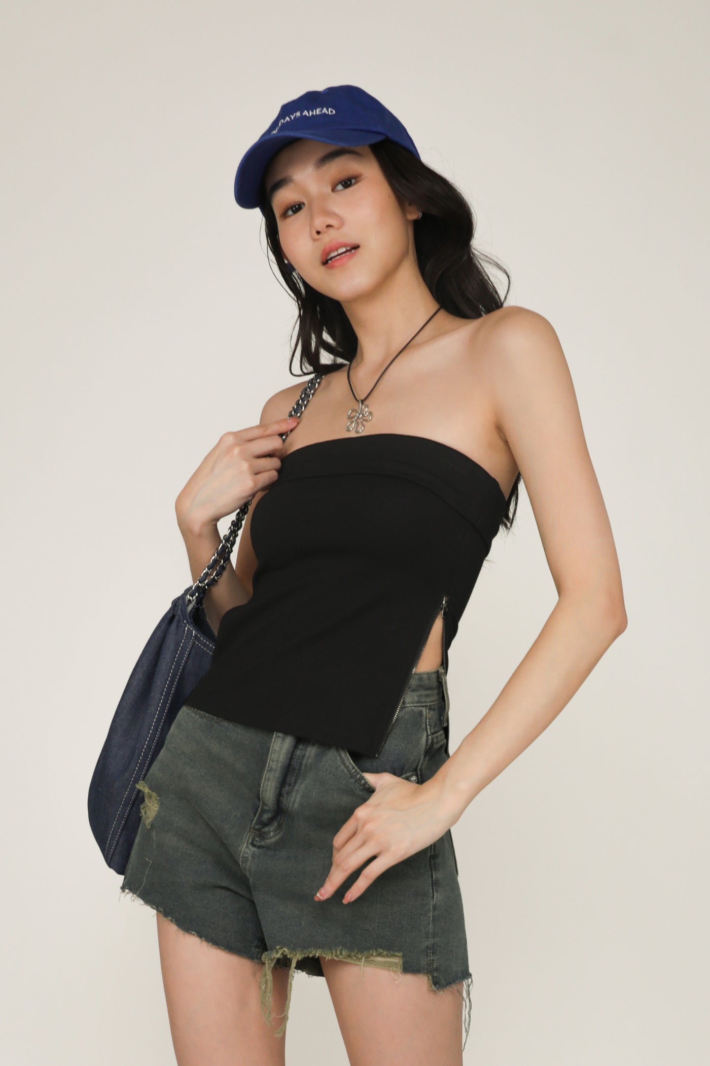 Upgrade your spring wardrobe with Lexis. Lexis Tube Zipper Top is a charming top with a playful edge. It features a chic folded neckline and adjustable zip details at the sides. Minimal, elegant, and timeless, Lexis is the top drawer-worthy piece to style with your favourite bottoms.