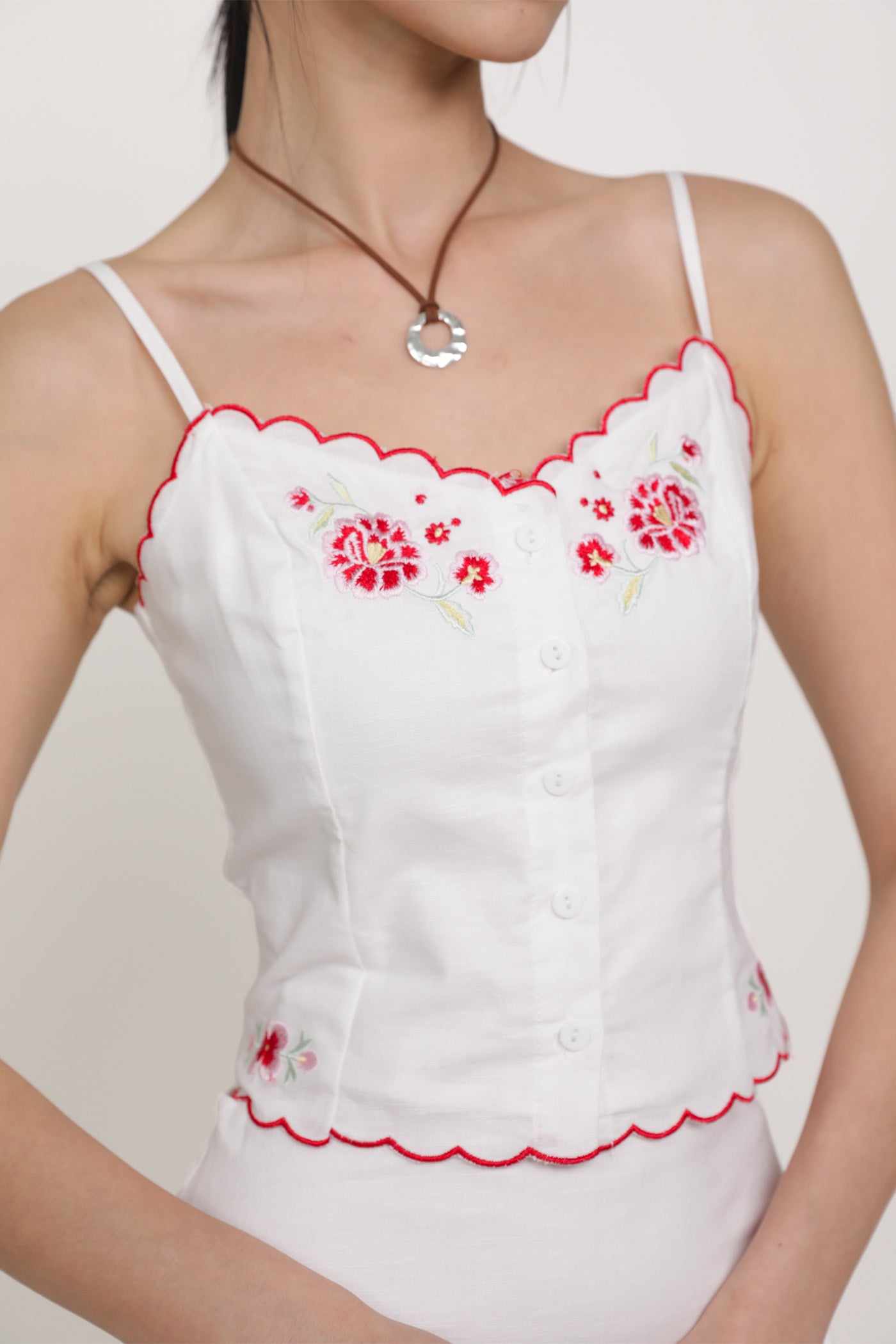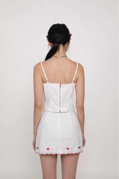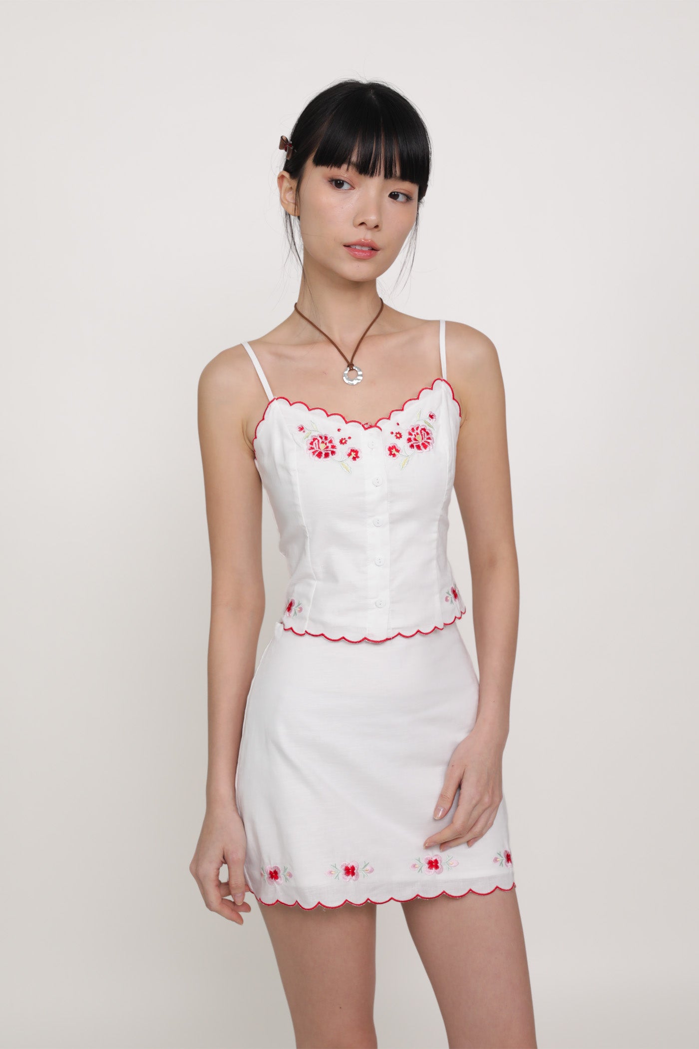 Ease into the springtime season with our Lilian Embroidery Scallop Hem Top. From its contrast scallop hem to the dainty floral embroidery, every inch is designed to enchant. Style it solo or pair it with the Lune Embroidery Scallop Hem Skirt for a feminine, refined ensemble.