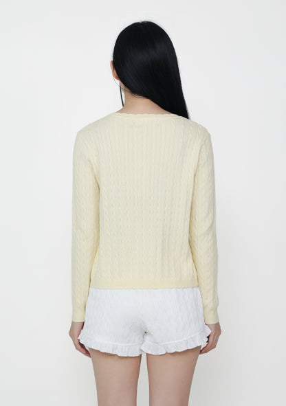 Lilo is where coziness meets charm. This textured knit cardigan features scalloped trims and a classic cable pattern that adds warmth with a touch of whimsy. Worn as a top or layered on cooler days, Lilo brings comfort to any outfit with ease.