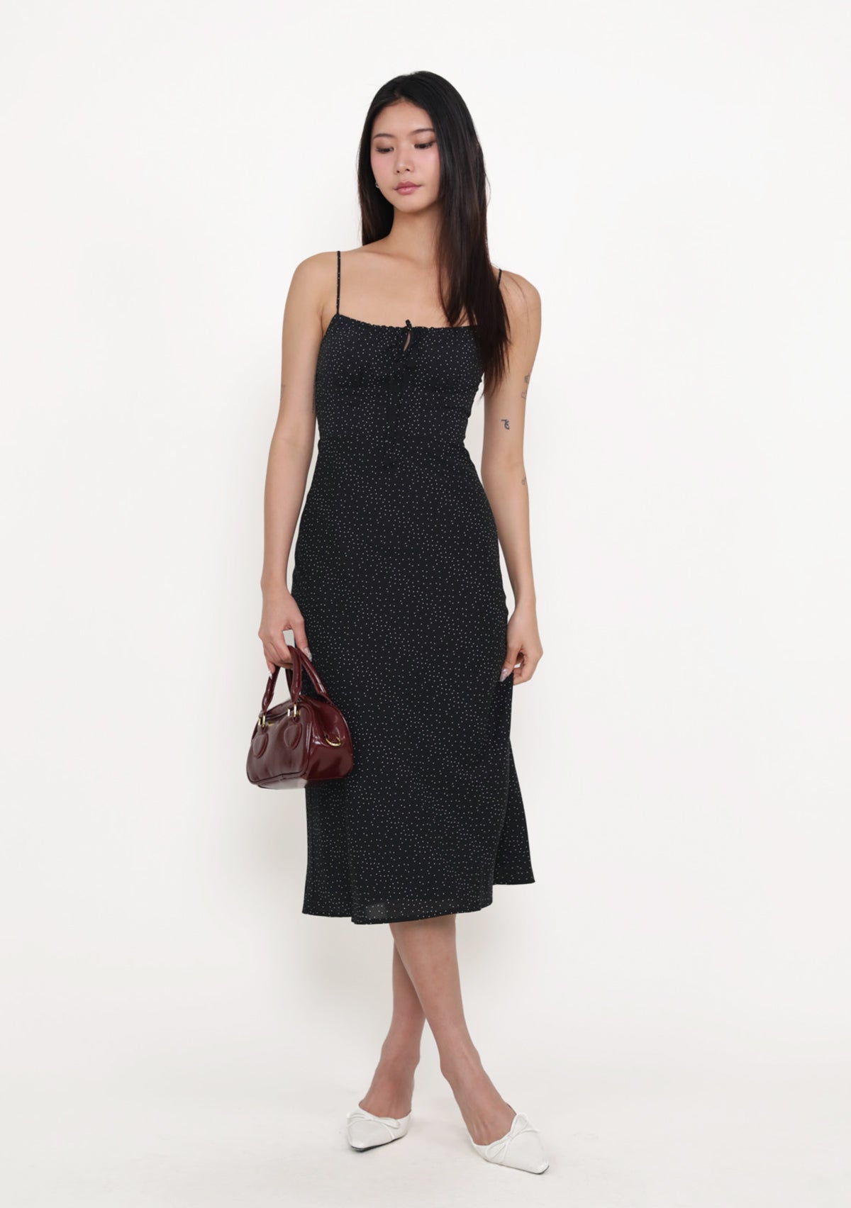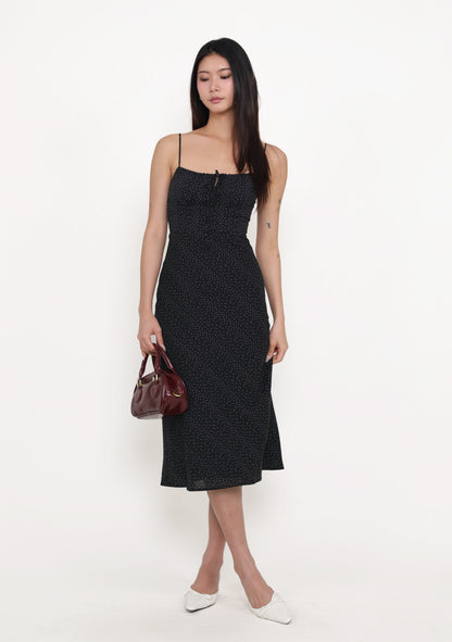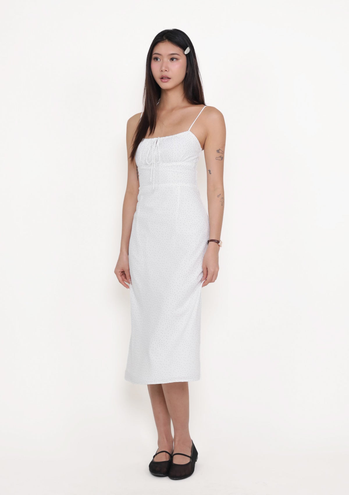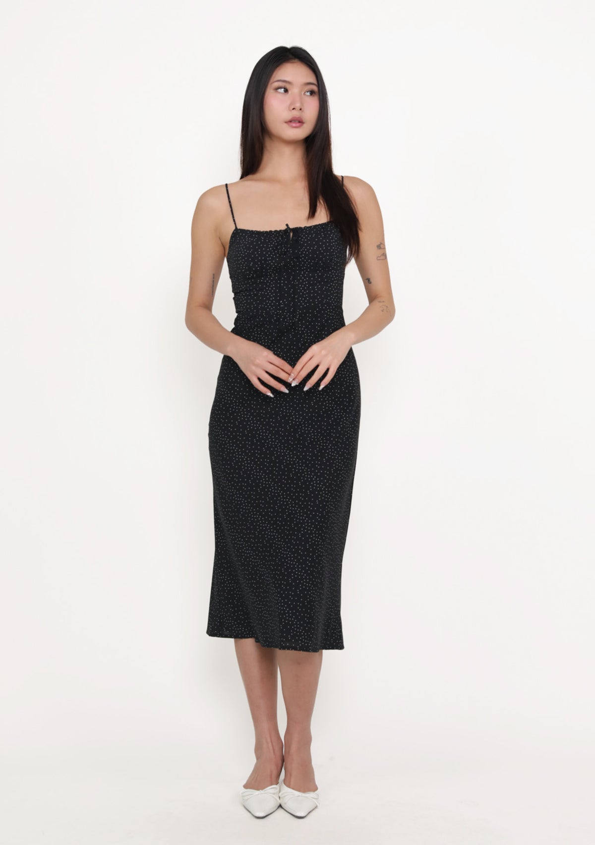 The Maryanne Ruched Front Dress (Polka Dot) is elegance with a playful twist. With ruched detailing and a self-tie front, it shapes the silhouette beautifully, while the smocked back and adjustable straps ensure comfort and a personalized fit. Fully lined and finished with a concealed back zip, it’s perfect for casual days or dressy occasions.