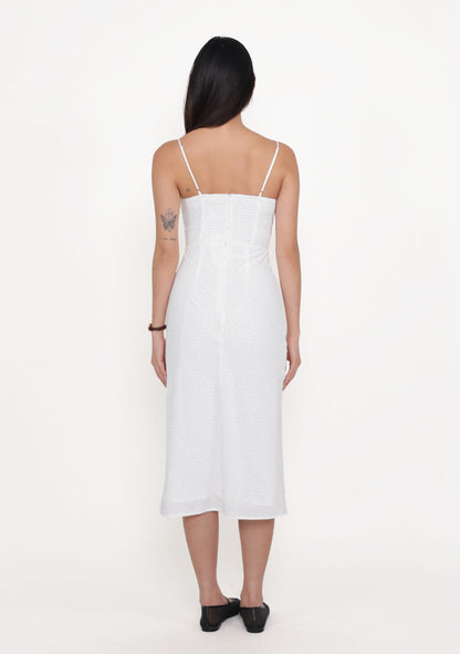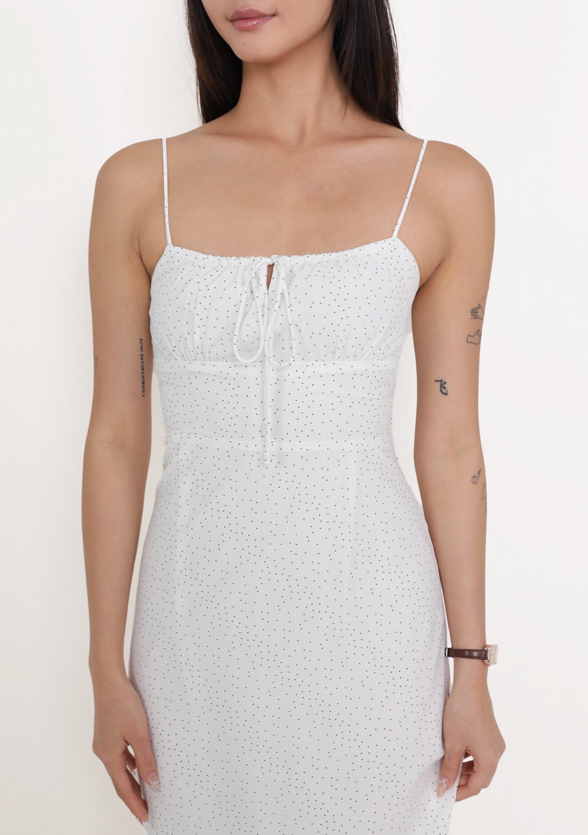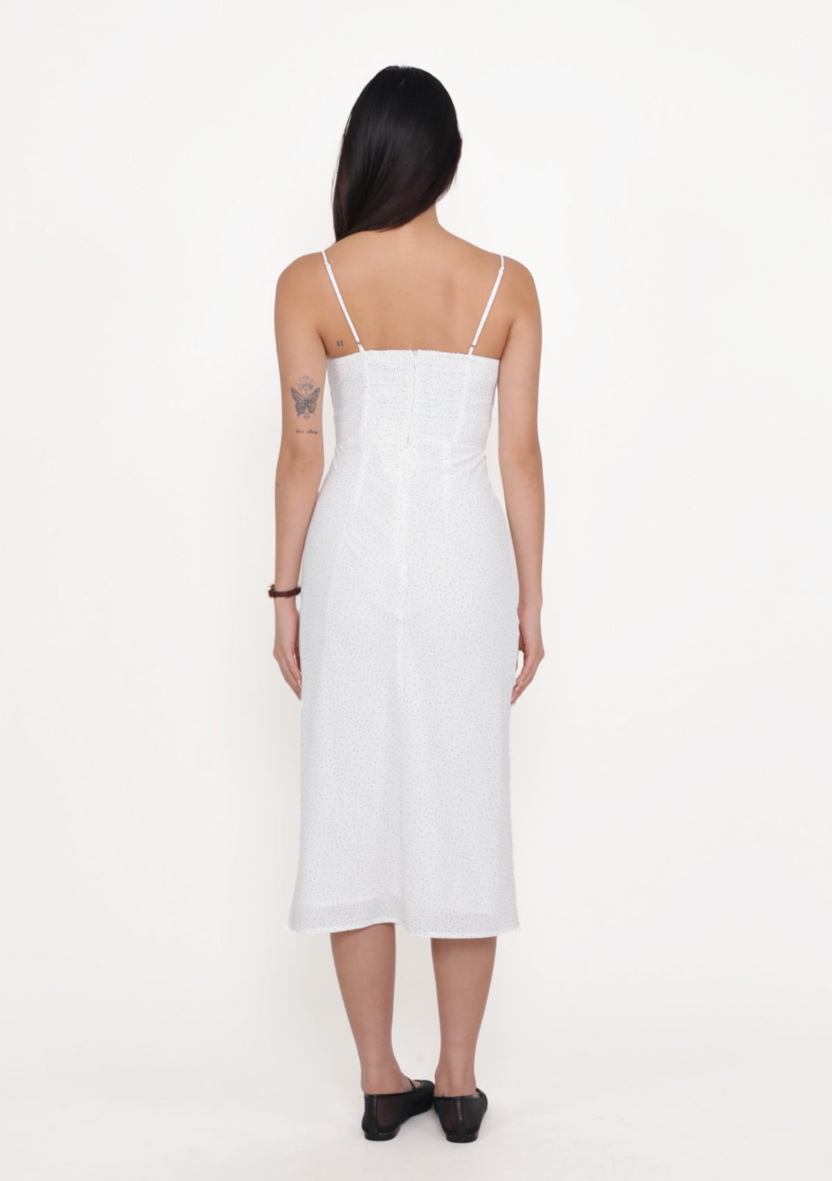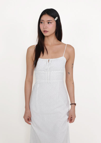 The Maryanne Ruched Front Dress (Polka Dot) is elegance with a playful twist. With ruched detailing and a self-tie front, it shapes the silhouette beautifully, while the smocked back and adjustable straps ensure comfort and a personalized fit. Fully lined and finished with a concealed back zip, it’s perfect for casual days or dressy occasions.