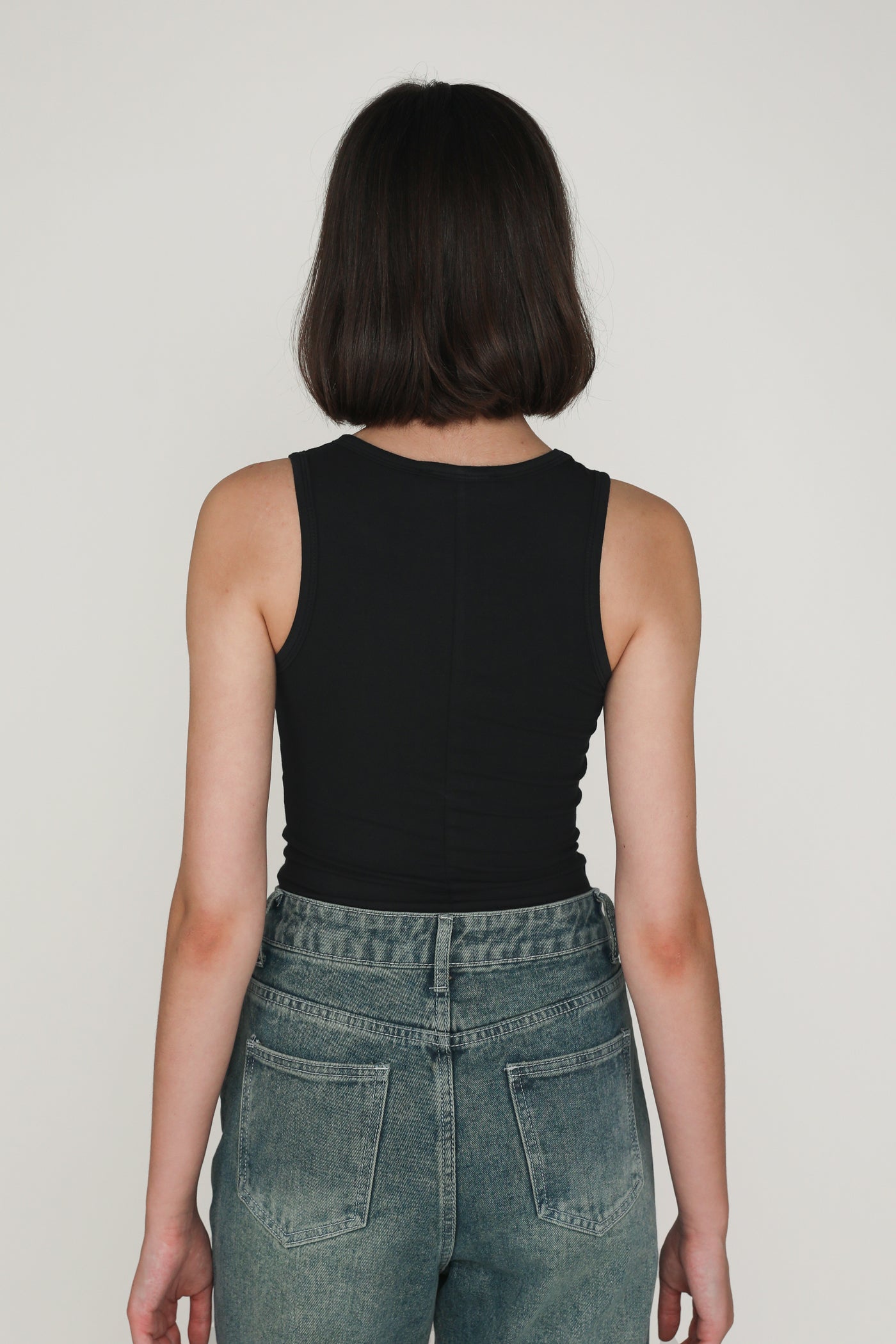 Spend your days with easy basics like Miles. Miles Basic Tank Top is a classic piece with an irresistible sleek fit. From linen maxi skirts to edgy cargo pants, this top will complement your individual style with ease. For lovers of minimalistic neutrals, Miles is the style essential that is missing in your wardrobe.